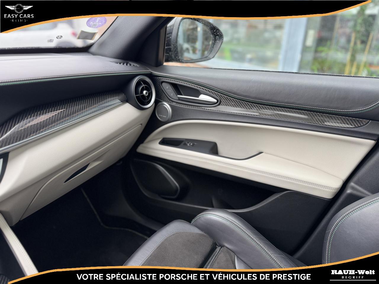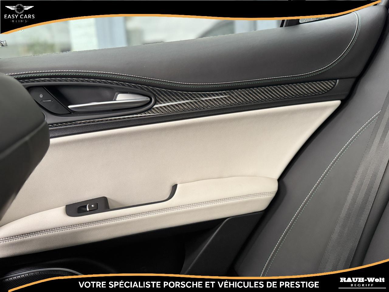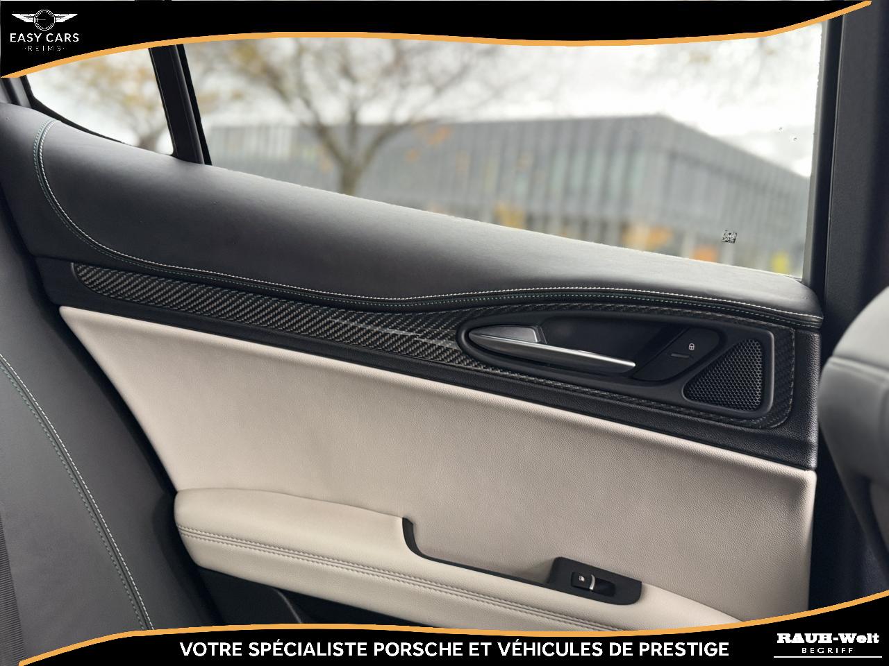 L'intérieur se distingue par ses sièges sport en cuir et Alcantara chauffants ainsi que ses surpiqûres aux couleurs de la marque. Les finitions en fibre de carbone et les détails en aluminium apportent une touche sportive. Le système audio Harman Kardon, associé à l'écran tactile, offre une expérience sonore et visuelle remarquable. Le système de navigation, CarPlay, Android Auto, l’assistance au stationnement et la climatisation automatique complètent parfaitement cet équipement haut de gamme.