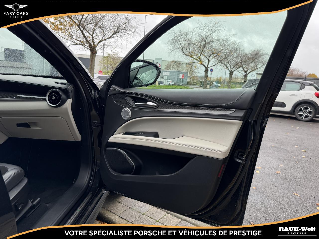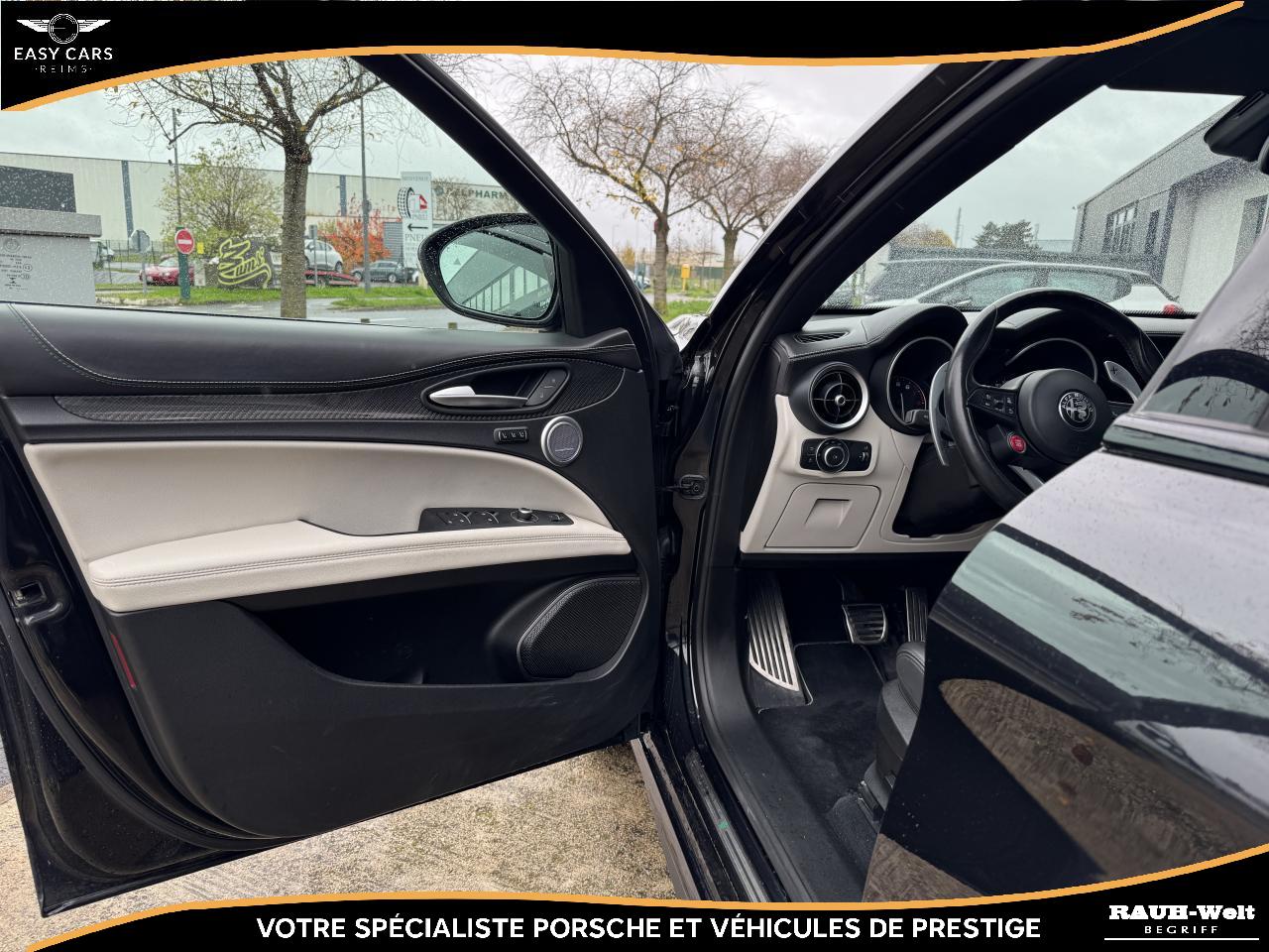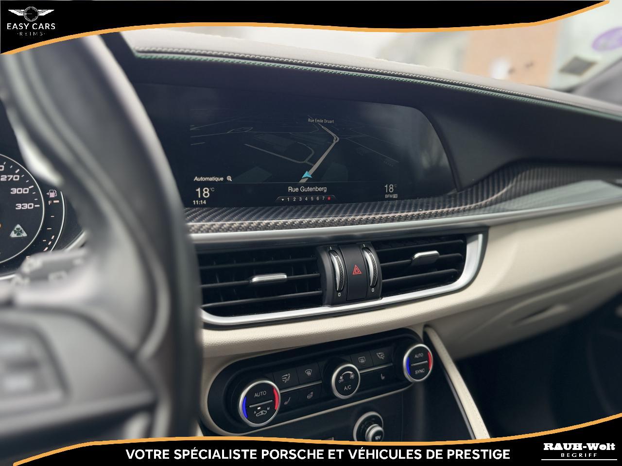 L'intérieur se distingue par ses sièges sport en cuir et Alcantara chauffants ainsi que ses surpiqûres aux couleurs de la marque. Les finitions en fibre de carbone et les détails en aluminium apportent une touche sportive. Le système audio Harman Kardon, associé à l'écran tactile, offre une expérience sonore et visuelle remarquable. Le système de navigation, CarPlay, Android Auto, l’assistance au stationnement et la climatisation automatique complètent parfaitement cet équipement haut de gamme.
