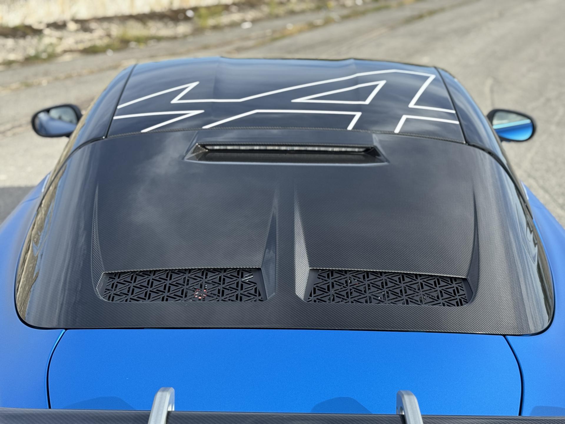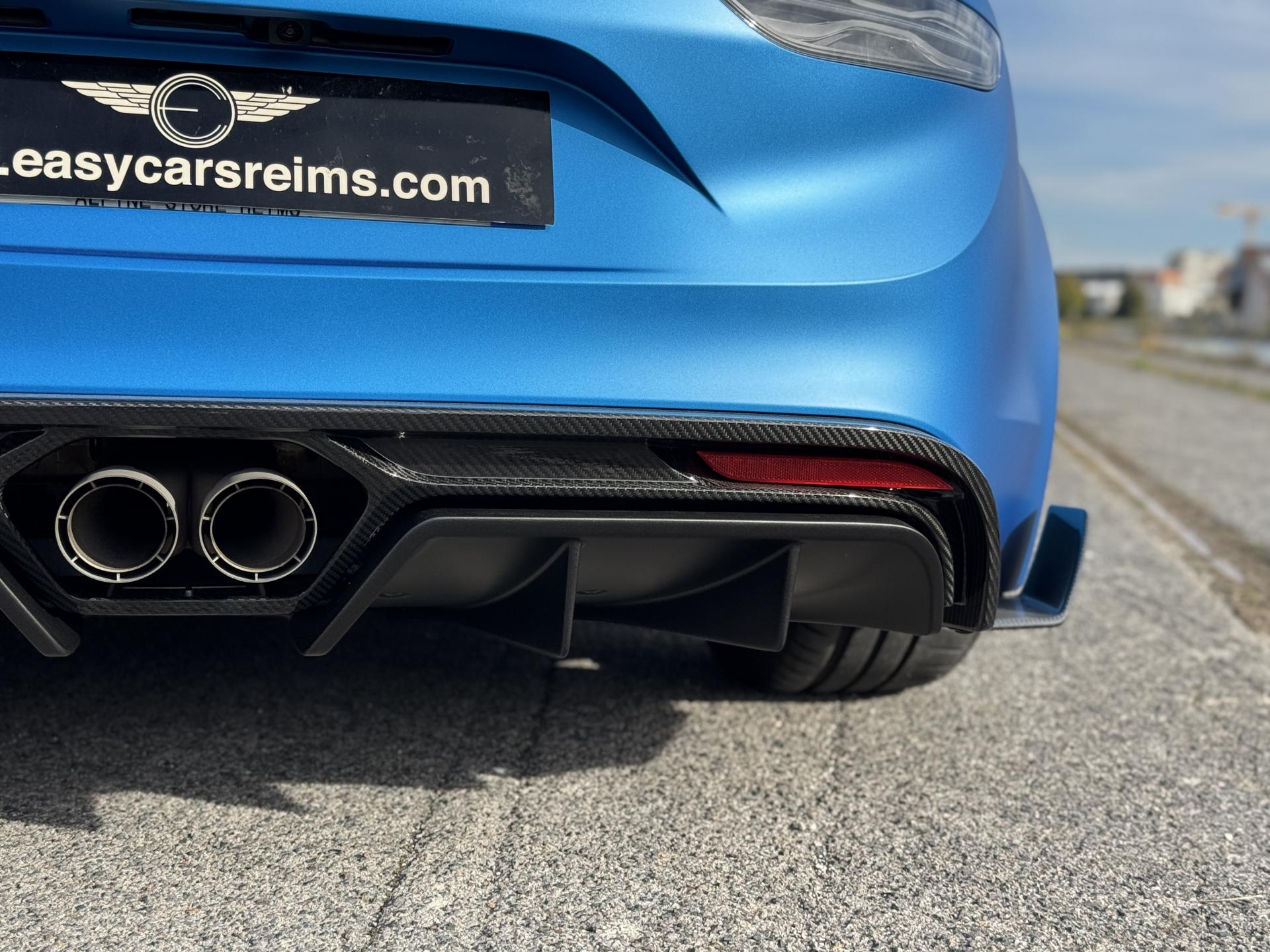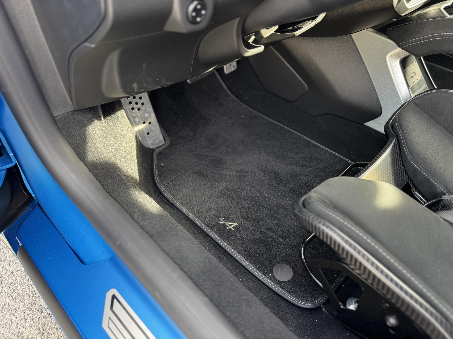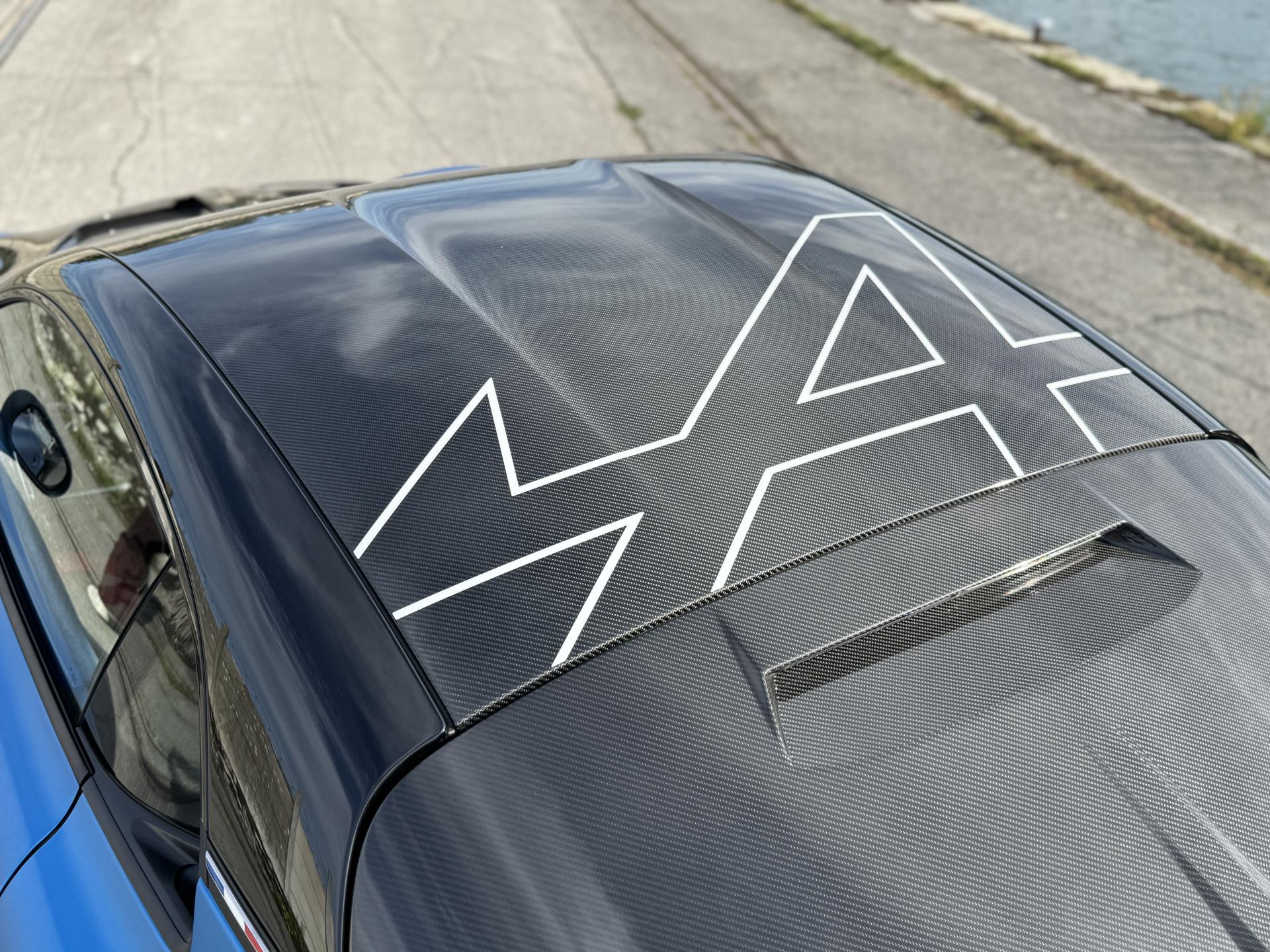 Parmi les options les plus prestigieuses, cette Alpine reçoit la peinture exclusive Bleu Racing Mat, le Pack Carbone R et le Kit Aéro R intégrant lame avant, diffuseur et aileron arrière pour un appui optimisé. Elle se distingue également par son logo A sur le toit et sa livrée French flag qui rappellent fièrement les origines de la marque.