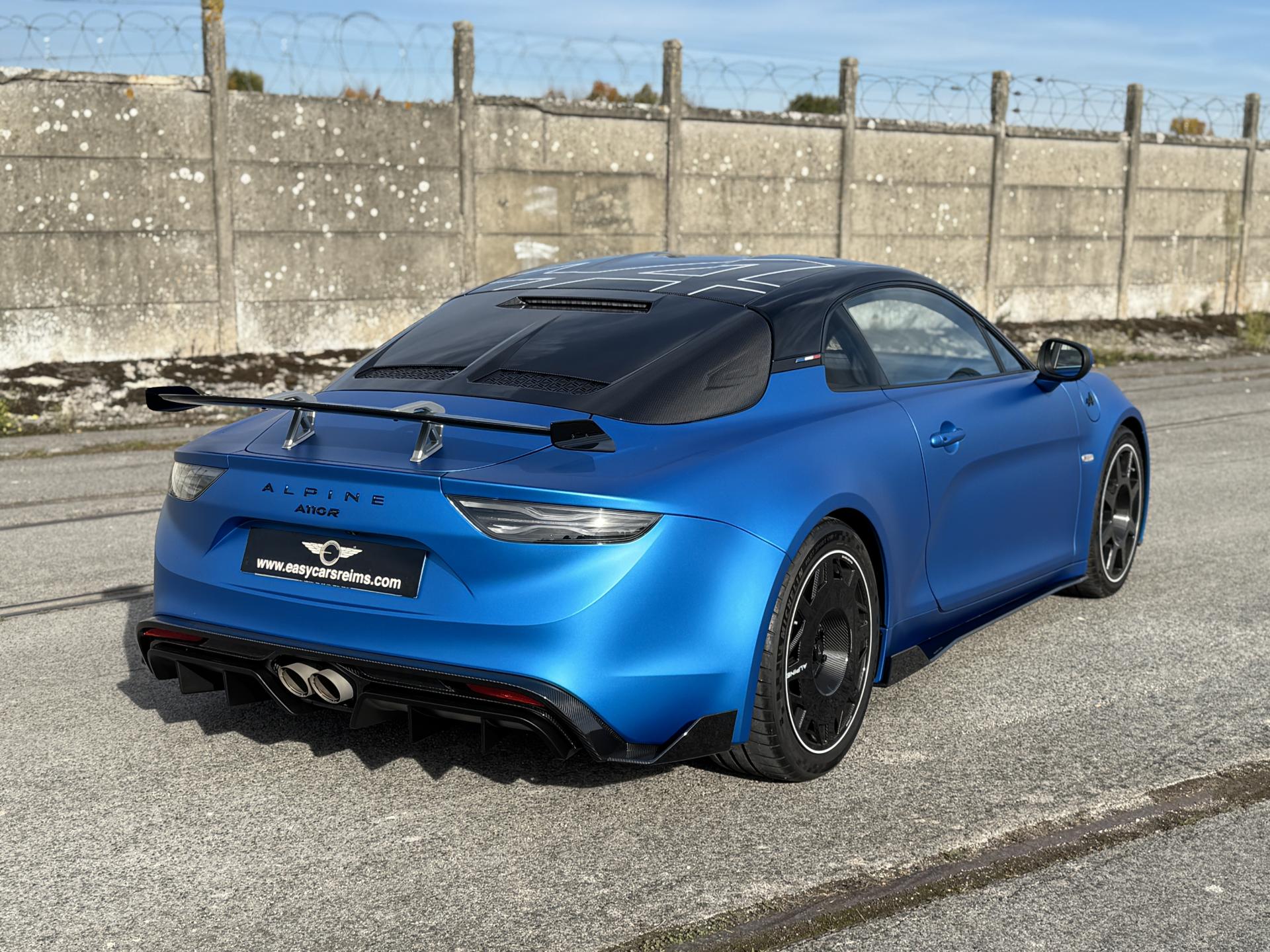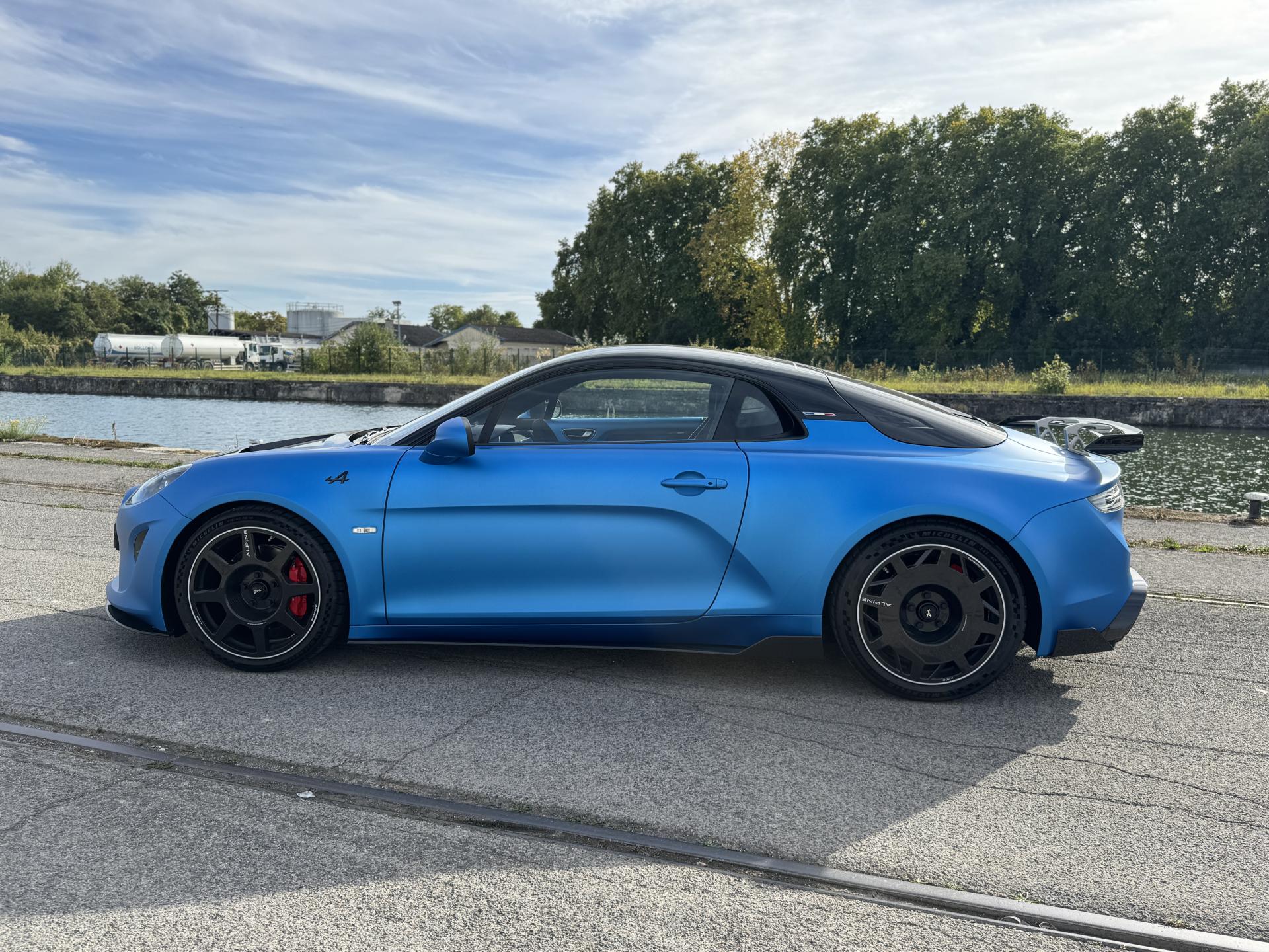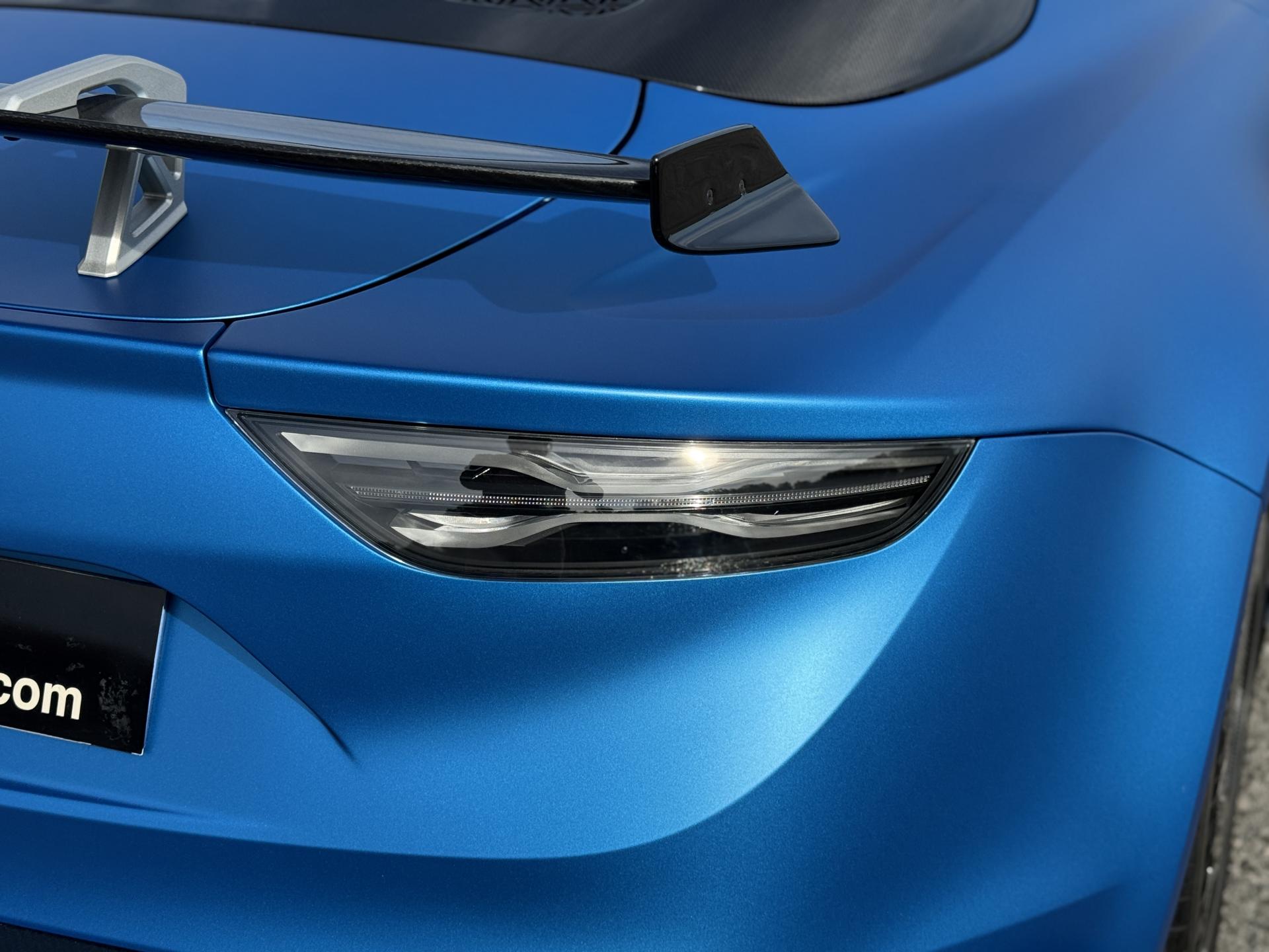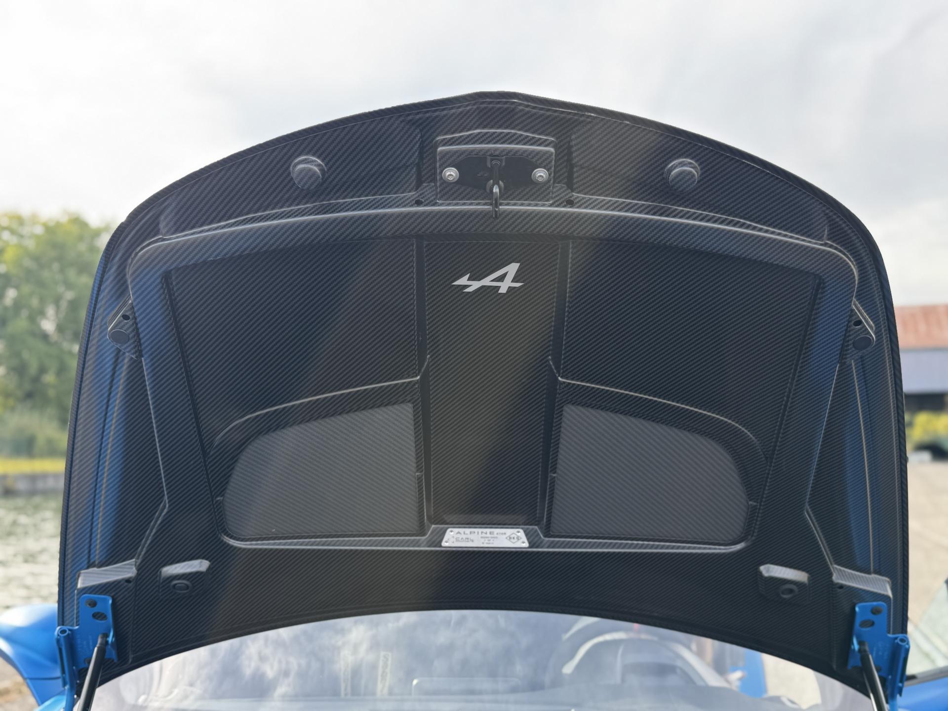 Parmi les options les plus prestigieuses, cette Alpine reçoit la peinture exclusive Bleu Racing Mat, le Pack Carbone R et le Kit Aéro R intégrant lame avant, diffuseur et aileron arrière pour un appui optimisé. Elle se distingue également par son logo A sur le toit et sa livrée French flag qui rappellent fièrement les origines de la marque.