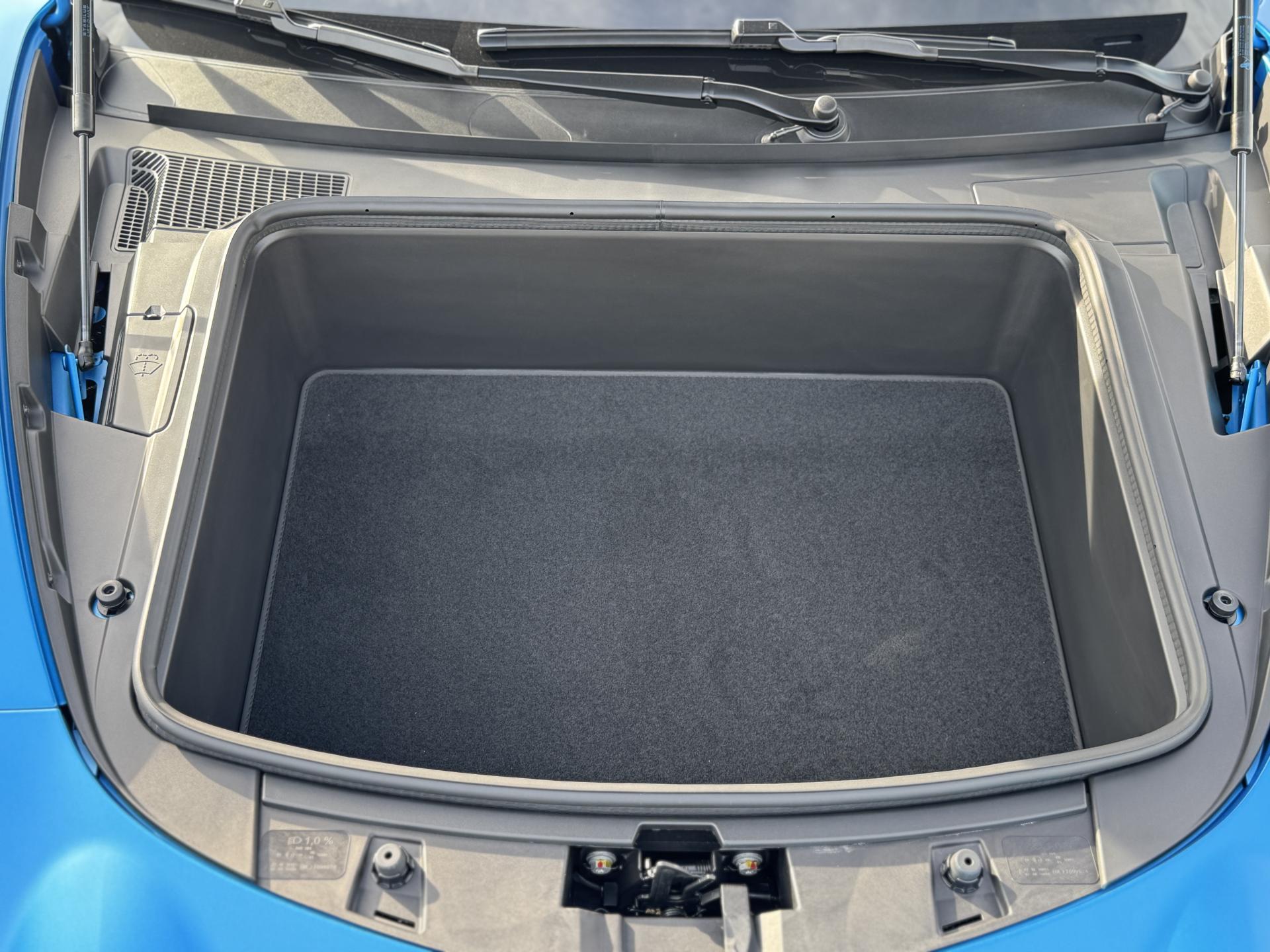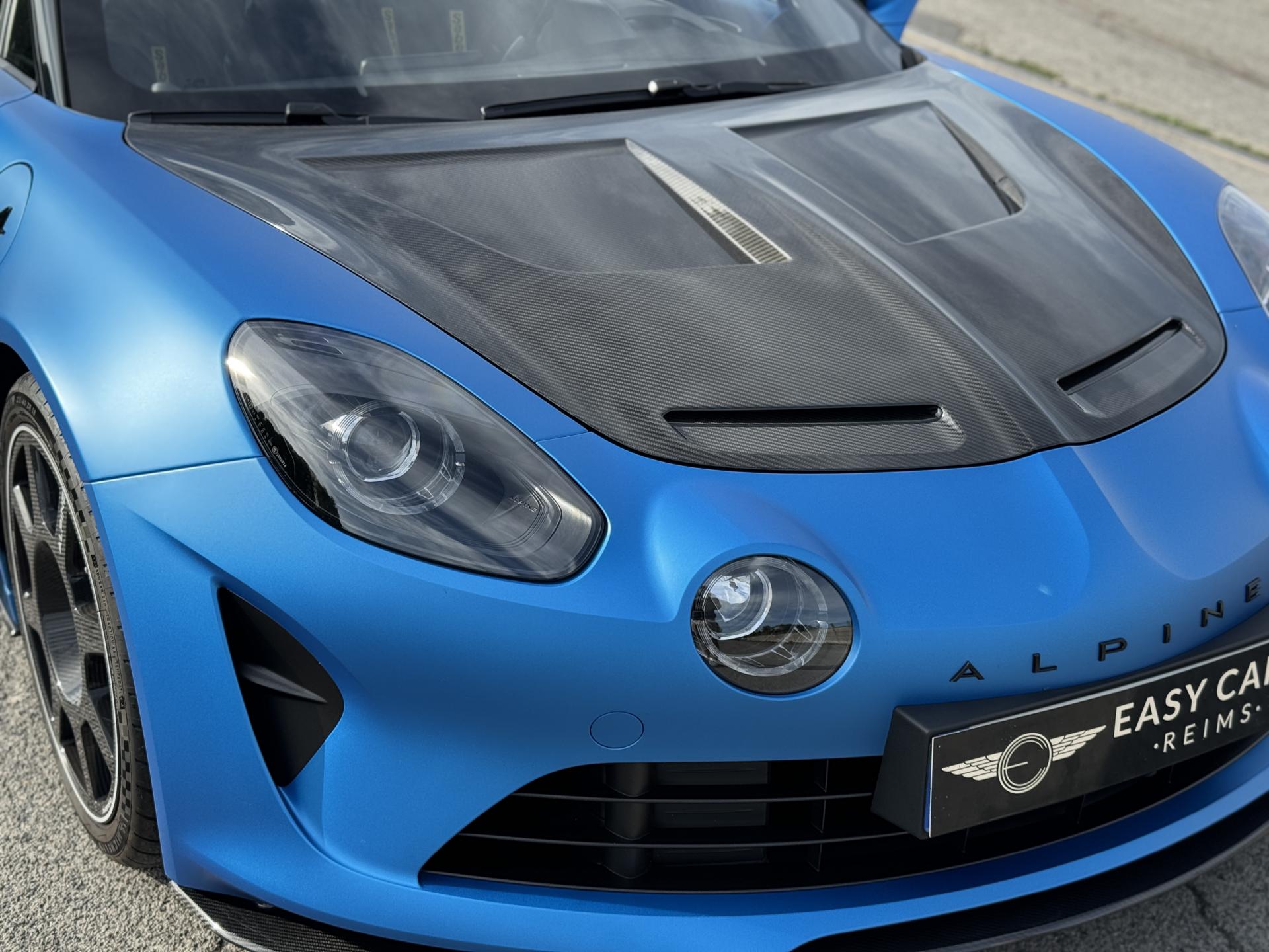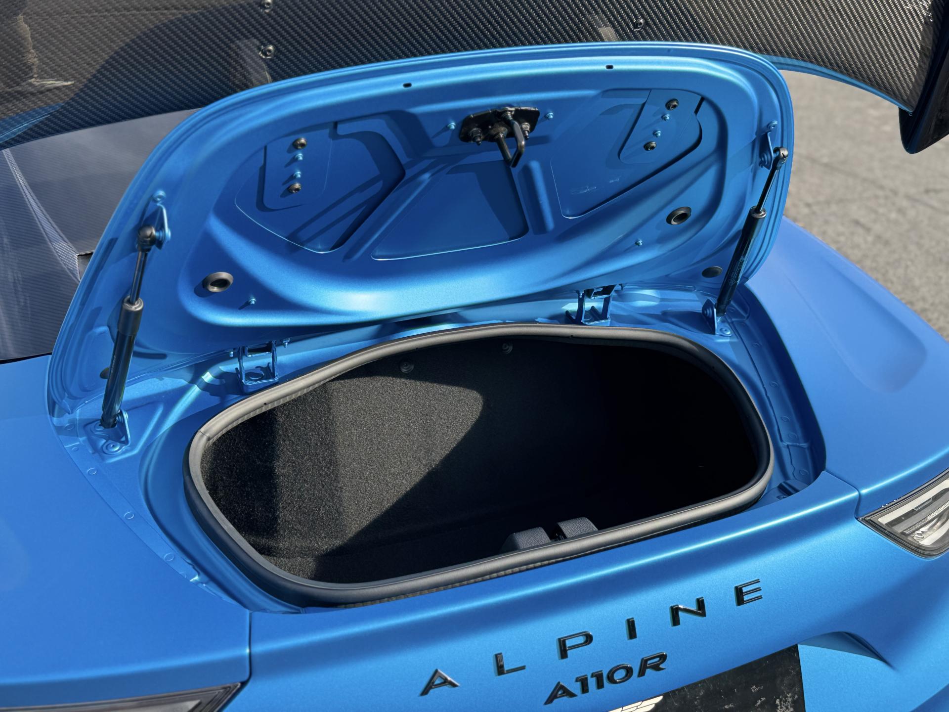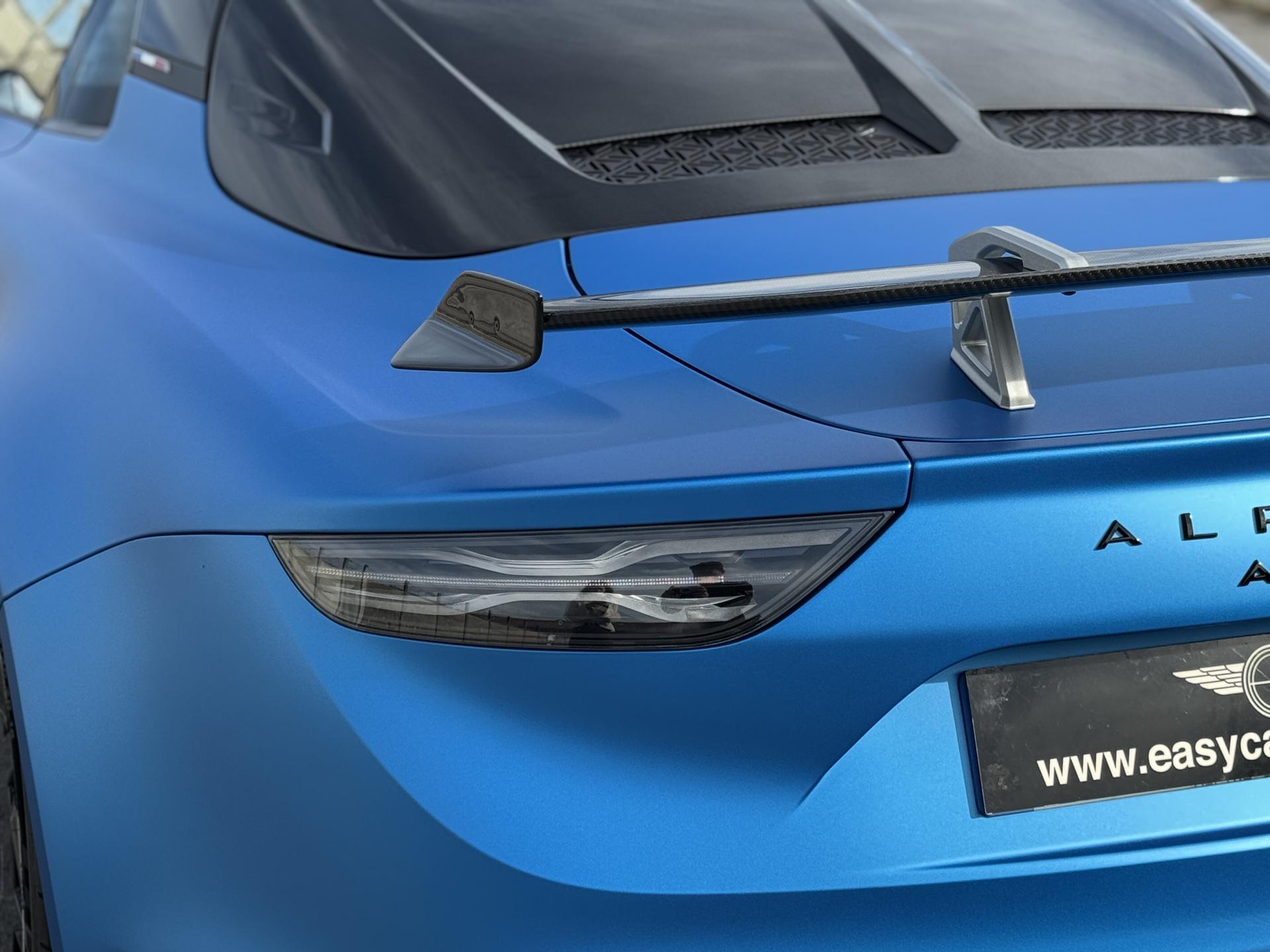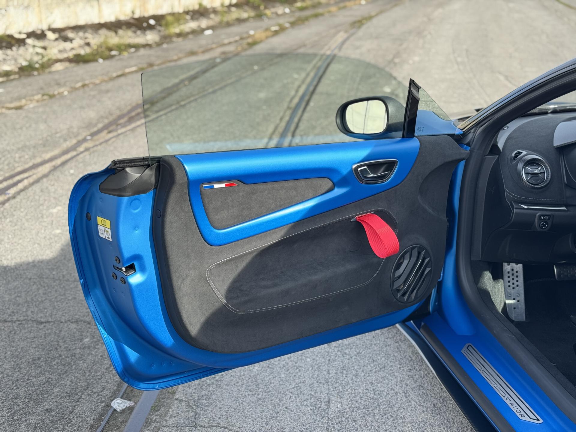 Parmi les options les plus prestigieuses, cette Alpine reçoit la peinture exclusive Bleu Racing Mat, le Pack Carbone R et le Kit Aéro R intégrant lame avant, diffuseur et aileron arrière pour un appui optimisé. Elle se distingue également par son logo A sur le toit et sa livrée French flag qui rappellent fièrement les origines de la marque.