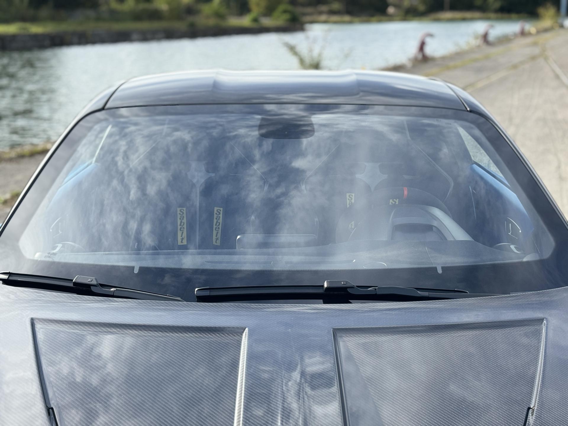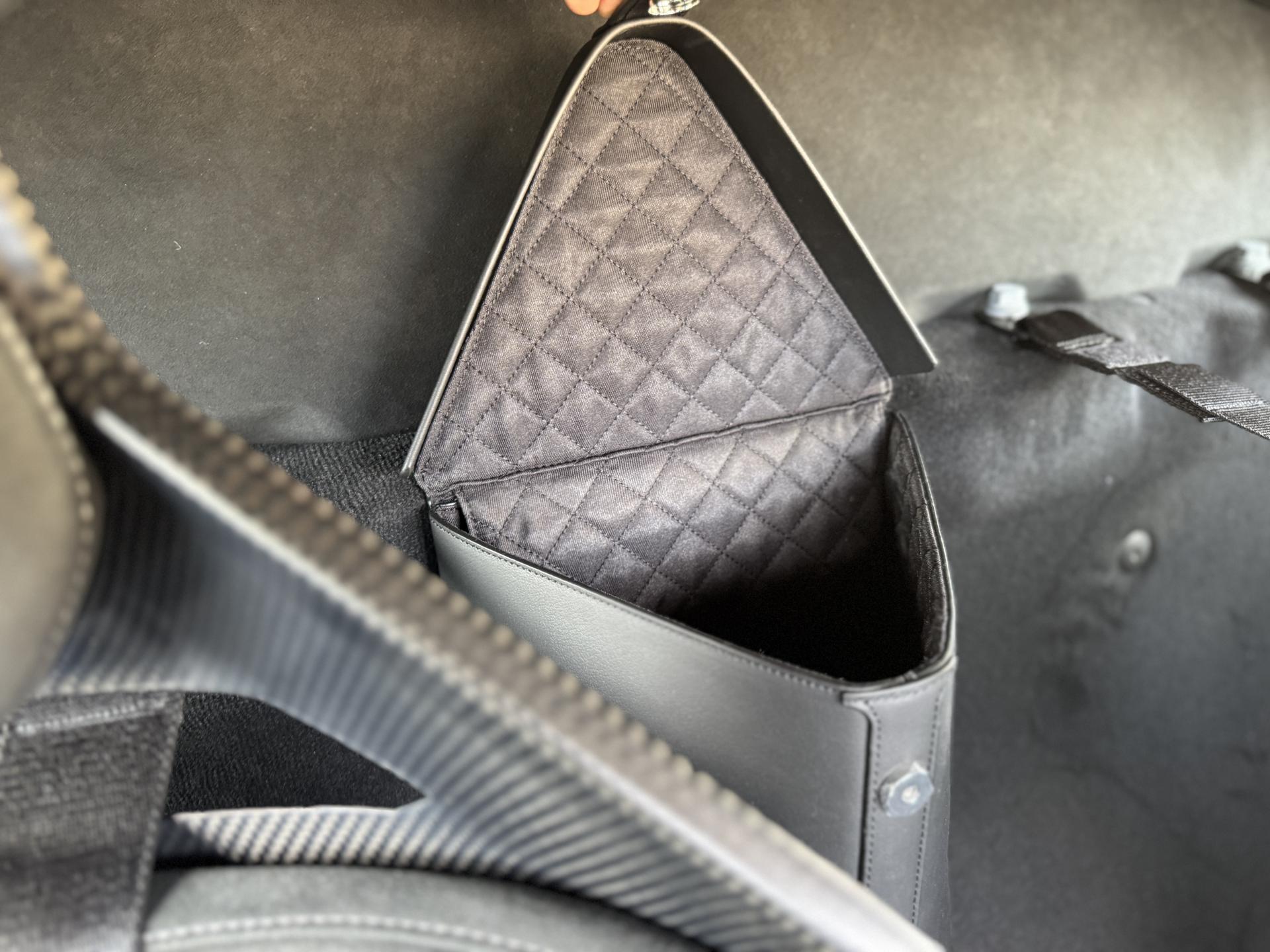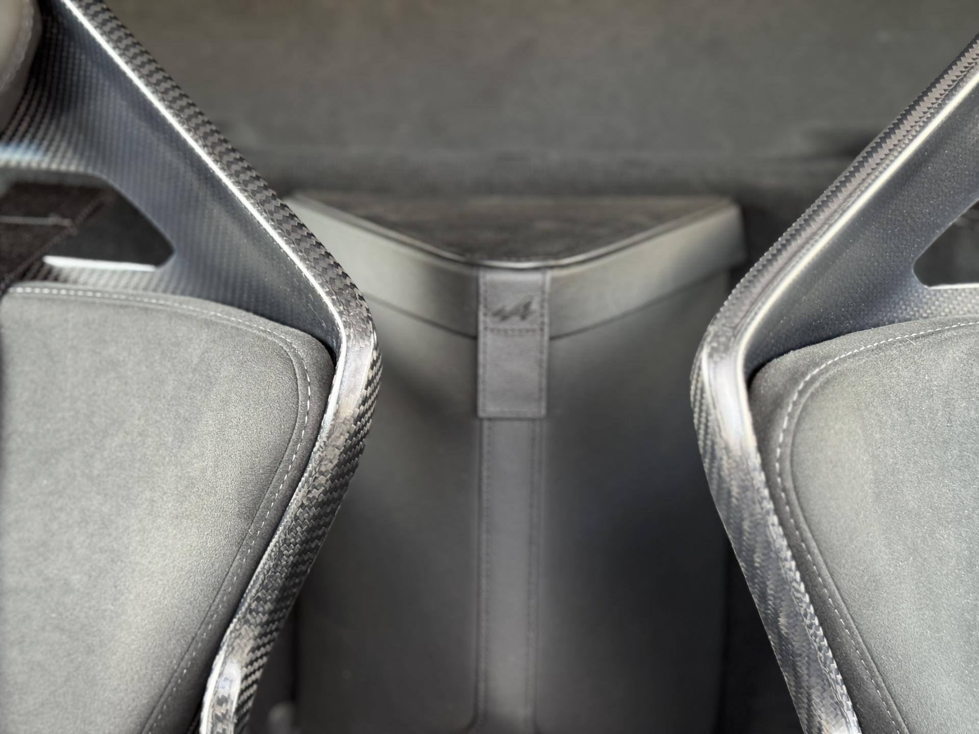L’intérieur se distingue par les sièges baquets Sabelt en carbone, le pédalier et les palettes en aluminium ainsi que des finitions avec inserts carbone et surpiqûres contrastées. Côté confort et technologie, on retrouve le système multimédia Focal Premium.