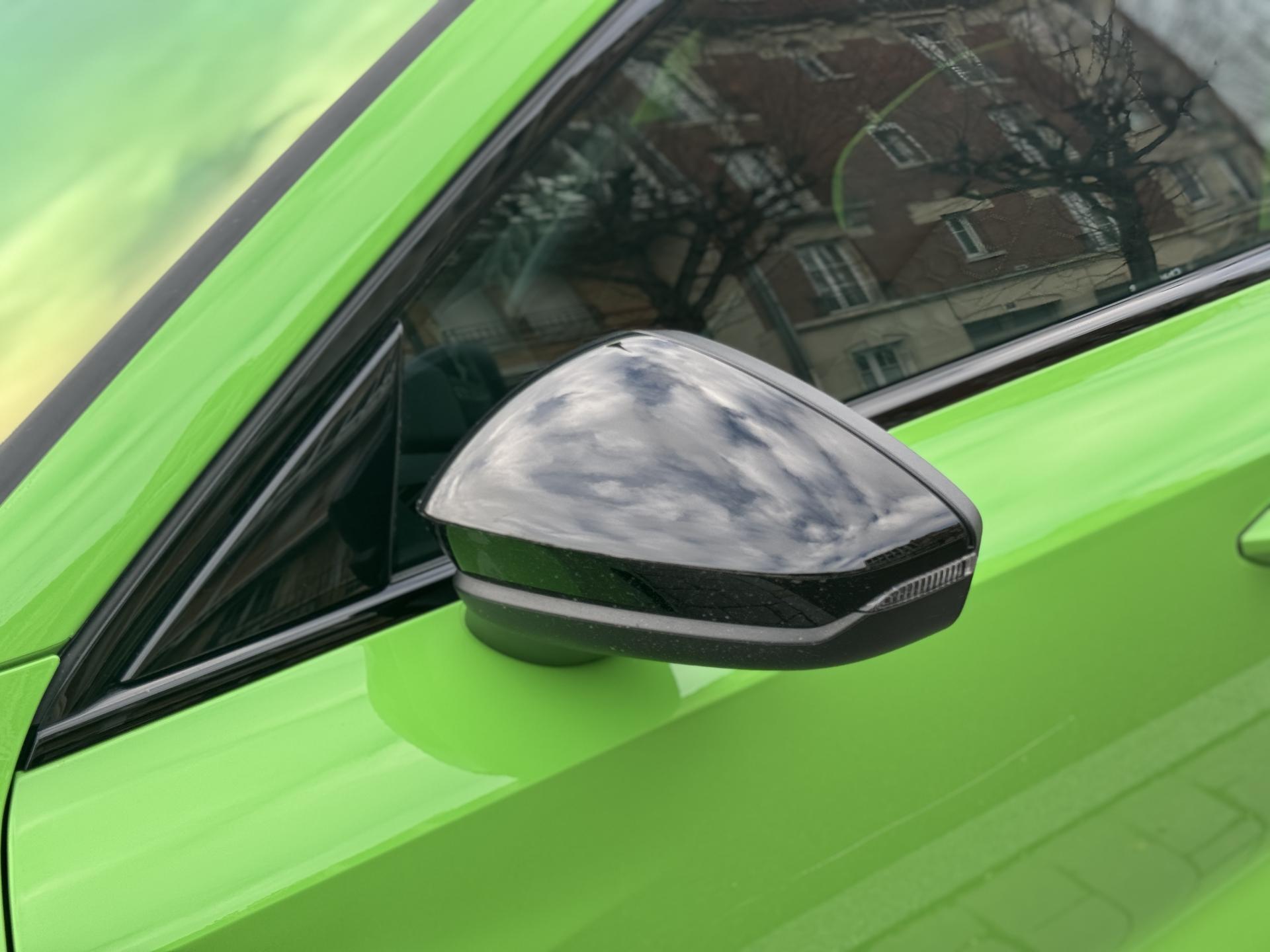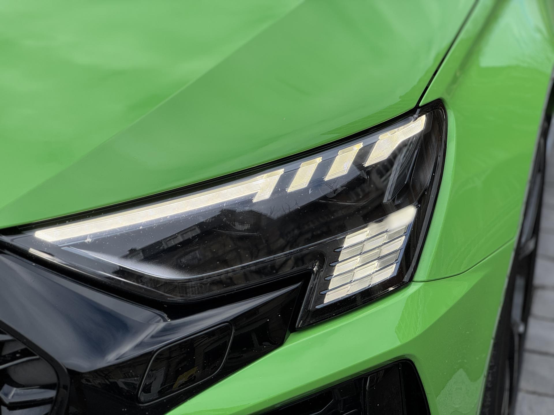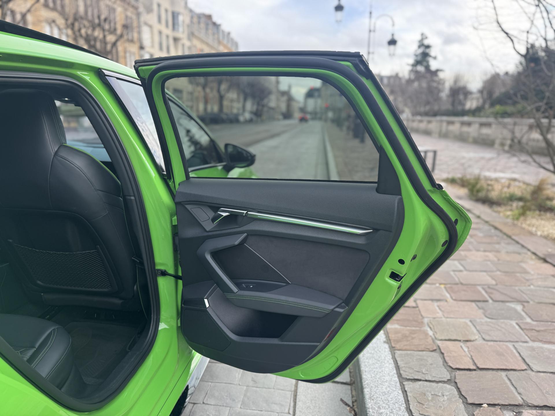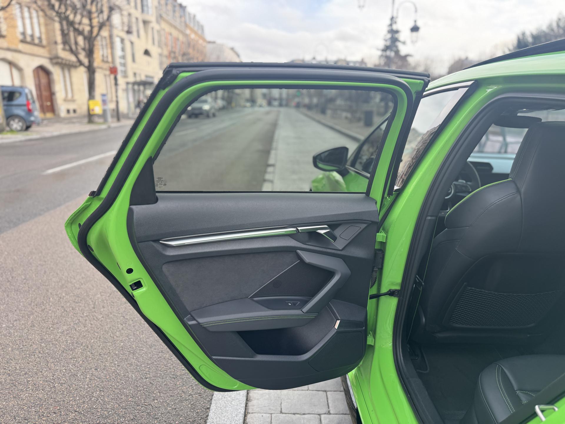 Les jantes 19 pouces en noir brillant, les phares Audi Matrix LED, les spoilers avant et arrière, ainsi que la peinture exclusive Kyalami Green composent une présentation spectaculaire qui ne laisse personne indifférent.