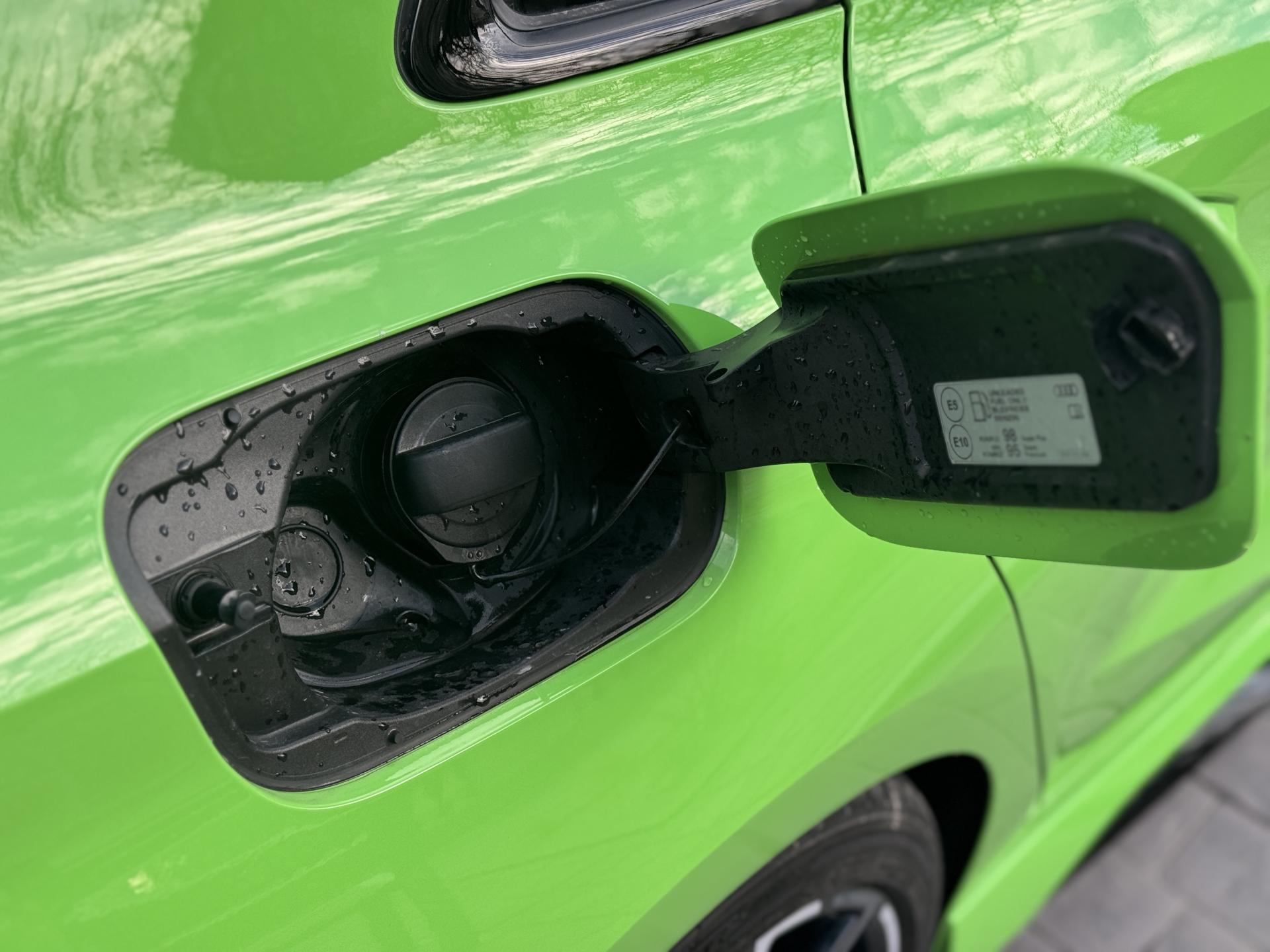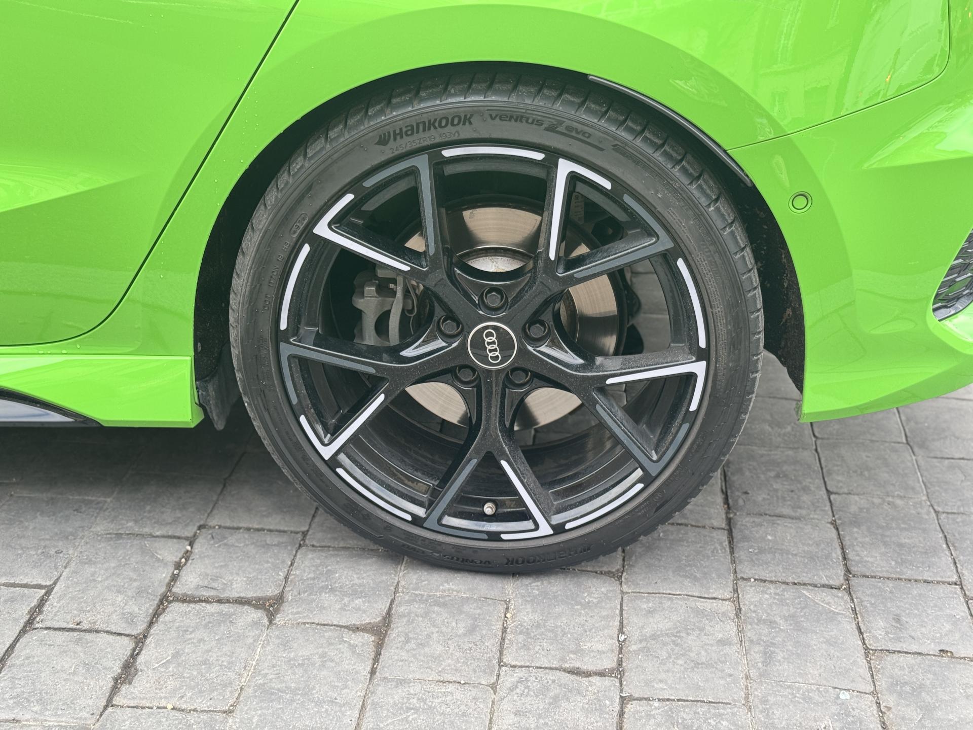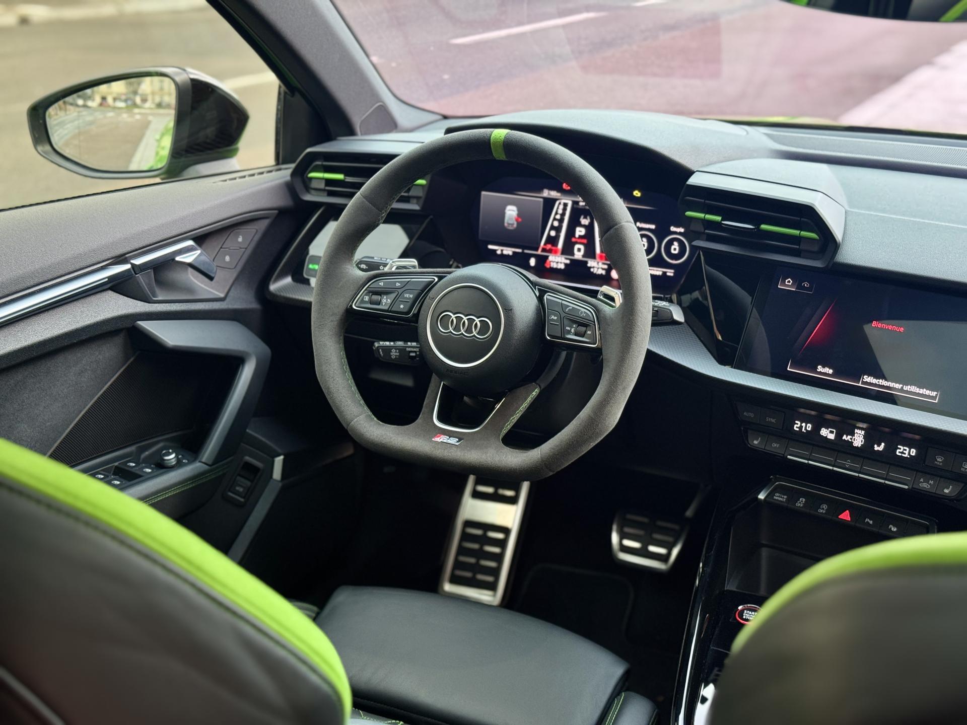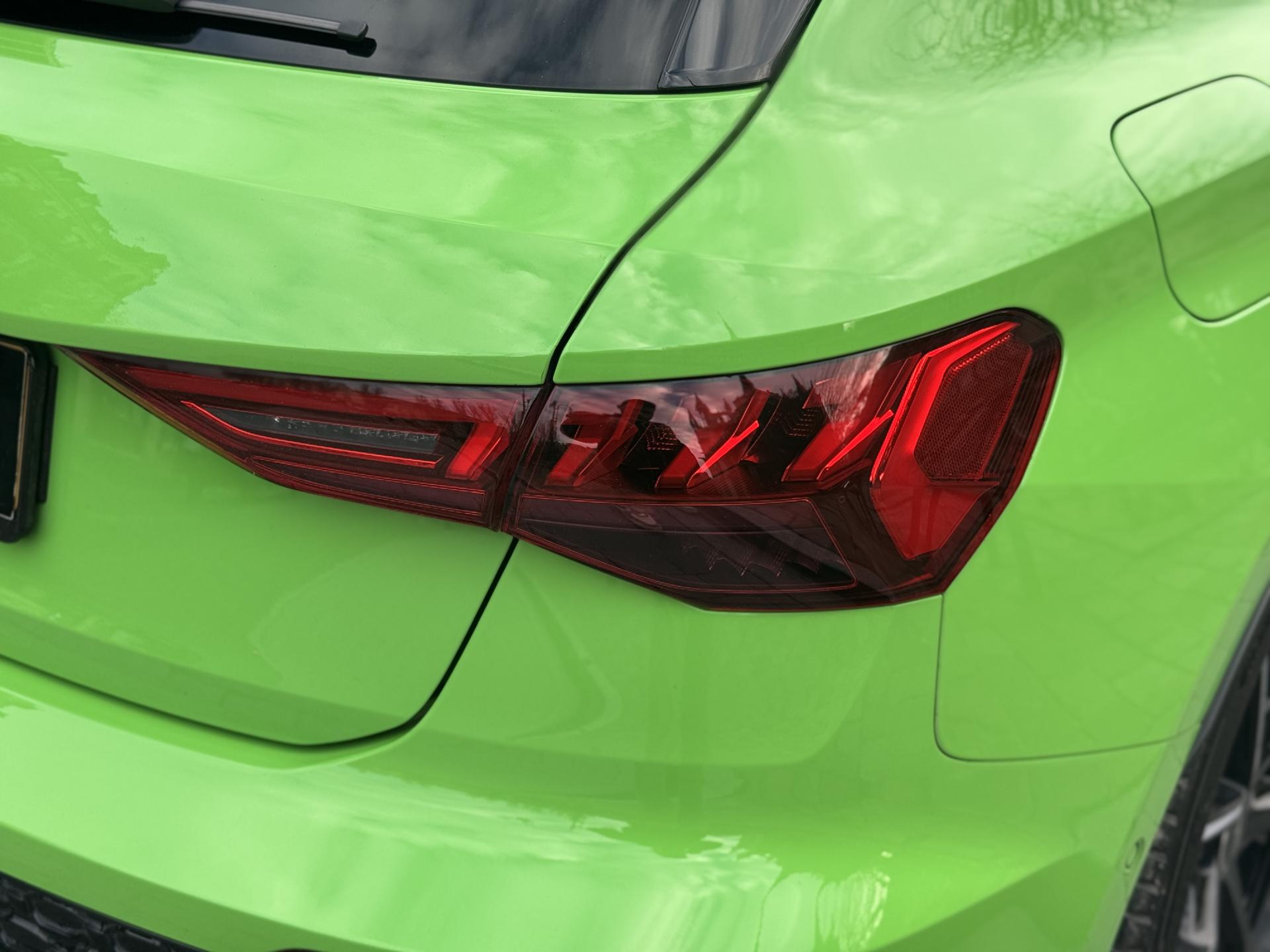 Les jantes 19 pouces en noir brillant, les phares Audi Matrix LED, les spoilers avant et arrière, ainsi que la peinture exclusive Kyalami Green composent une présentation spectaculaire qui ne laisse personne indifférent.