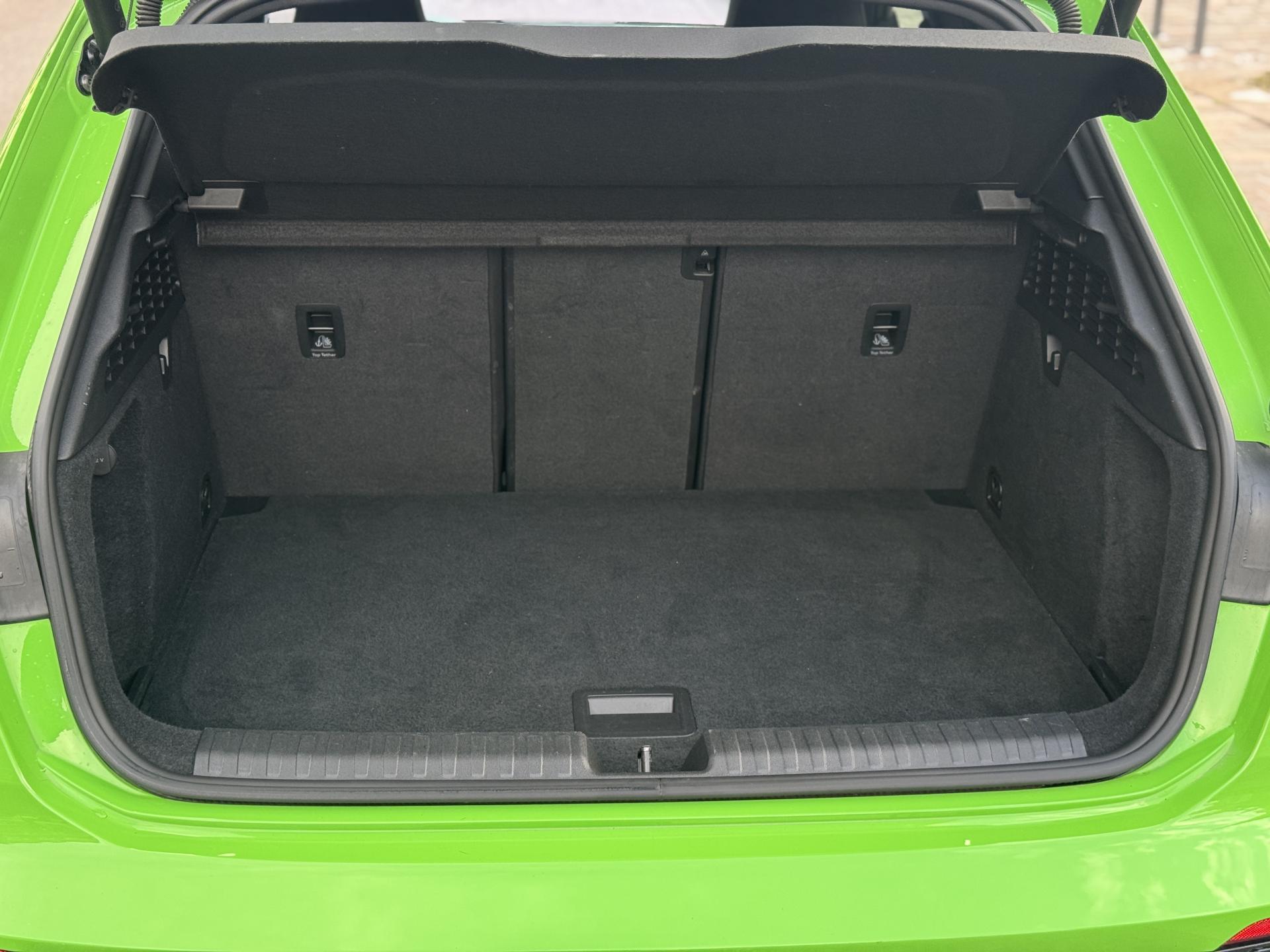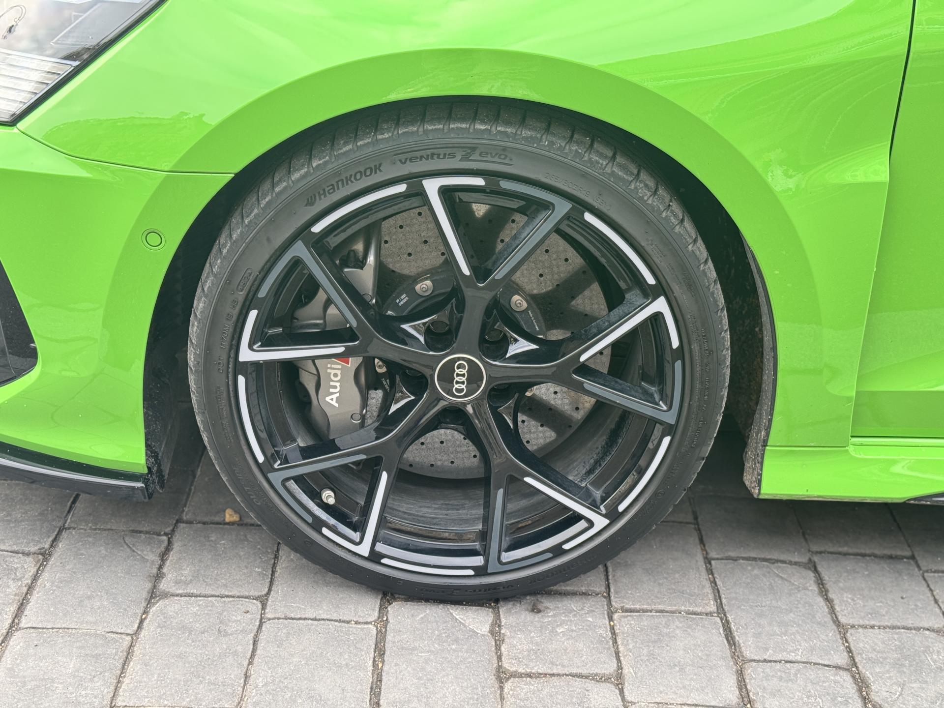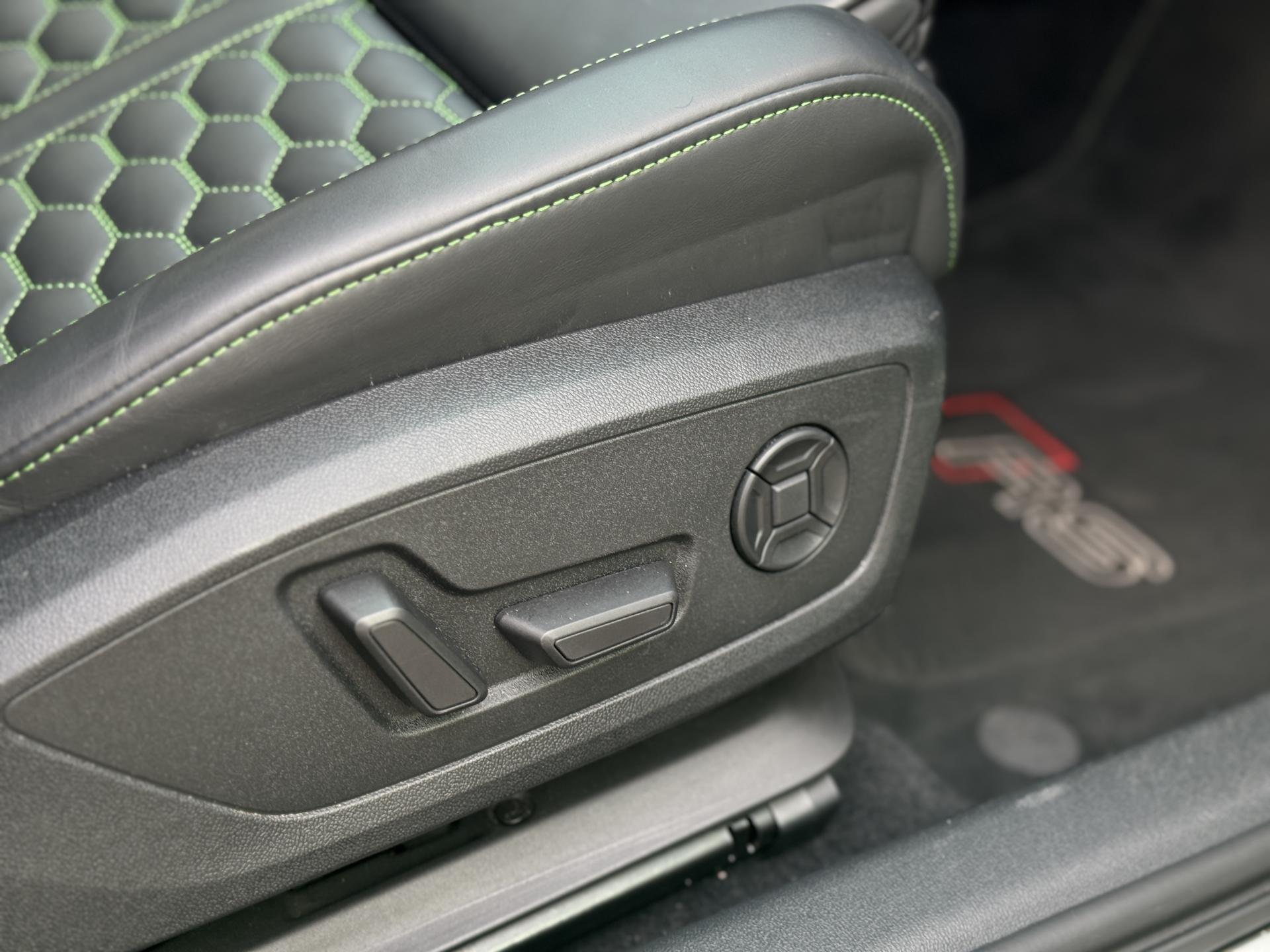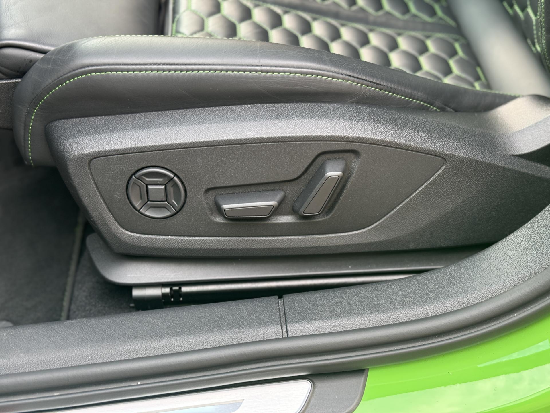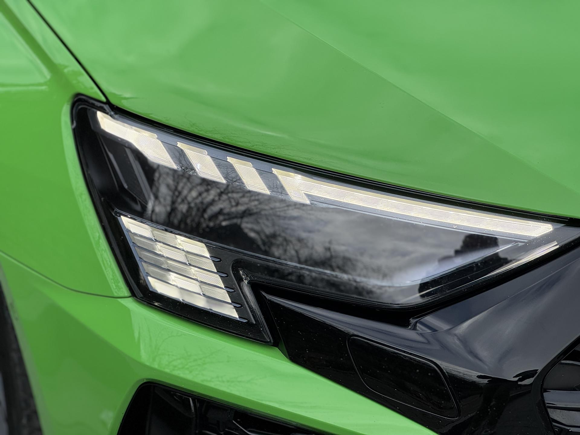 Les jantes 19 pouces en noir brillant, les phares Audi Matrix LED, les spoilers avant et arrière, ainsi que la peinture exclusive Kyalami Green composent une présentation spectaculaire qui ne laisse personne indifférent.