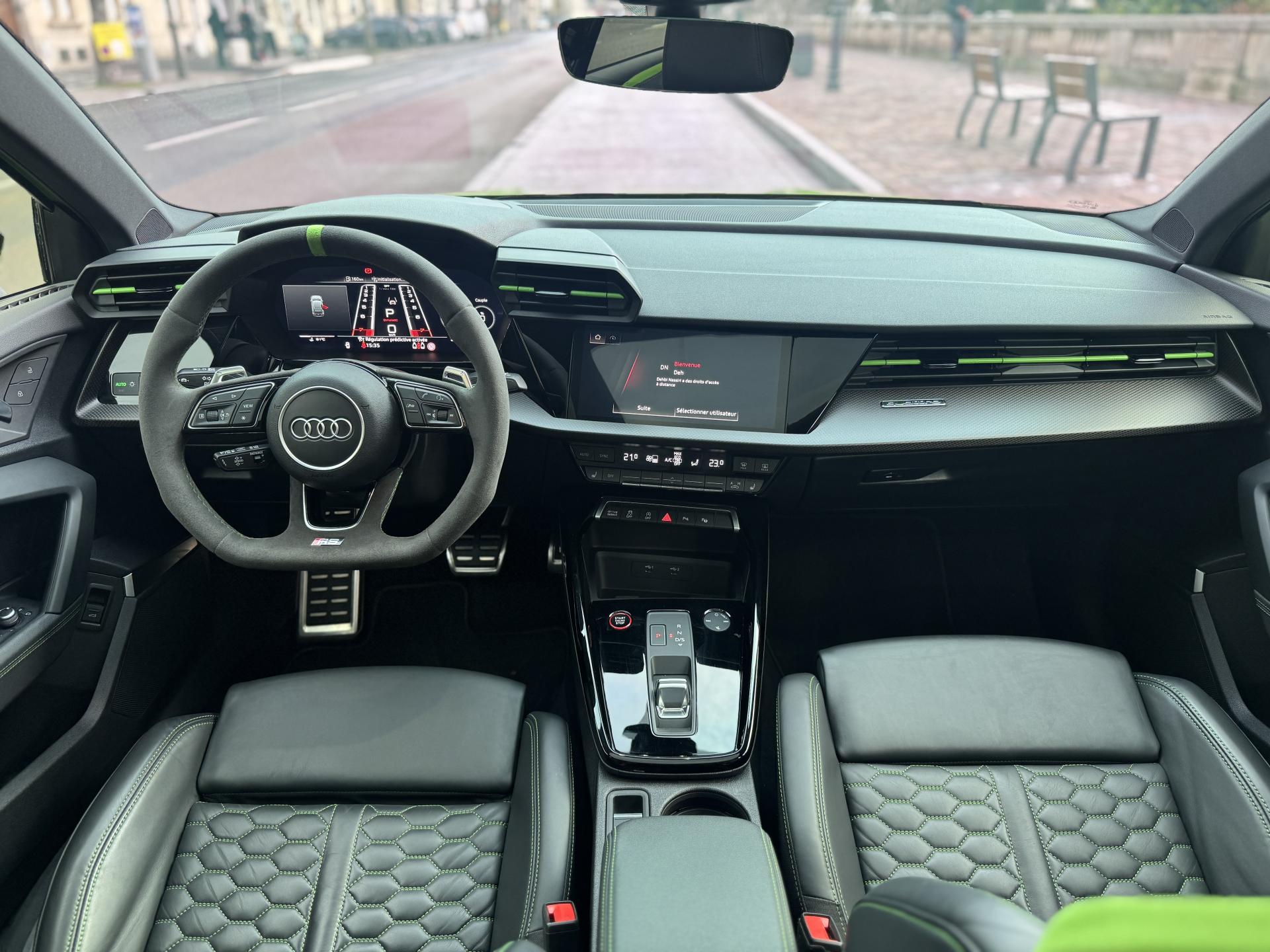 Sous le capot, ce 5-cylindres turbo de 400 chevaux délivre une puissance brutale couplée à une boîte S tronic 7 rapports d'une précision chirurgicale.