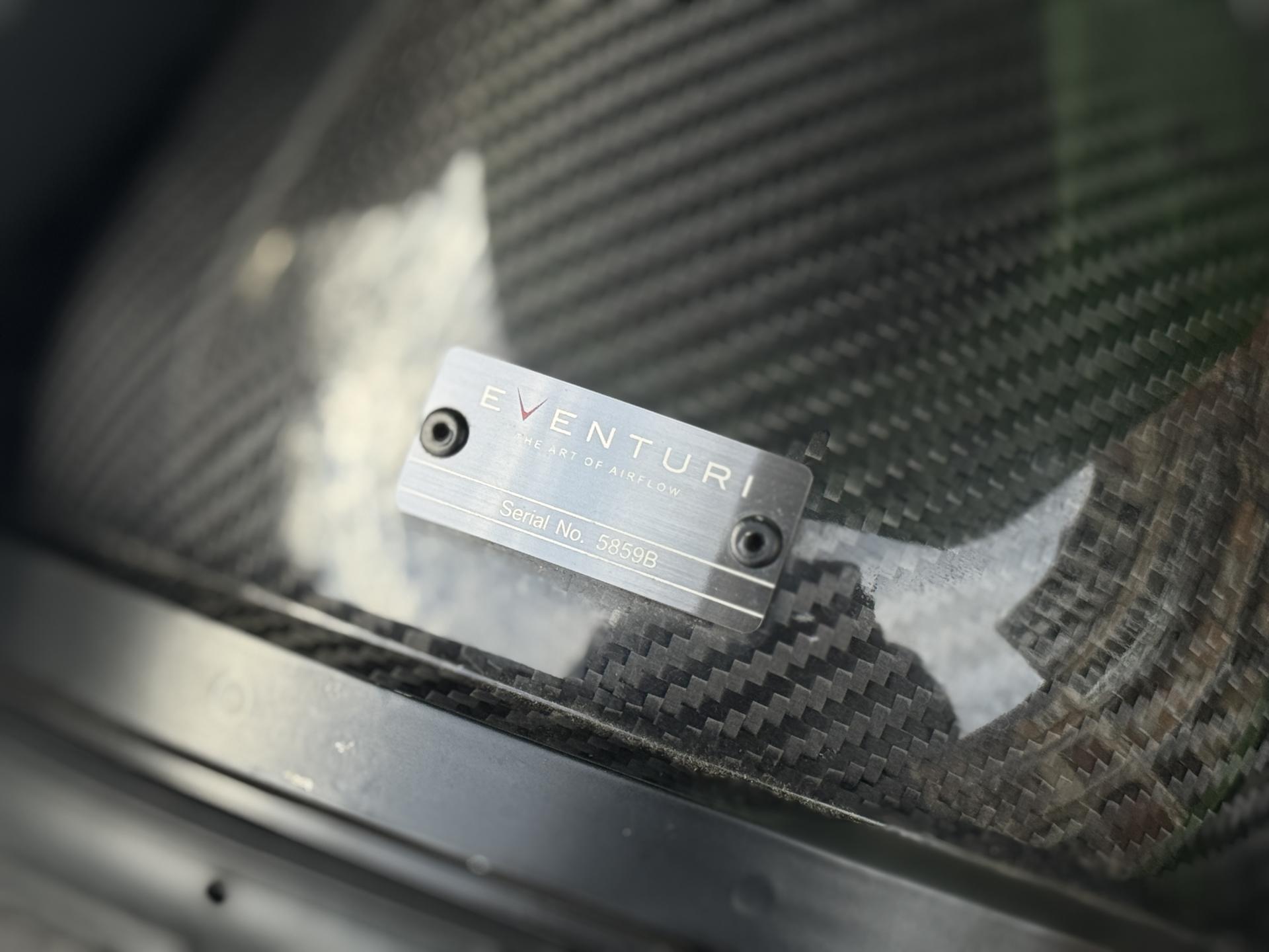 L'échappement sport RS libère cette signature sonore si particulière, sublimée par le kit d'admission Eventuri en carbone qui optimise le flux d'air et accentue encore davantage les sensations acoustiques. Le cache moteur en carbone complète cette présentation technique soignée.