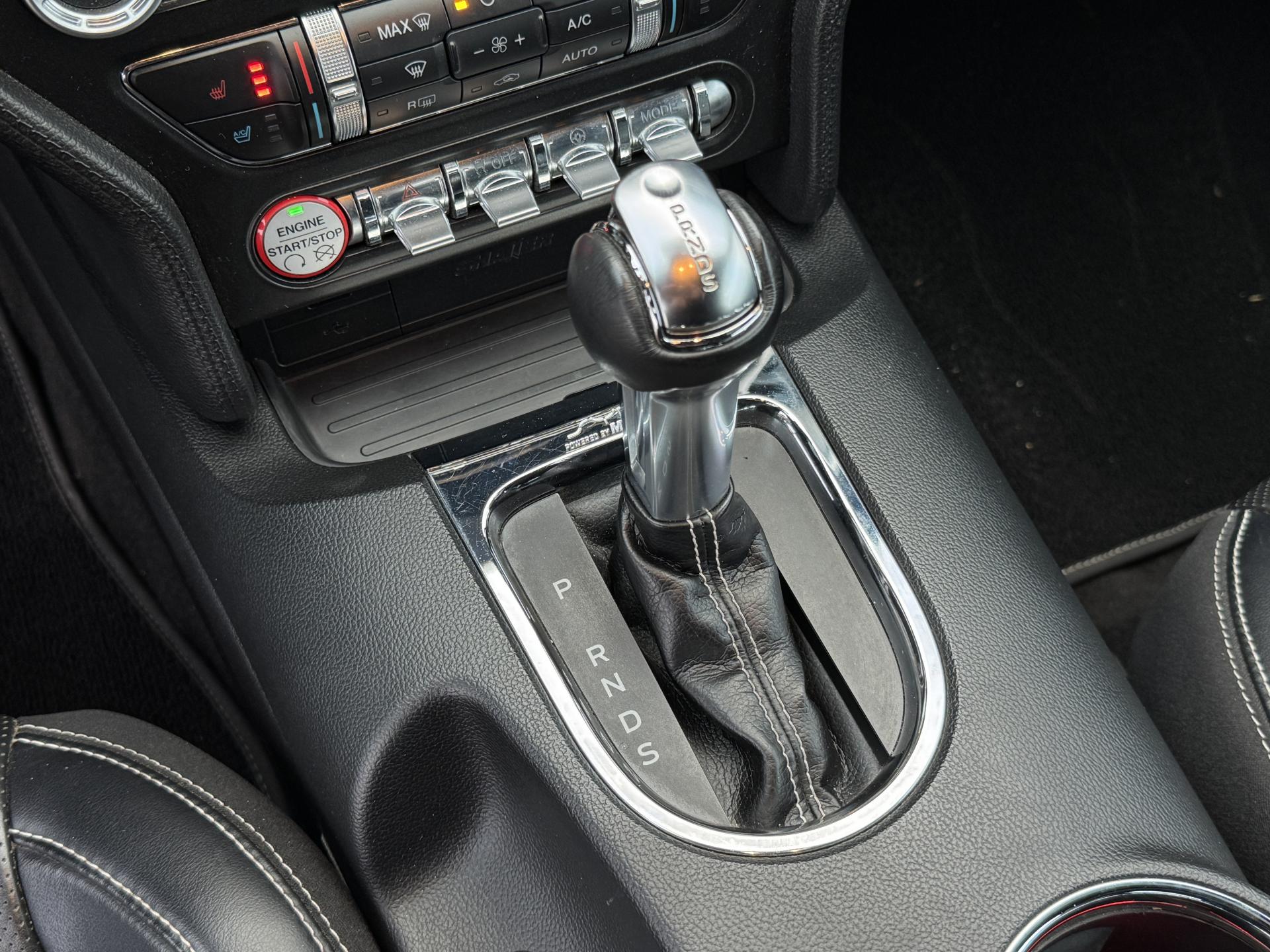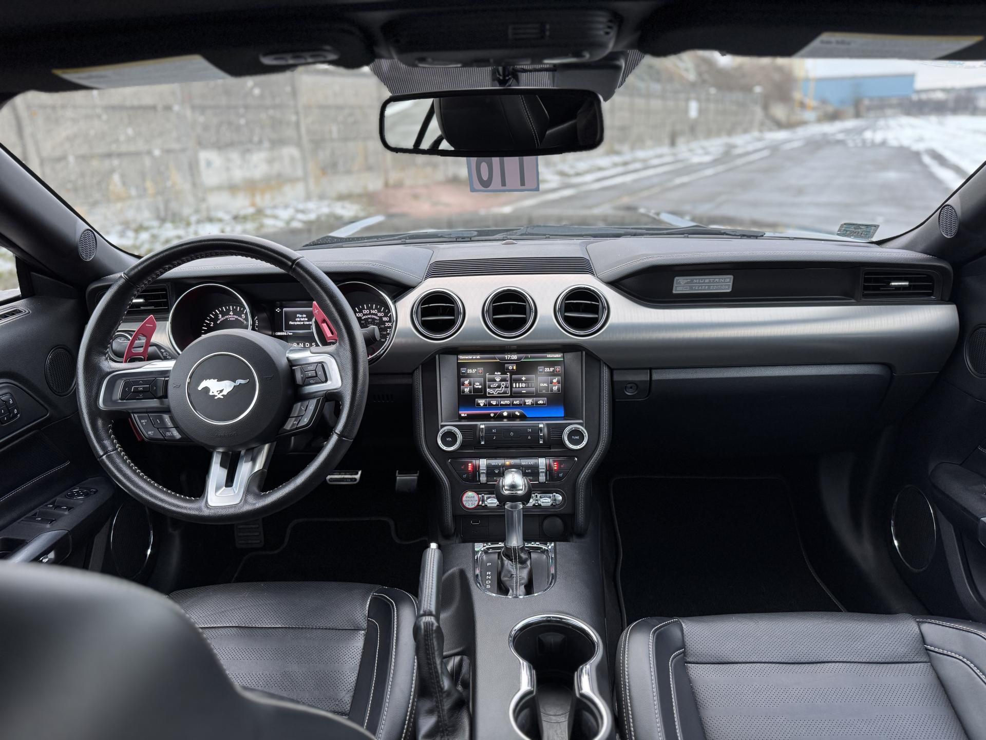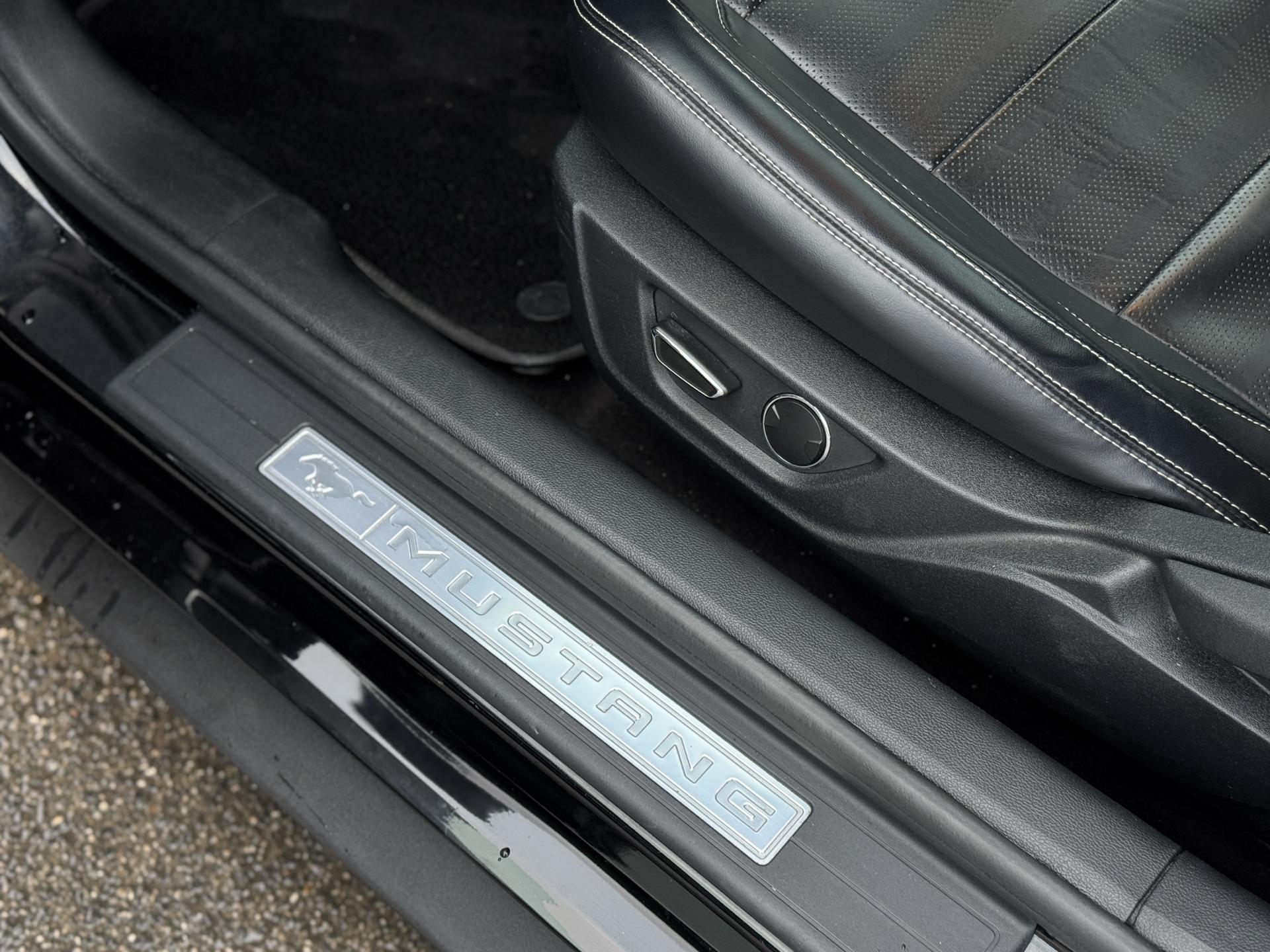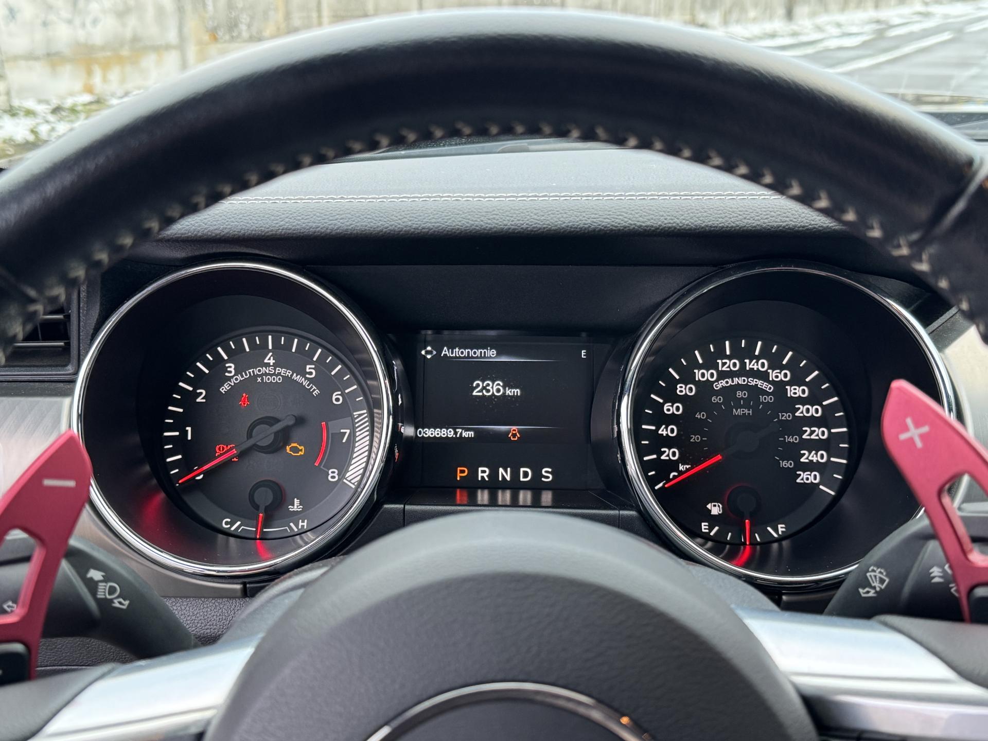 Le Pony Package met en valeur le design avec une calandre spécifique ornée de l’emblème Mustang et des jantes dédiées qui renforcent son allure sportive. L’équipement comprend également la climatisation automatique bi-zone, l’éclairage d’ambiance, la caméra de recul, l’aide au stationnement arrière, le régulateur de vitesse adaptatif, les phares bi-xénon, la peinture Noir Shadow et la double sortie d’échappement chromée qui affirme son caractère.