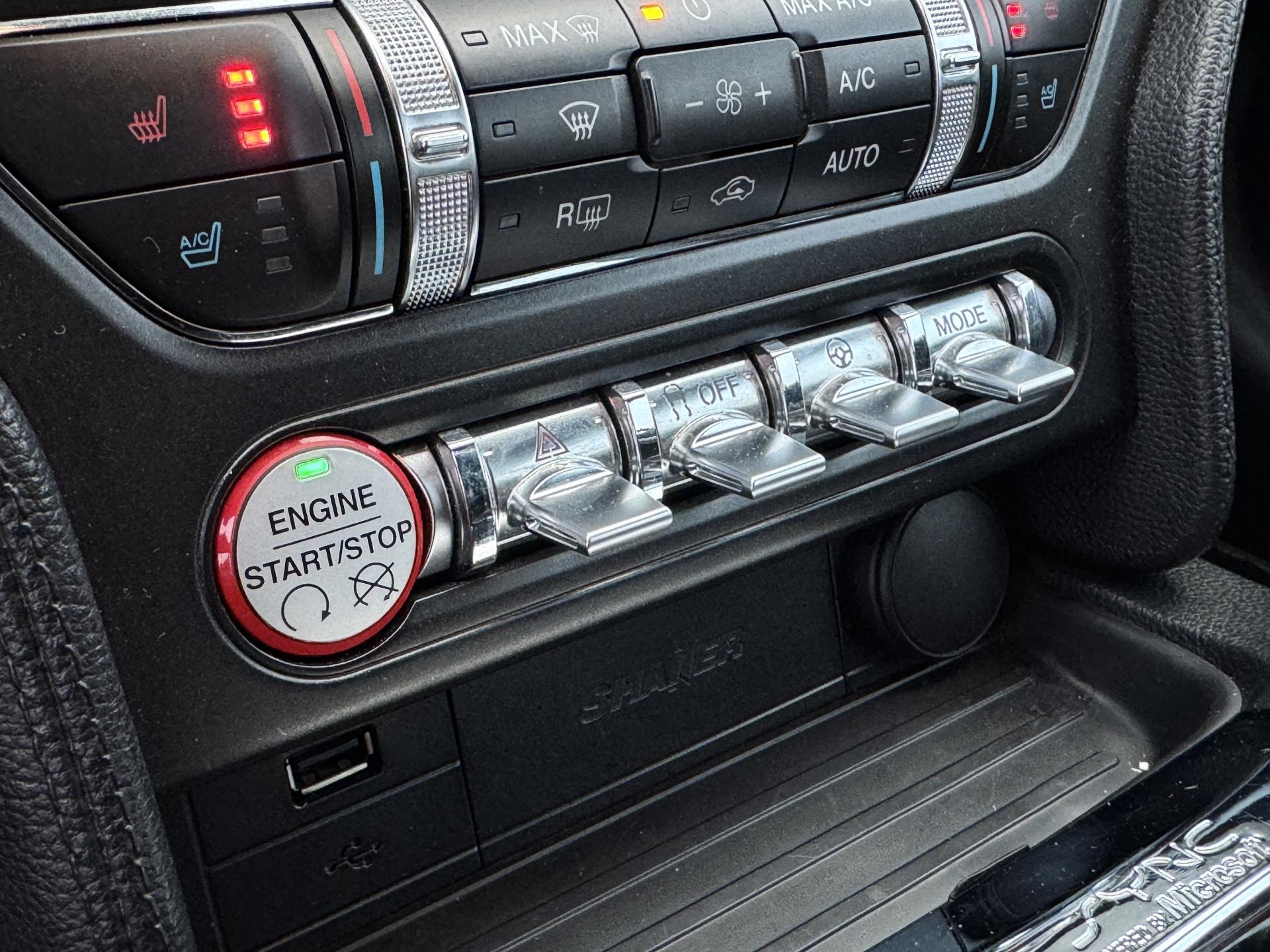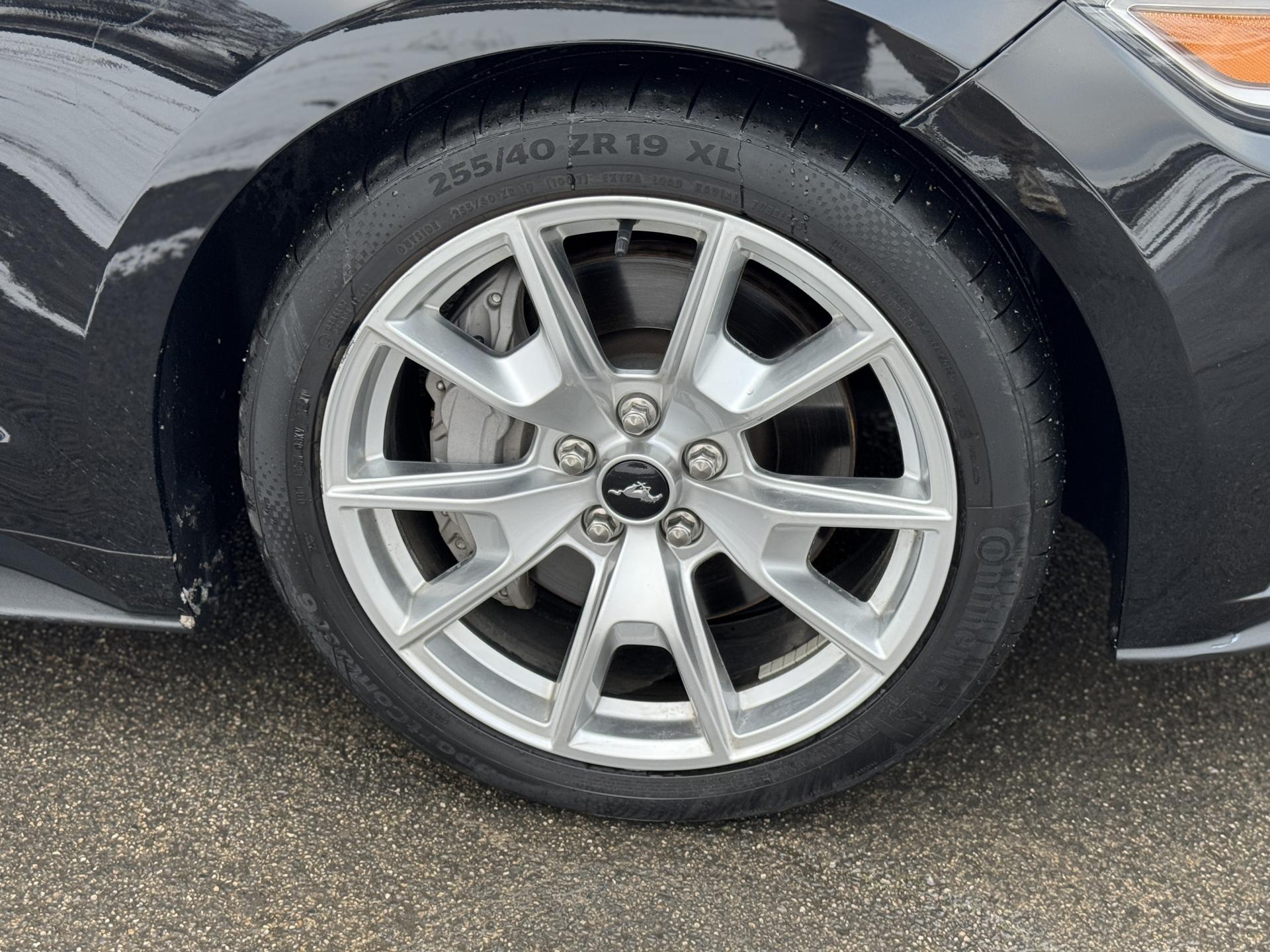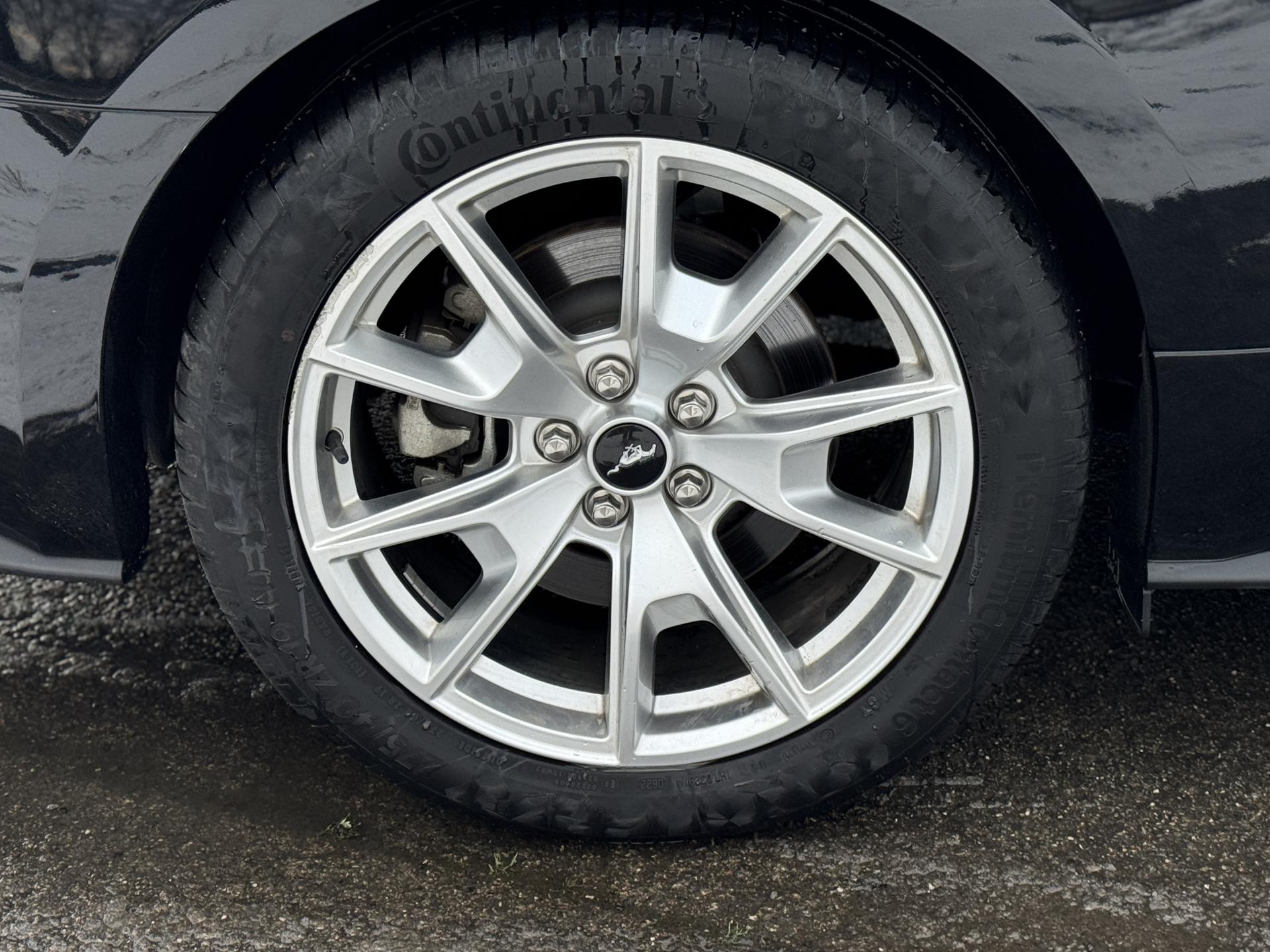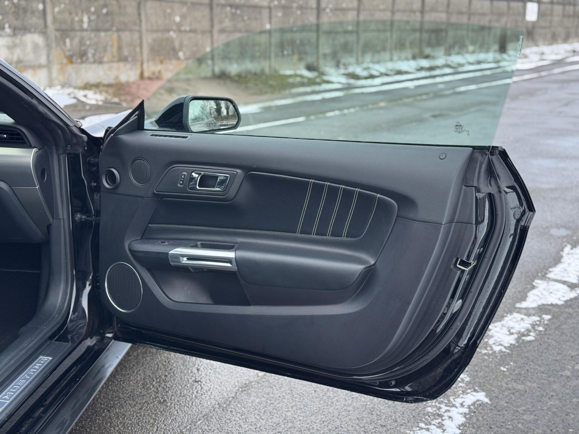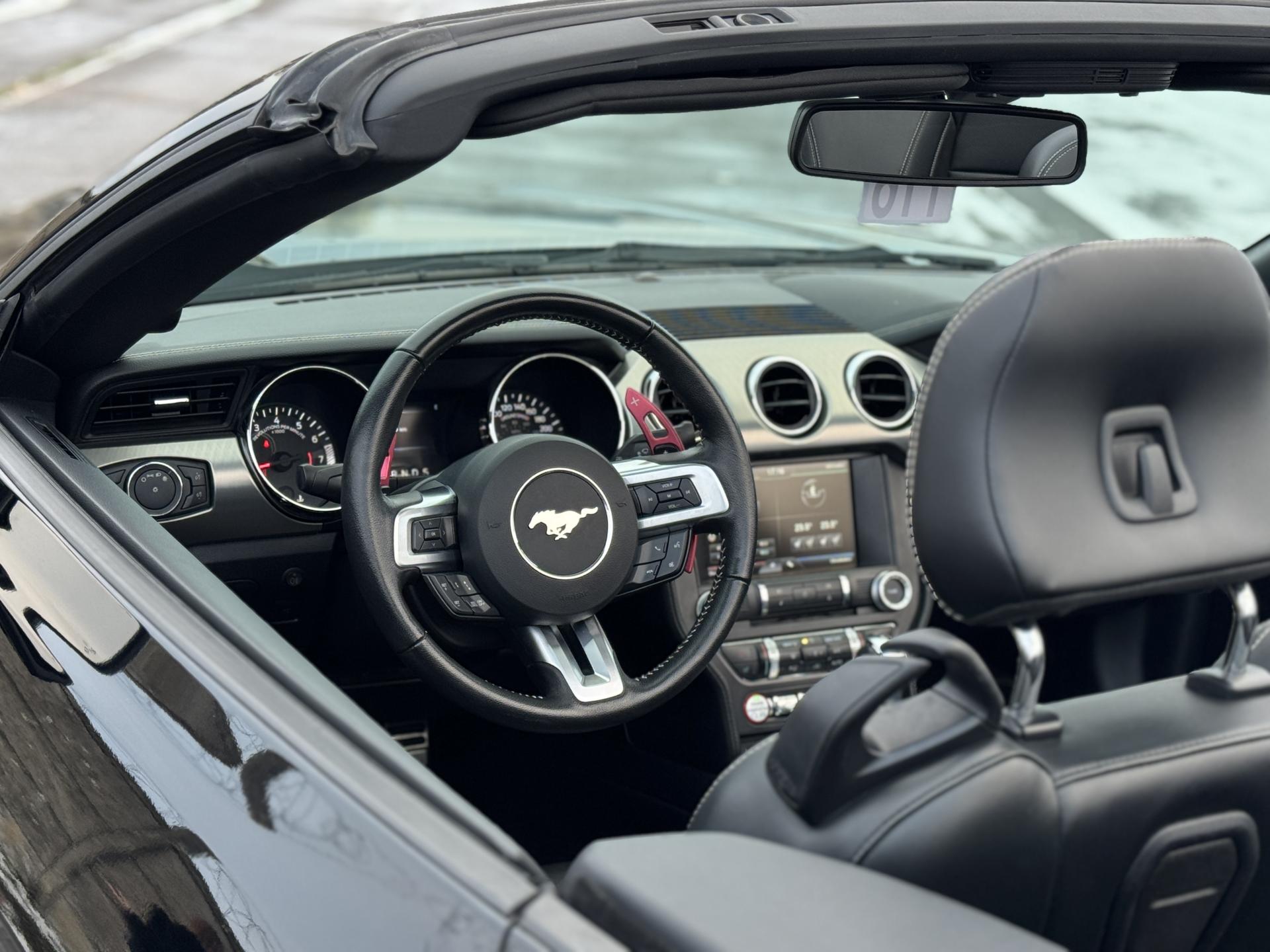 Le Pony Package met en valeur le design avec une calandre spécifique ornée de l’emblème Mustang et des jantes dédiées qui renforcent son allure sportive. L’équipement comprend également la climatisation automatique bi-zone, l’éclairage d’ambiance, la caméra de recul, l’aide au stationnement arrière, le régulateur de vitesse adaptatif, les phares bi-xénon, la peinture Noir Shadow et la double sortie d’échappement chromée qui affirme son caractère.