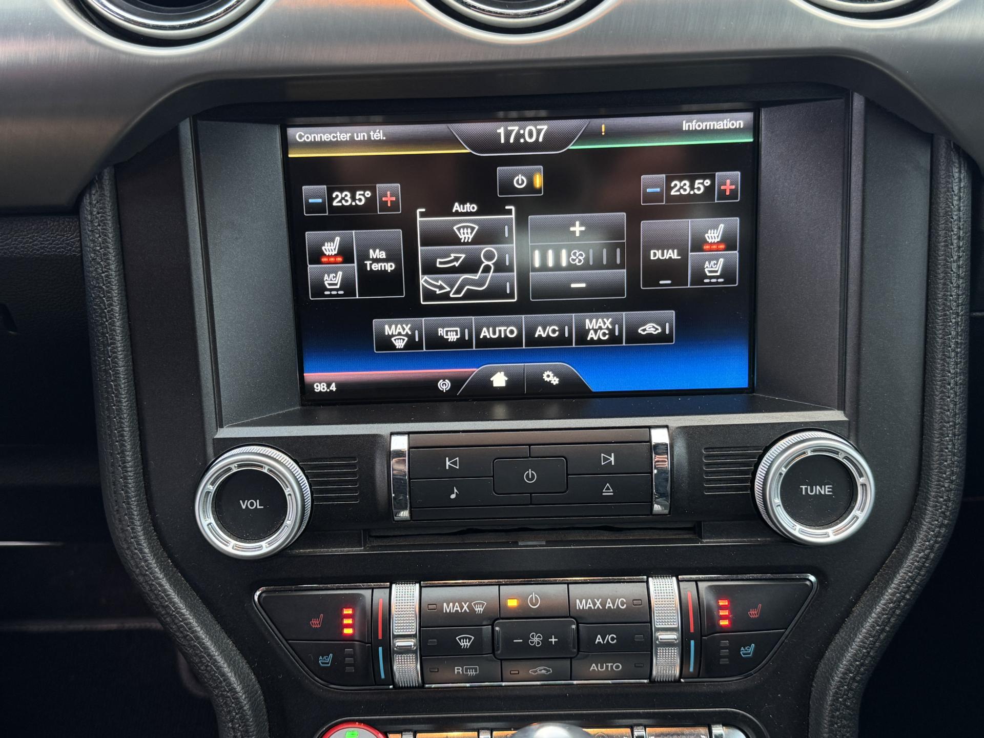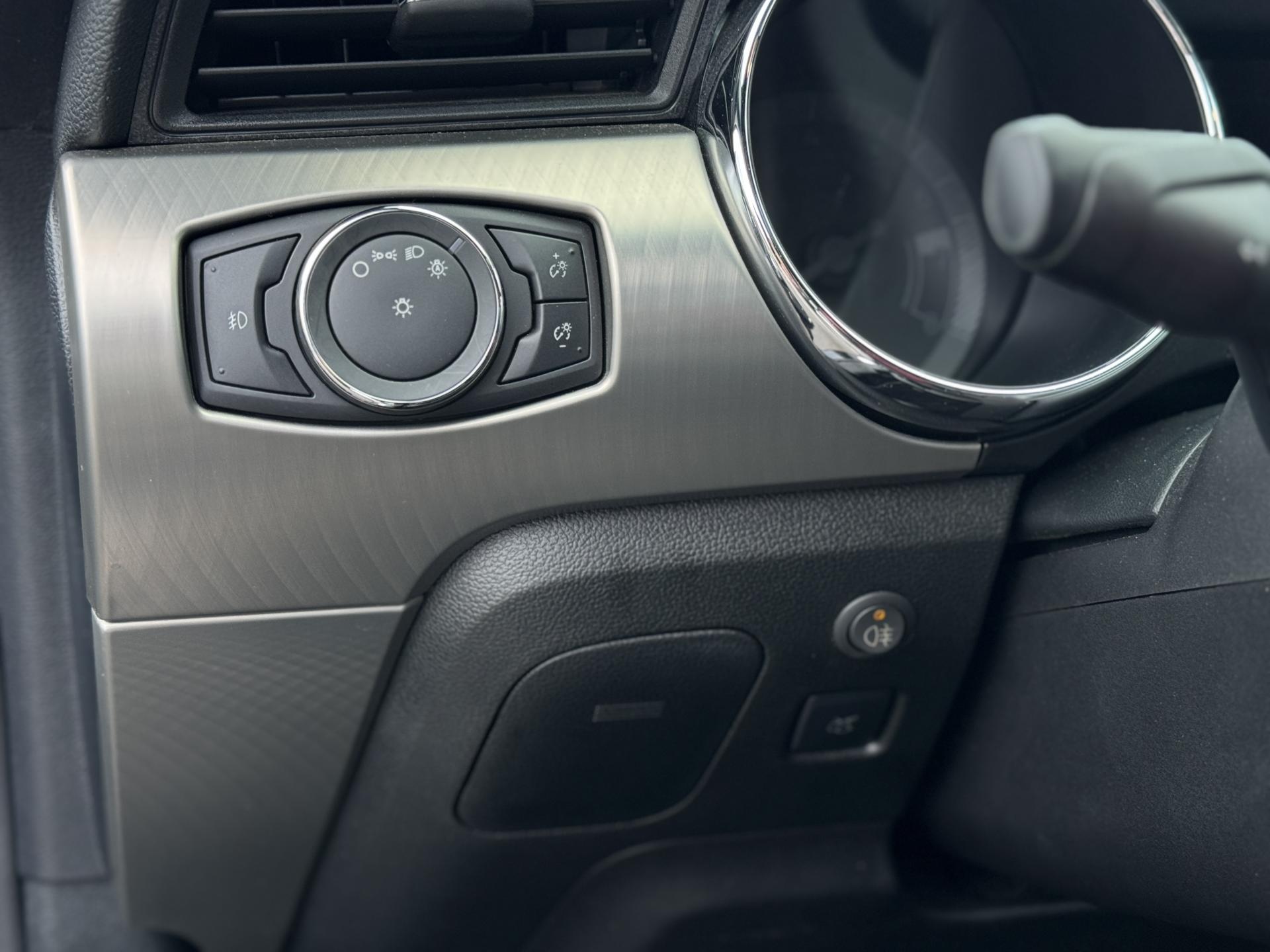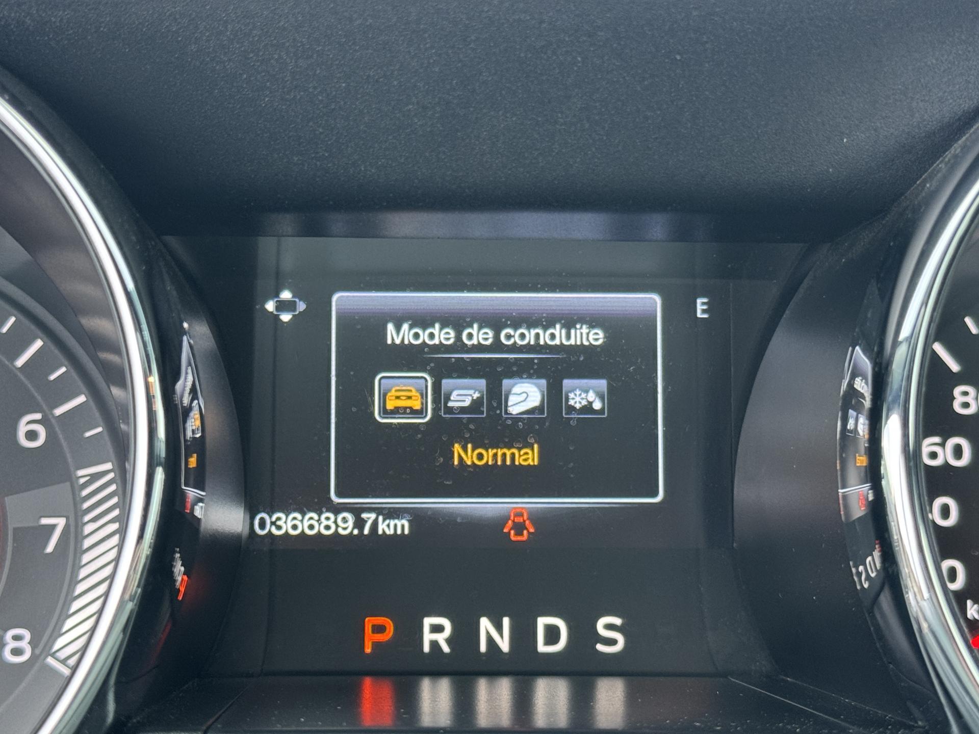 L’habitacle propose une ambiance sportive et soignée avec une sellerie cuir noir, des sièges avant chauffants et climatisés, un volant cuir réglable avec palettes et un pédalier en aluminium, pensés pour le plaisir de conduite. Le système Ford SYNC 3 avec GPS et Bluetooth assure une utilisation simple au quotidien.