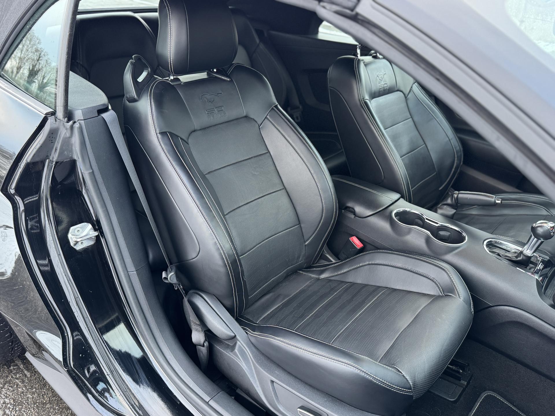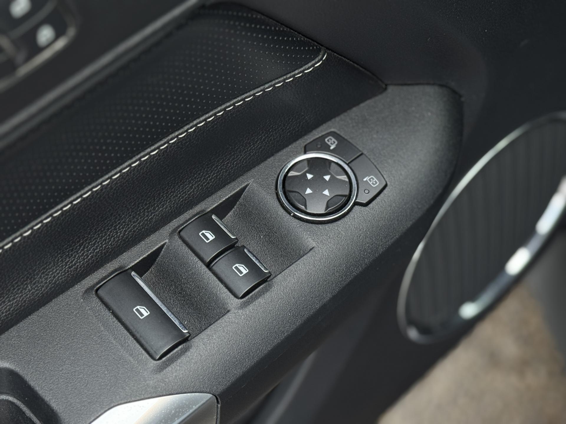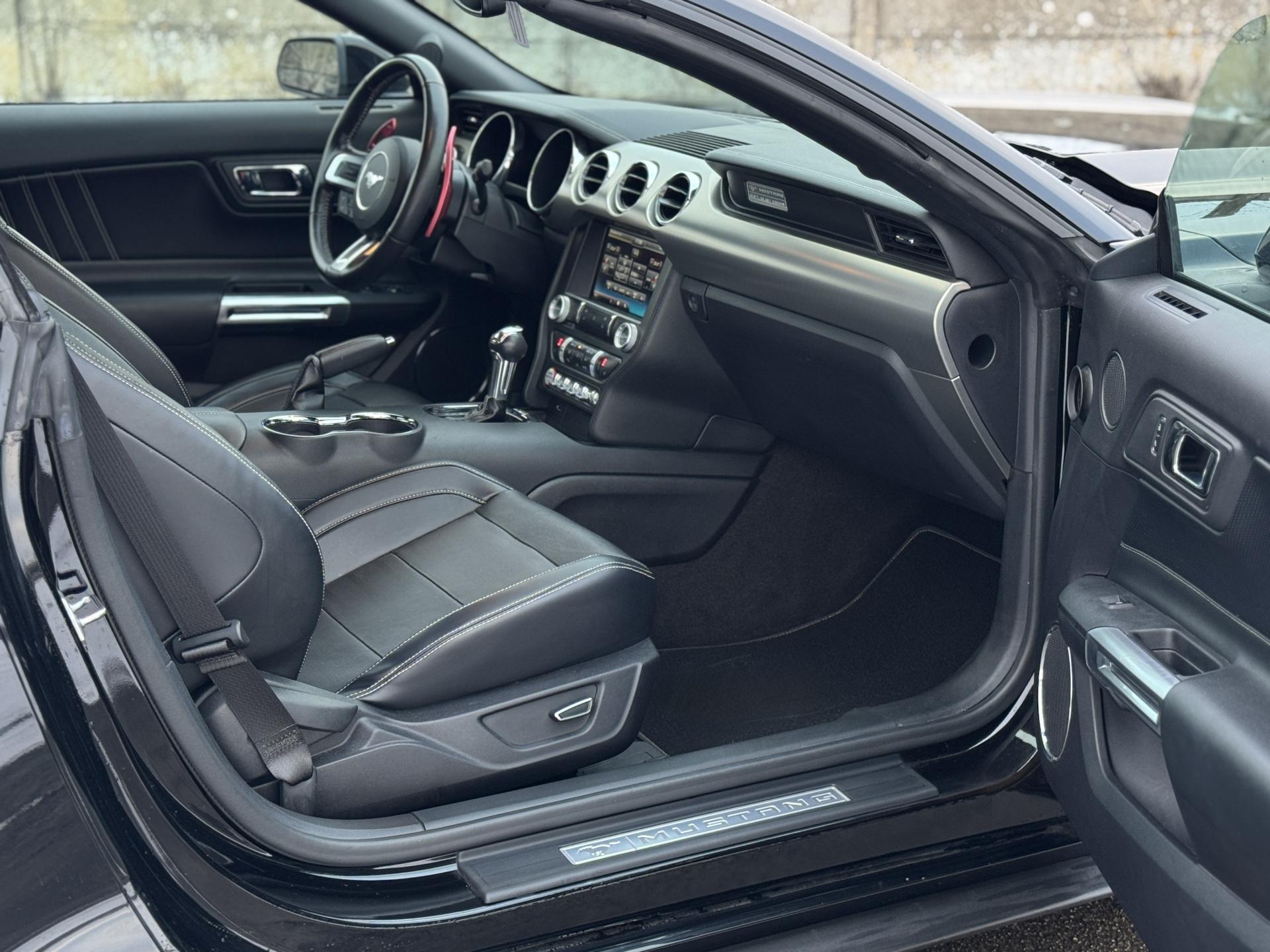 L’habitacle propose une ambiance sportive et soignée avec une sellerie cuir noir, des sièges avant chauffants et climatisés, un volant cuir réglable avec palettes et un pédalier en aluminium, pensés pour le plaisir de conduite. Le système Ford SYNC 3 avec GPS et Bluetooth assure une utilisation simple au quotidien.