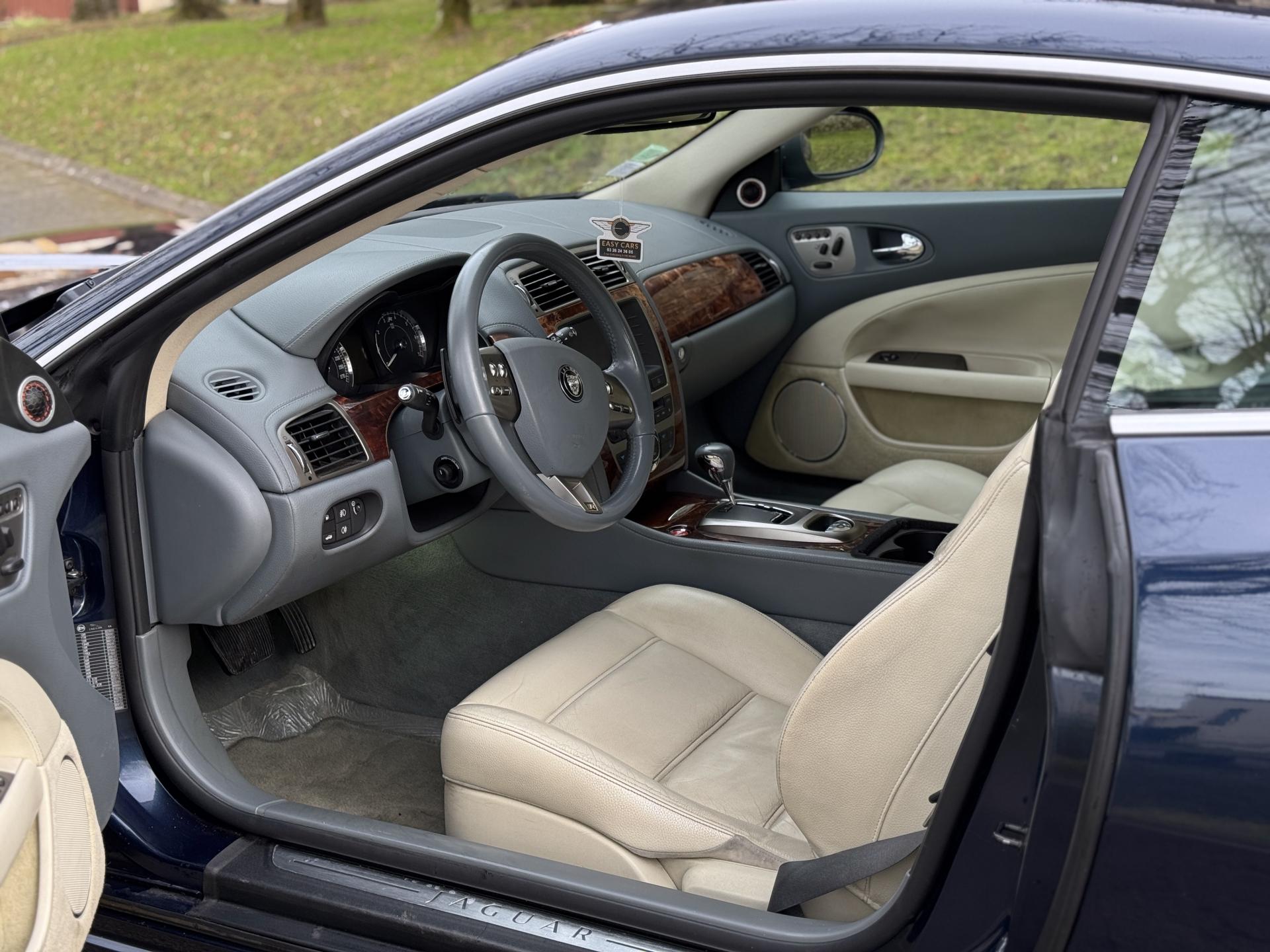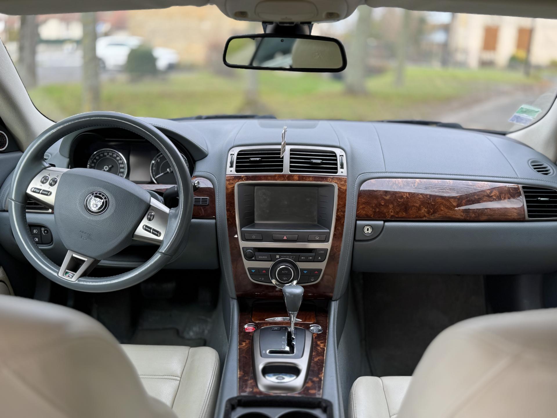 À l’intérieur, Jaguar dévoile tout son savoir-faire : sièges sport R en cuir chauffants et réglables électriquement, boiseries en peuplier et touches d’aluminium, pour une atmosphère à la fois luxueuse et sportive.