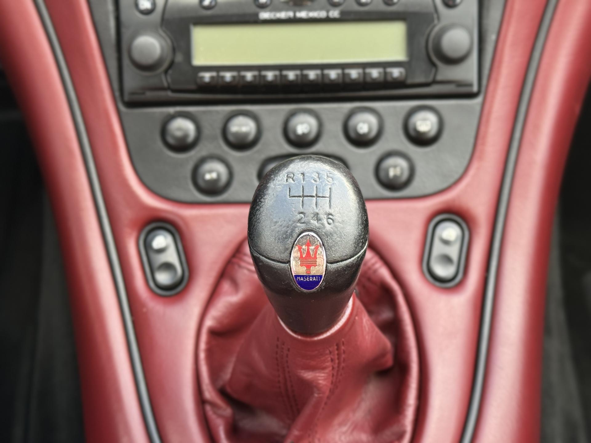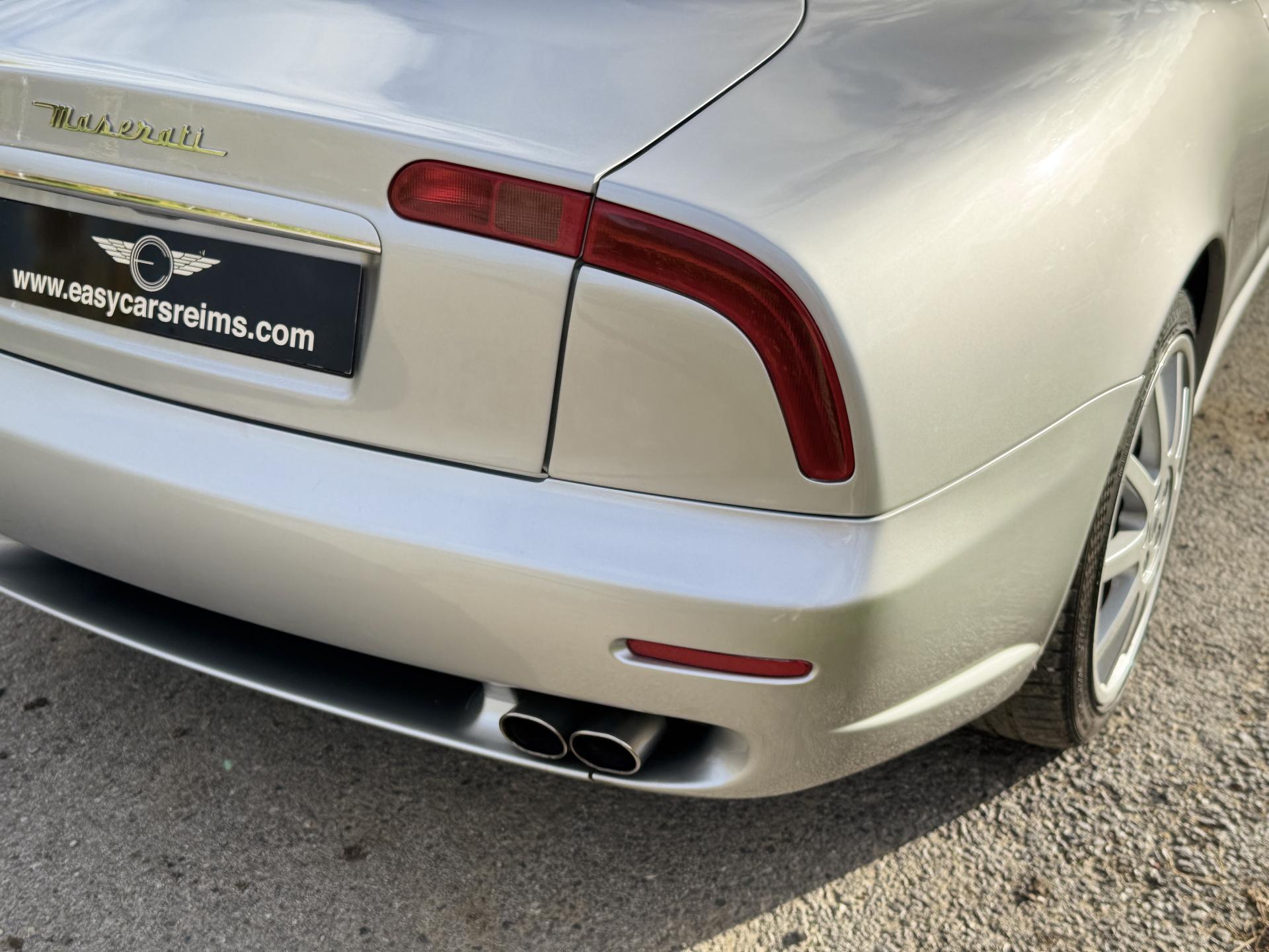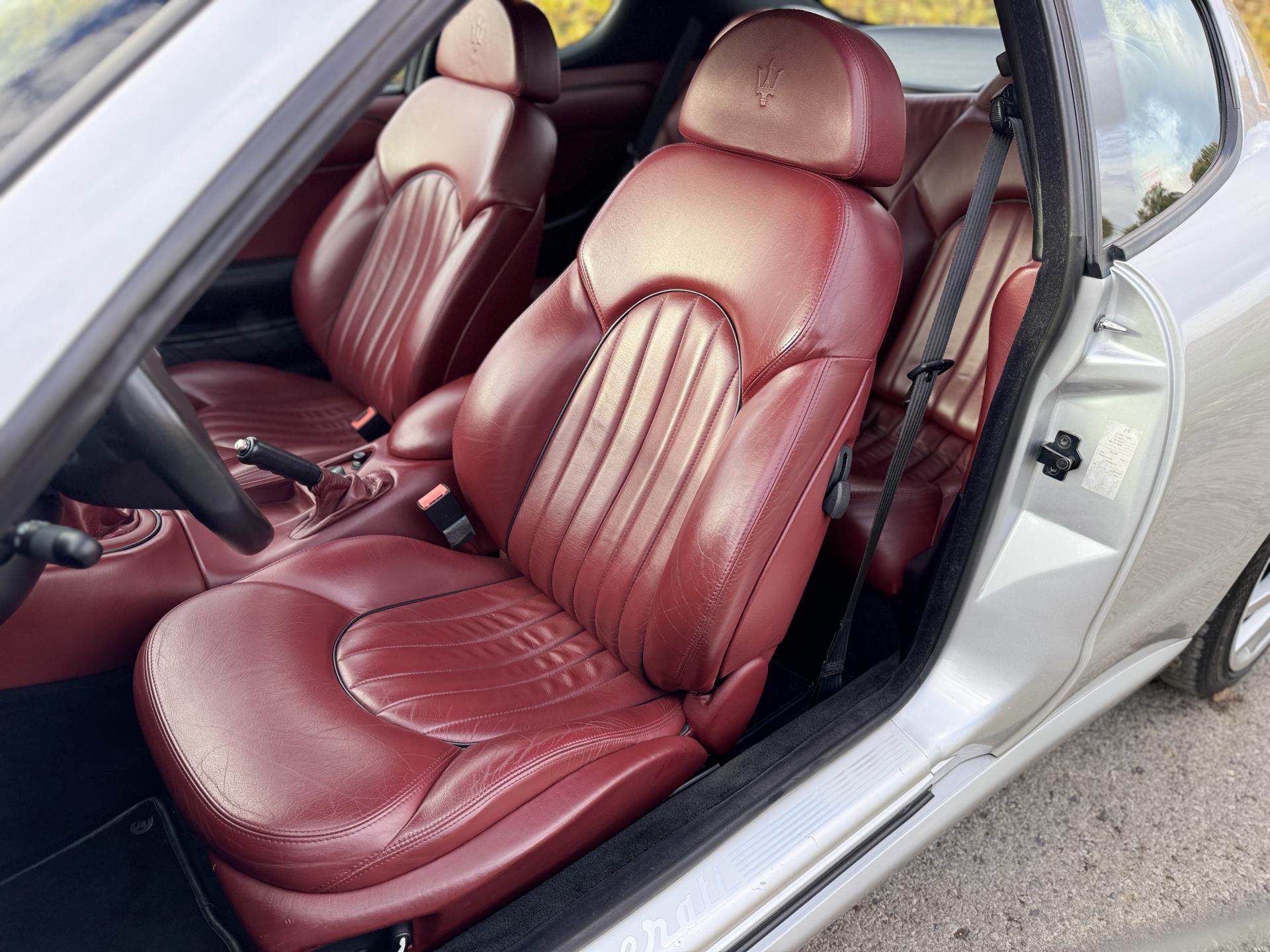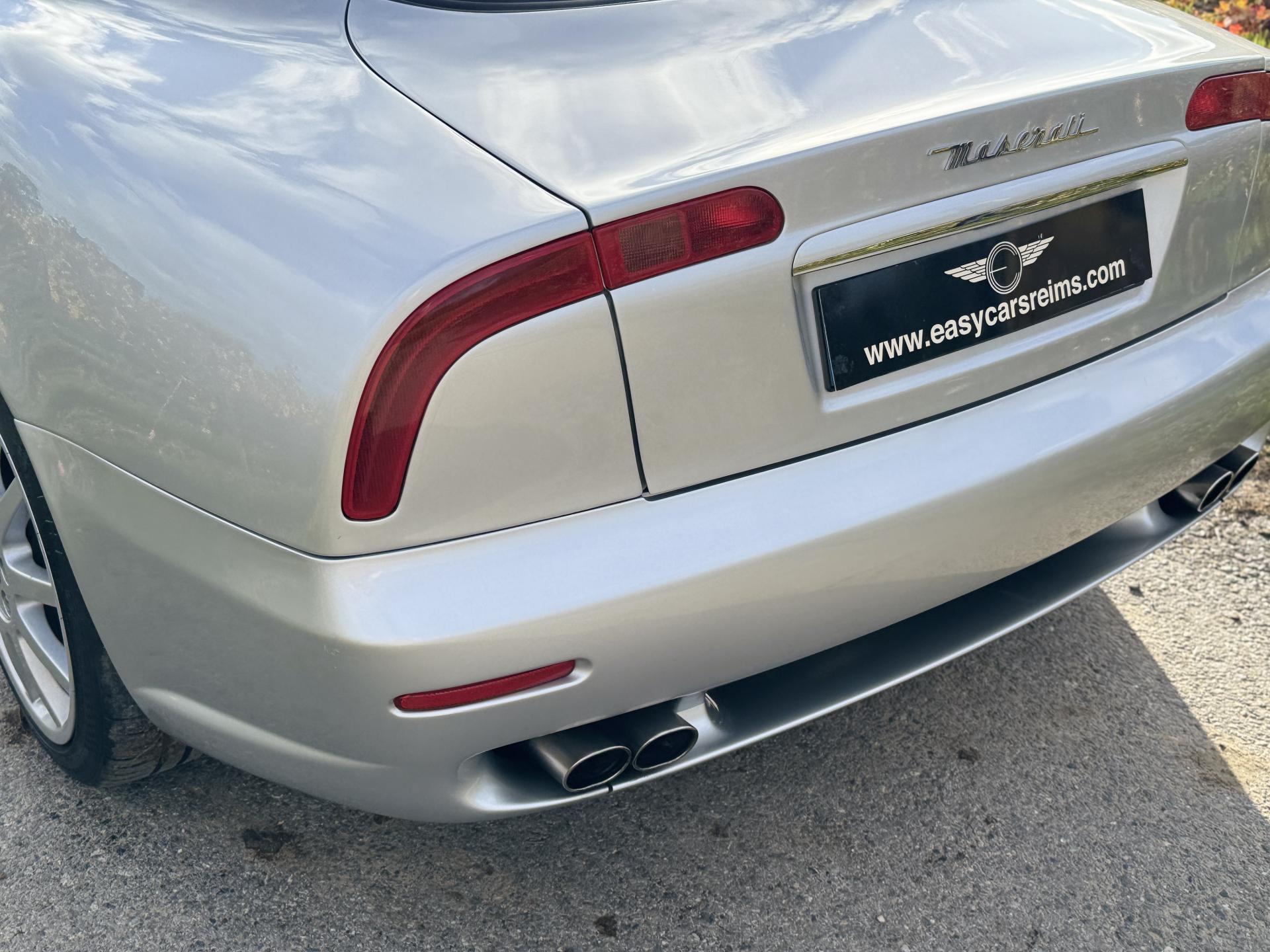 L’habitacle, typiquement Maserati, marie cuir souple, horloge centrale et détails raffinés. Les sièges électriques, la direction assistée variable, la fermeture centralisée, les vitres et rétroviseurs électriques, ainsi que les jantes alliage participent à une expérience aussi élégante que confortable.