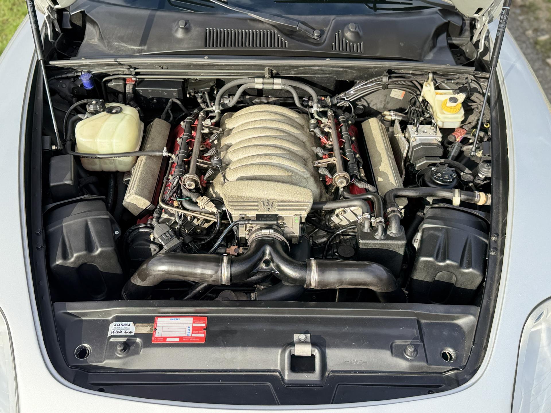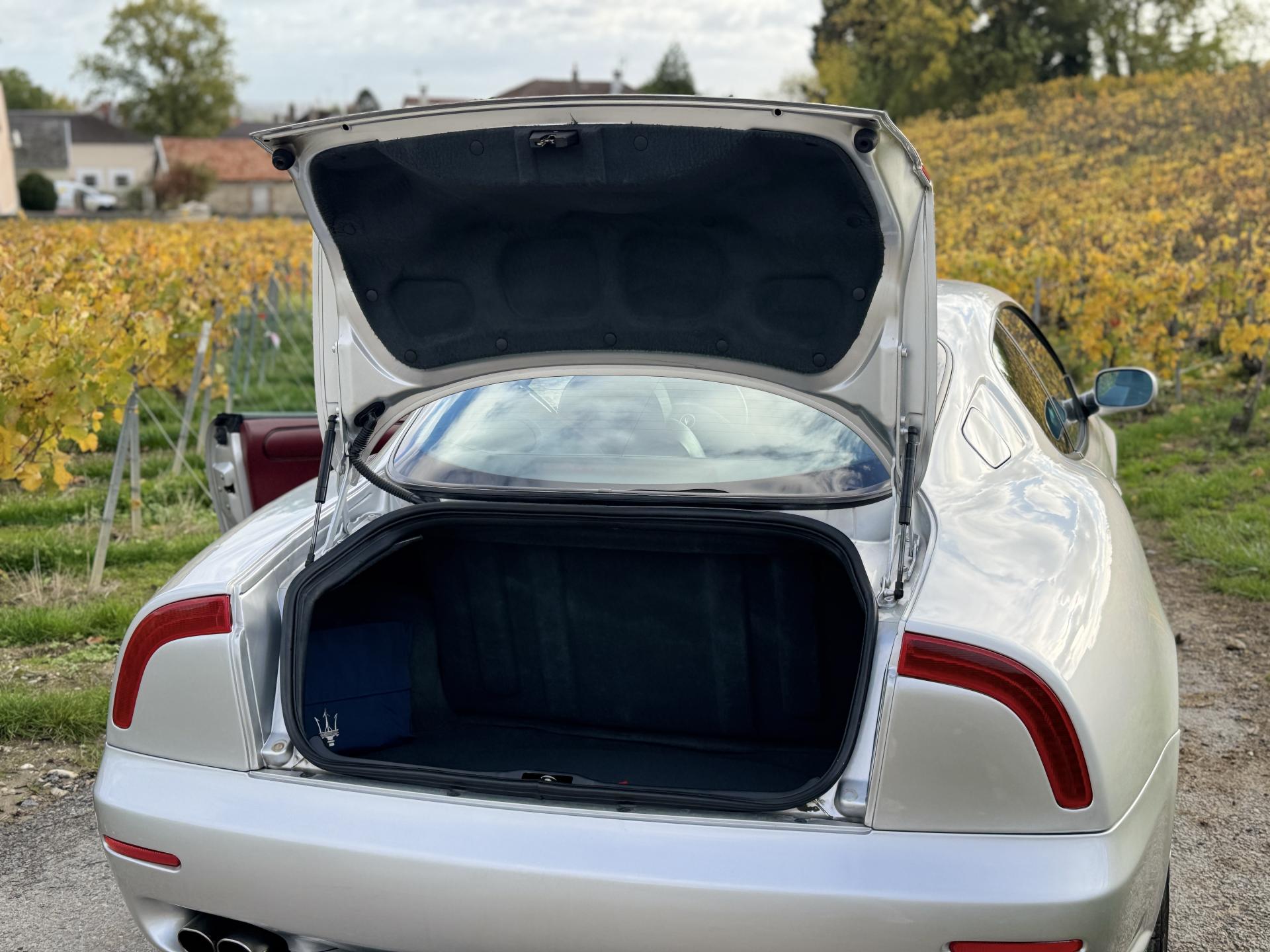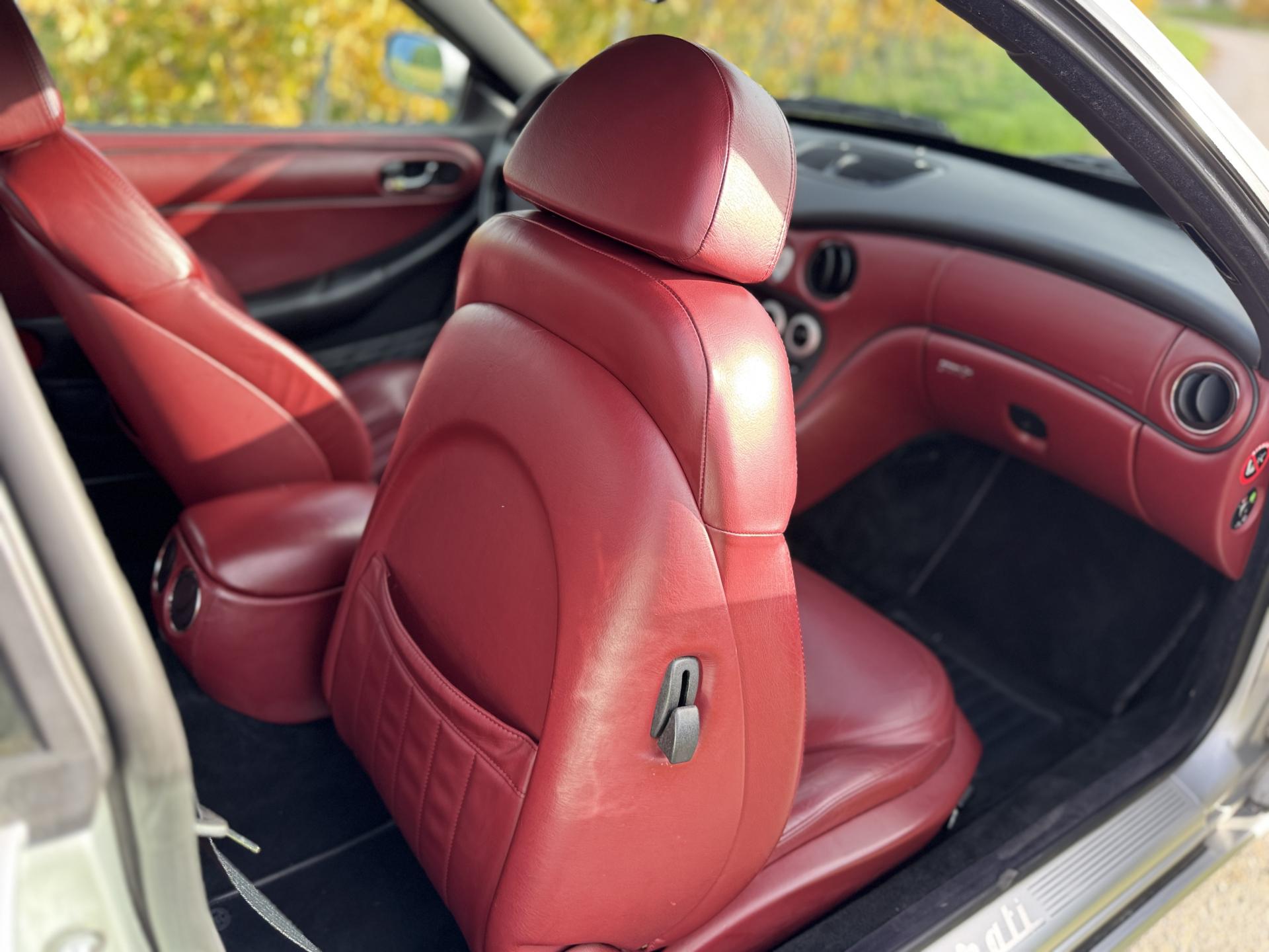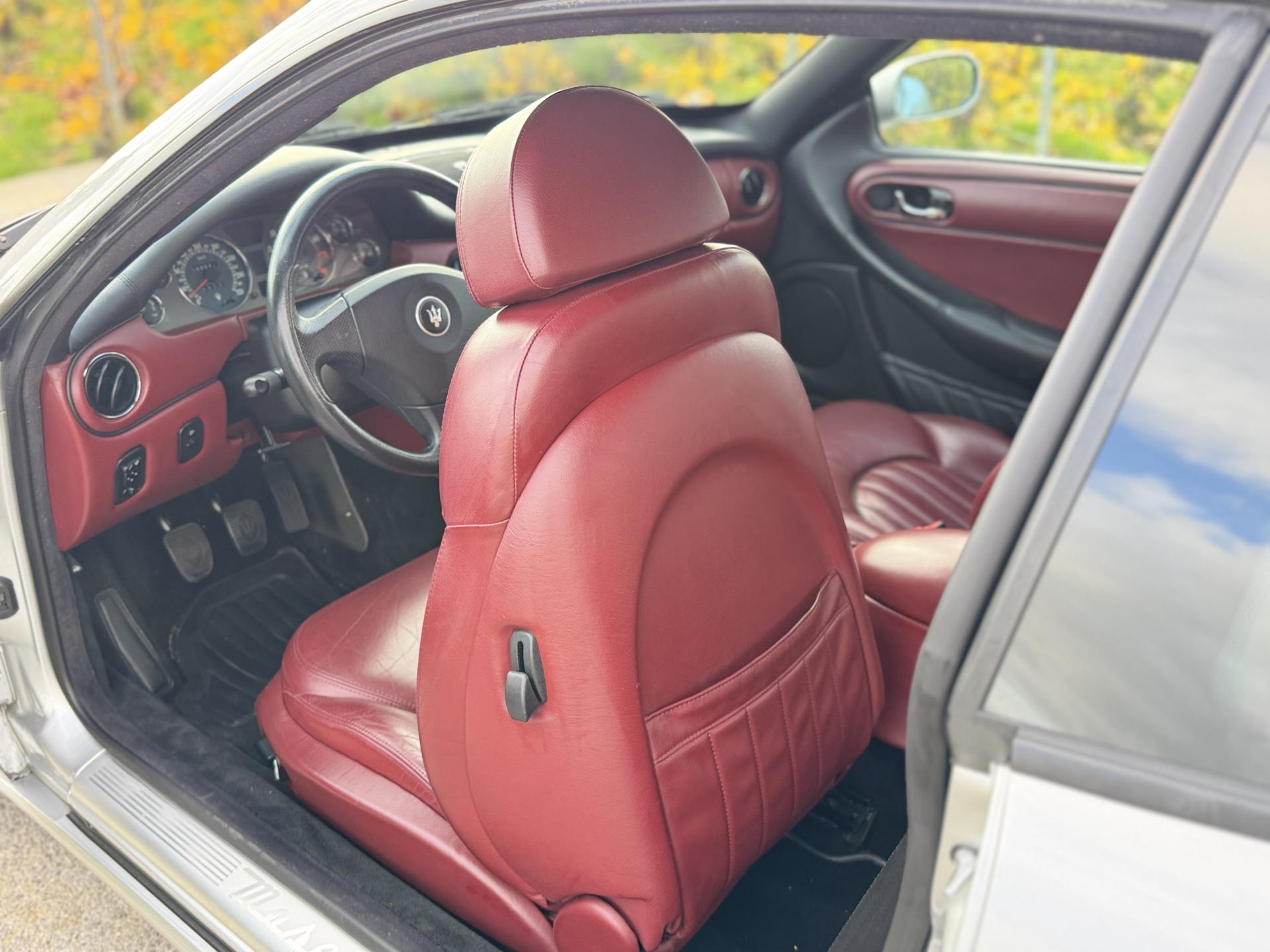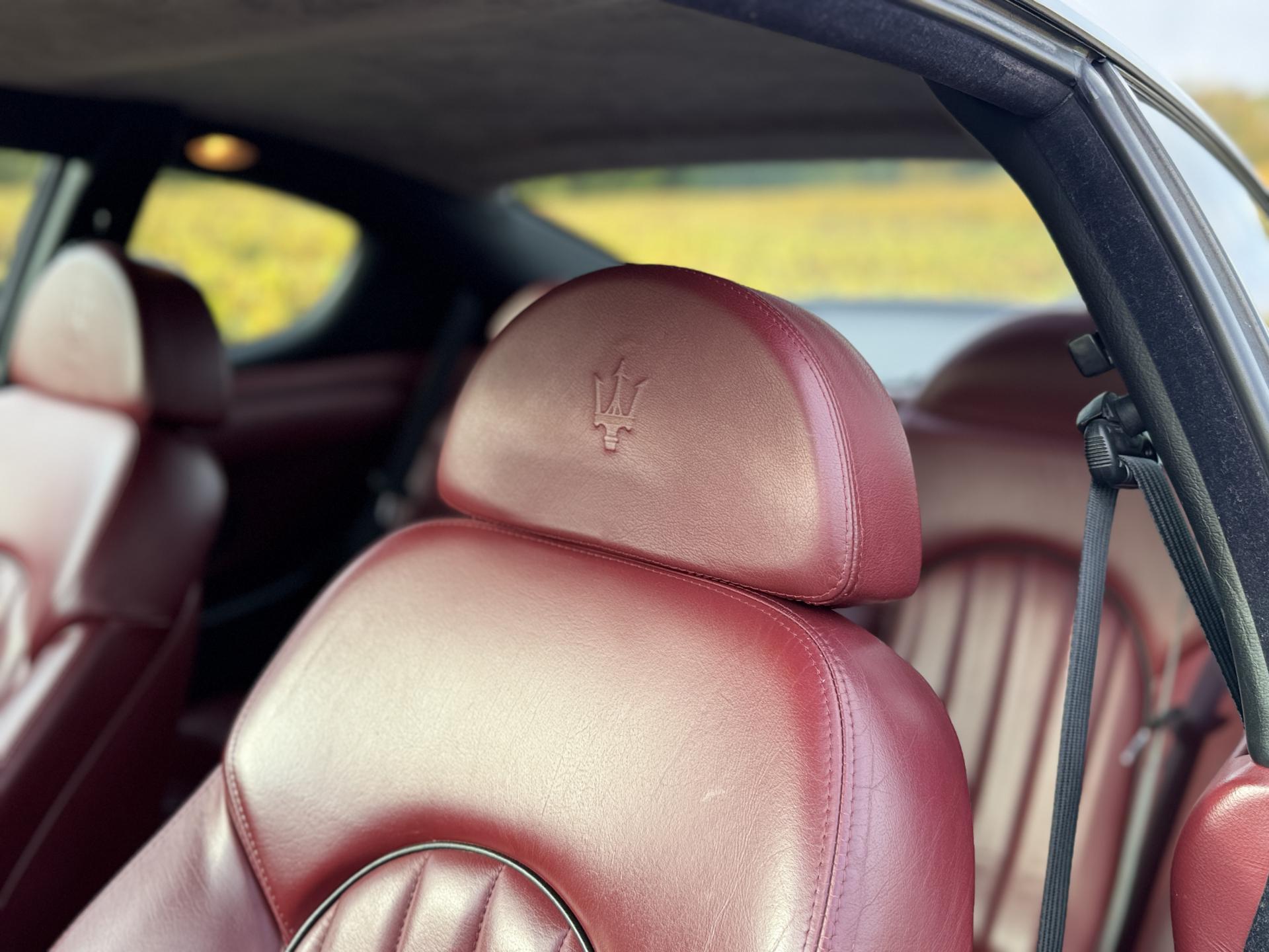 L’habitacle, typiquement Maserati, marie cuir souple, horloge centrale et détails raffinés. Les sièges électriques, la direction assistée variable, la fermeture centralisée, les vitres et rétroviseurs électriques, ainsi que les jantes alliage participent à une expérience aussi élégante que confortable.