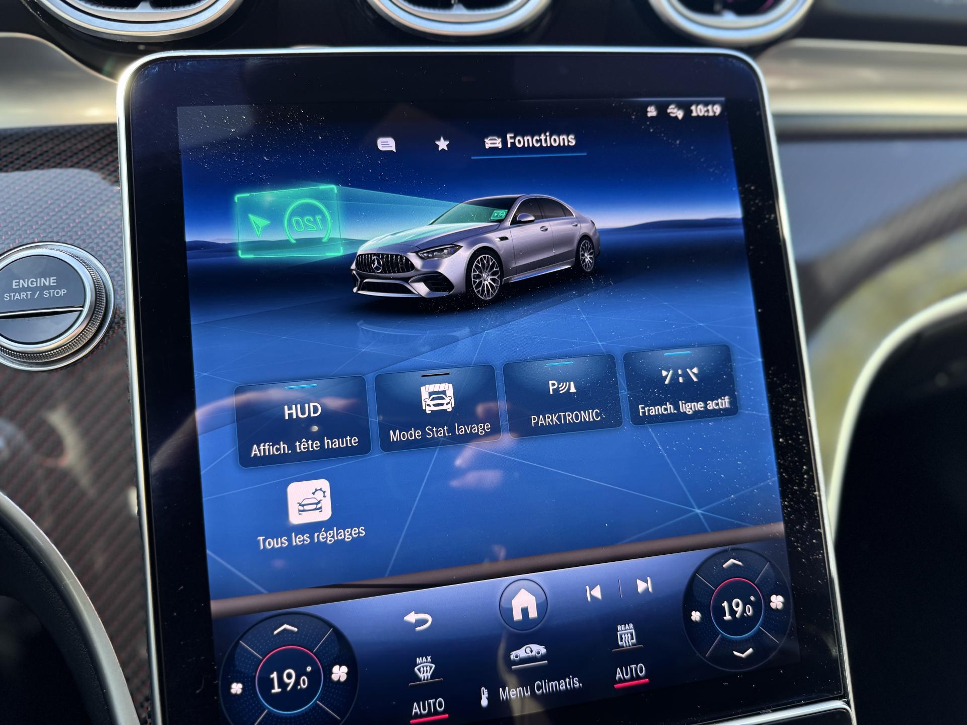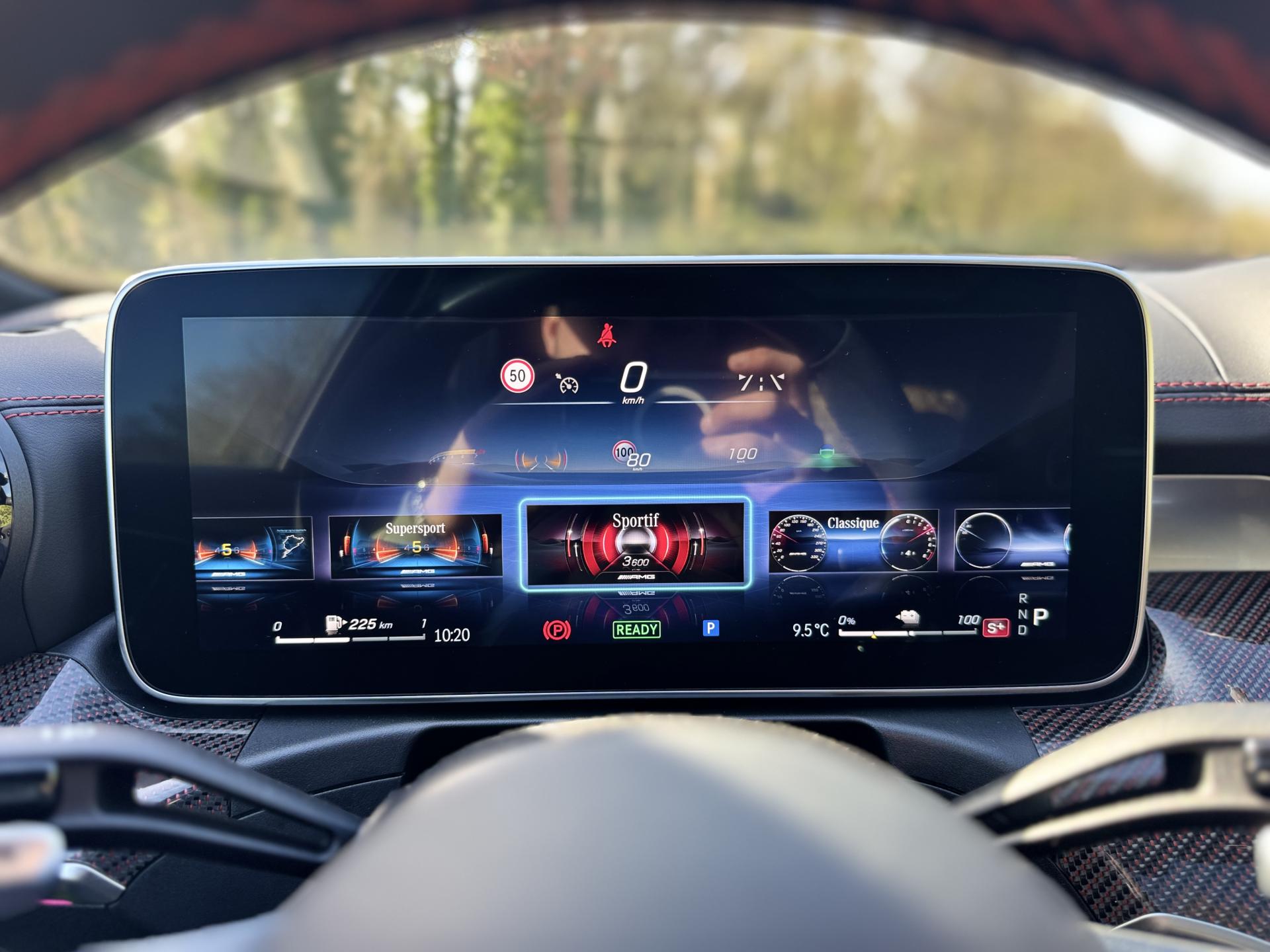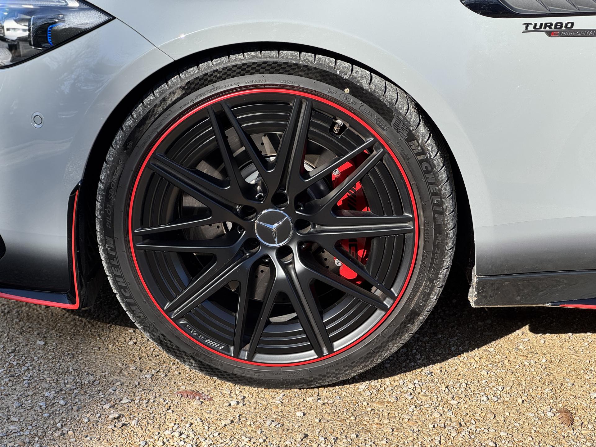 La dotation est exceptionnelle : Pack F1 Edition AMG, Pack Carbone extérieur, Pack d'assistance à la conduite Plus, système Burmester 3D Surround, roues arrière directrices, pédalier sport AMG, caméras panoramiques, turbocompresseur électrique et Digital Light avec fonction Projection.