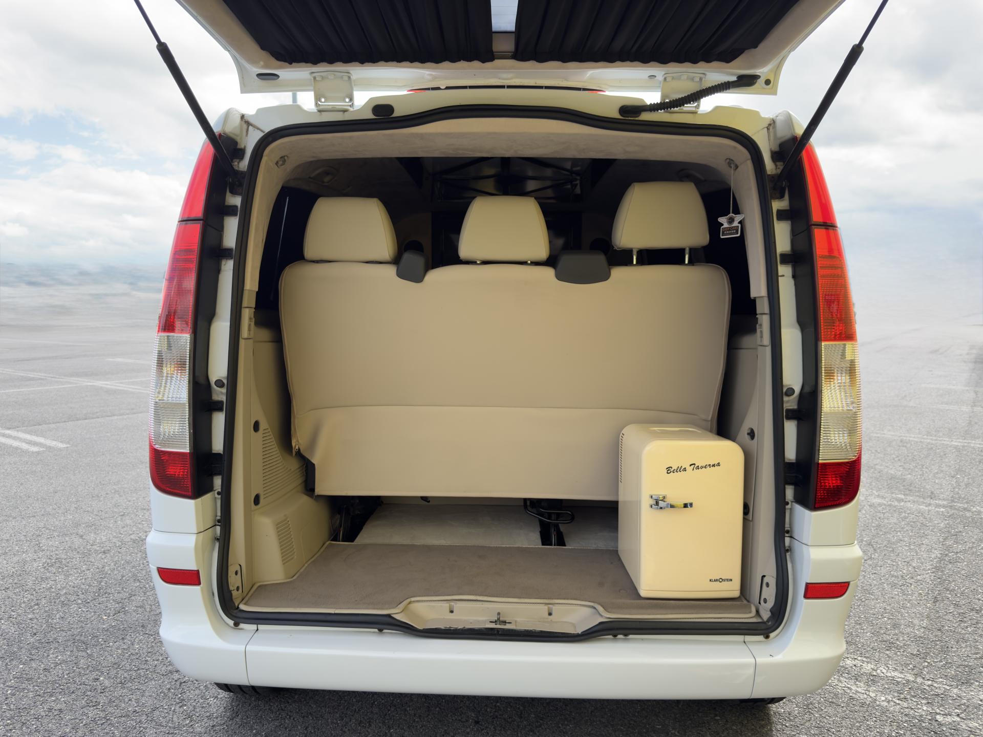 L’habitacle dévoile une atmosphère unique où le luxe se vit à chaque détail. Sellerie cuir d’exception, ciel de toit étoilé pour une ambiance raffinée, éclairages subtils créant une scénographie élégante, télévision intégrée pour le divertissement à bord. La cabine avant et arrière ont été repensées avec soin, transformant ce Vito en un véritable salon mobile digne des plus hauts standards.