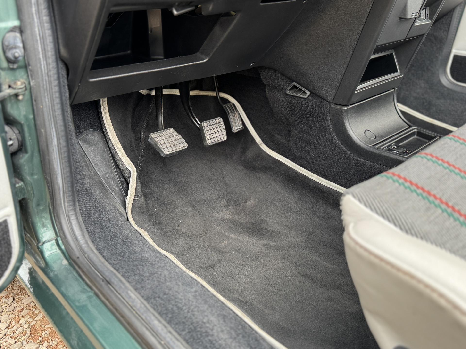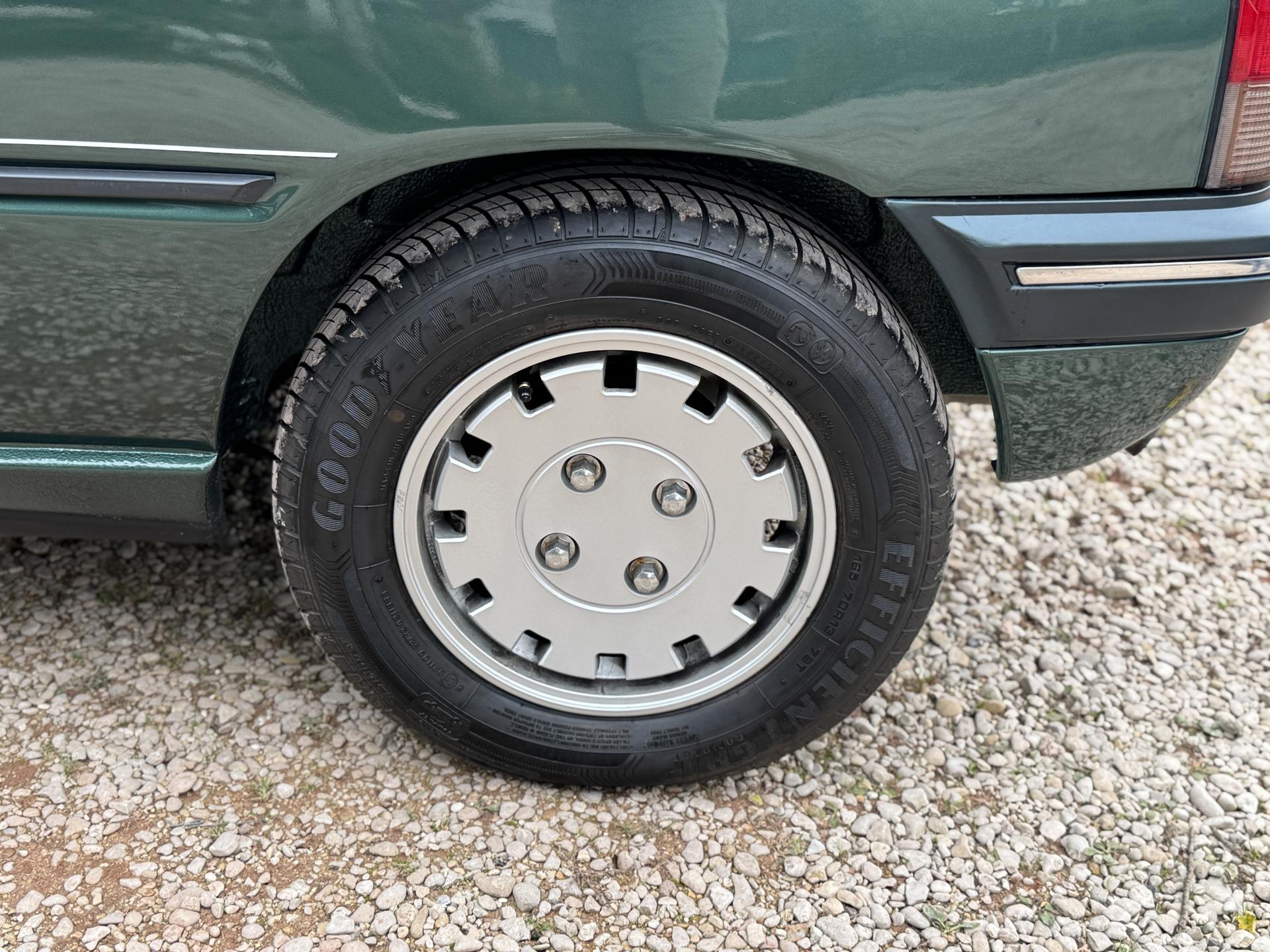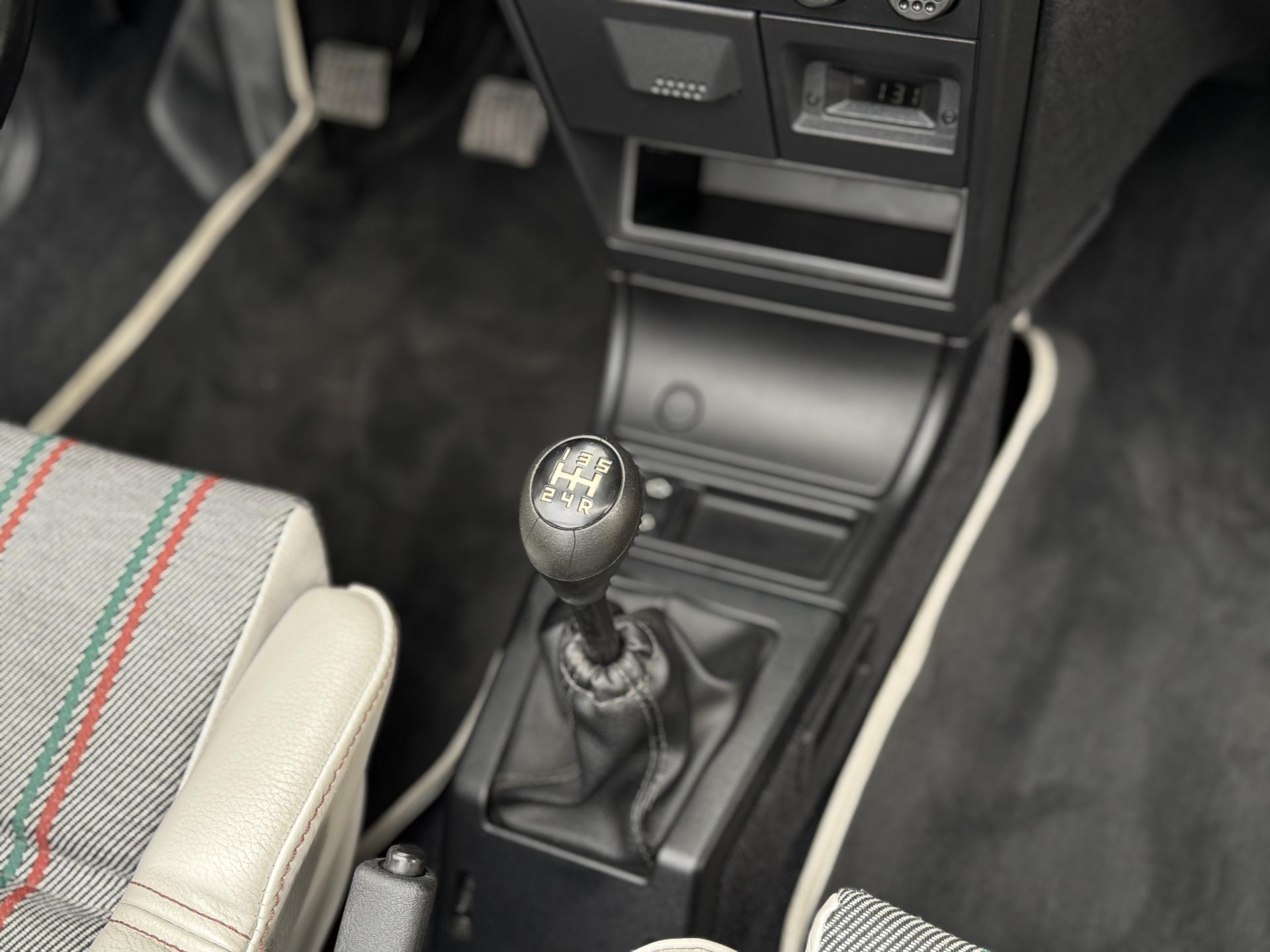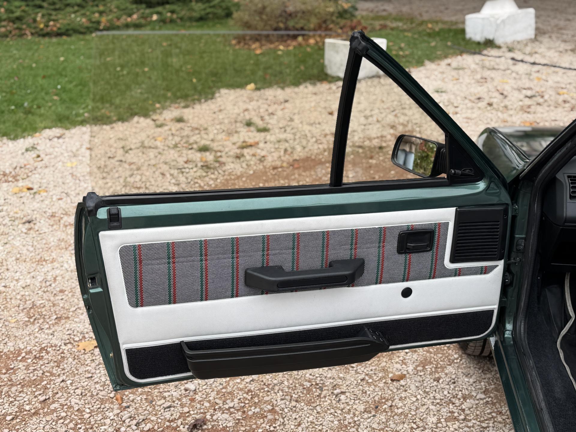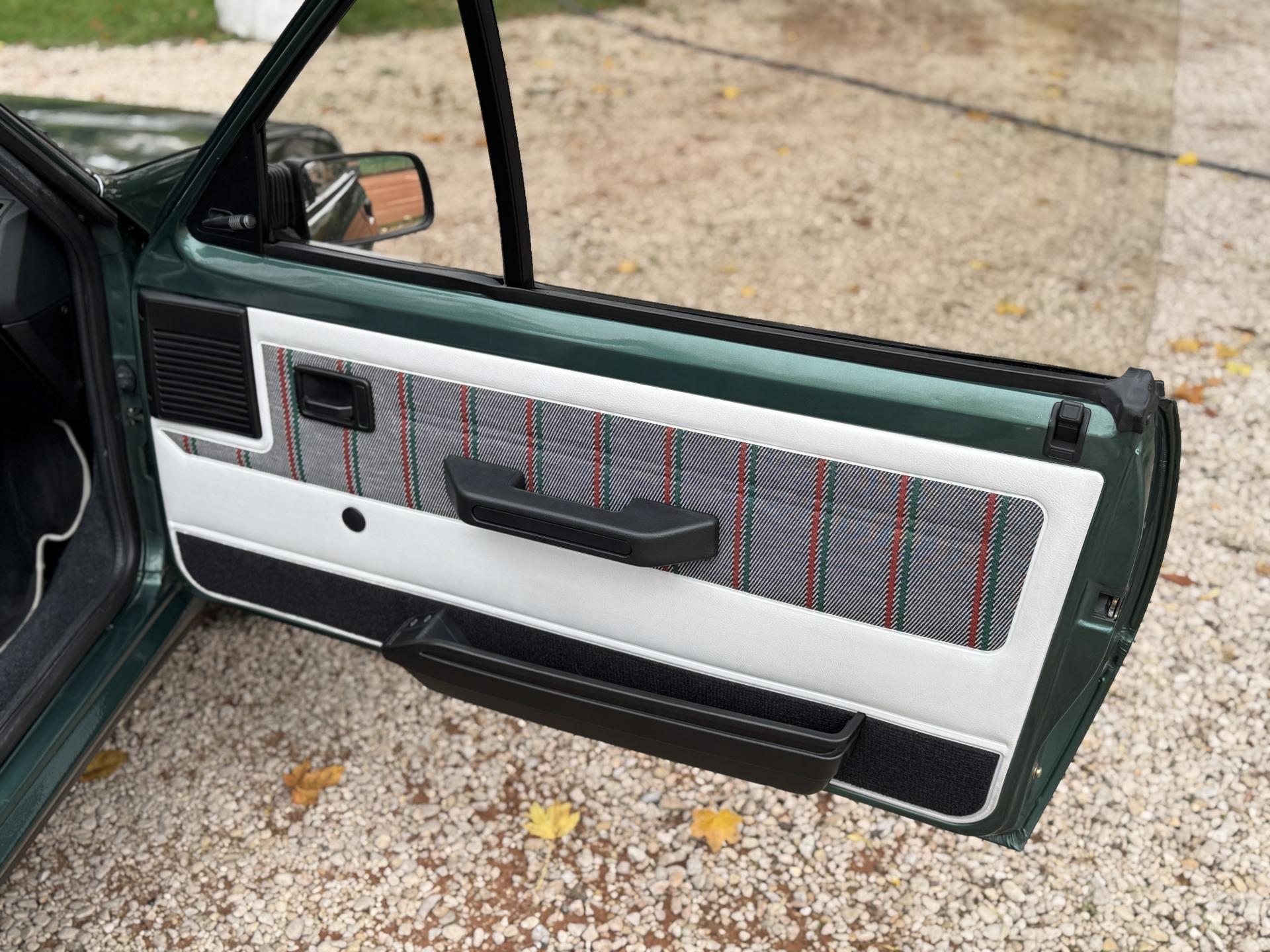 L’intérieur, parfaitement conservé, met en valeur le soin apporté à cette série : sièges et appuis-têtes en cuir blanc, ceintures rouge brique, volant sport gainé de cuir, surtapis anthracite gansés de blanc et logos Roland Garros sur le volant et la carrosserie. Les jantes alliage 13 pouces et les jupes couleur carrosserie complètent son allure raffinée et dynamique.