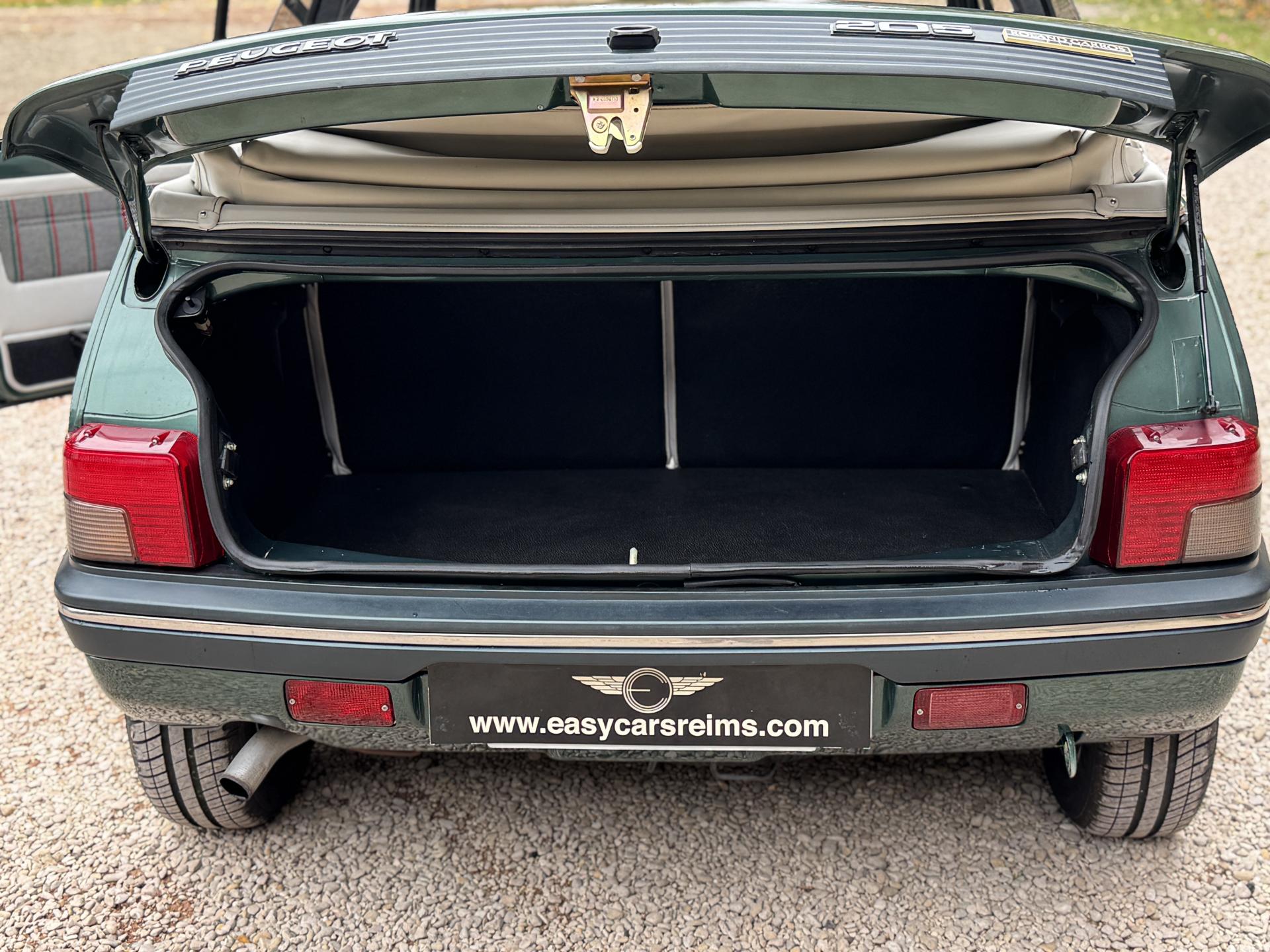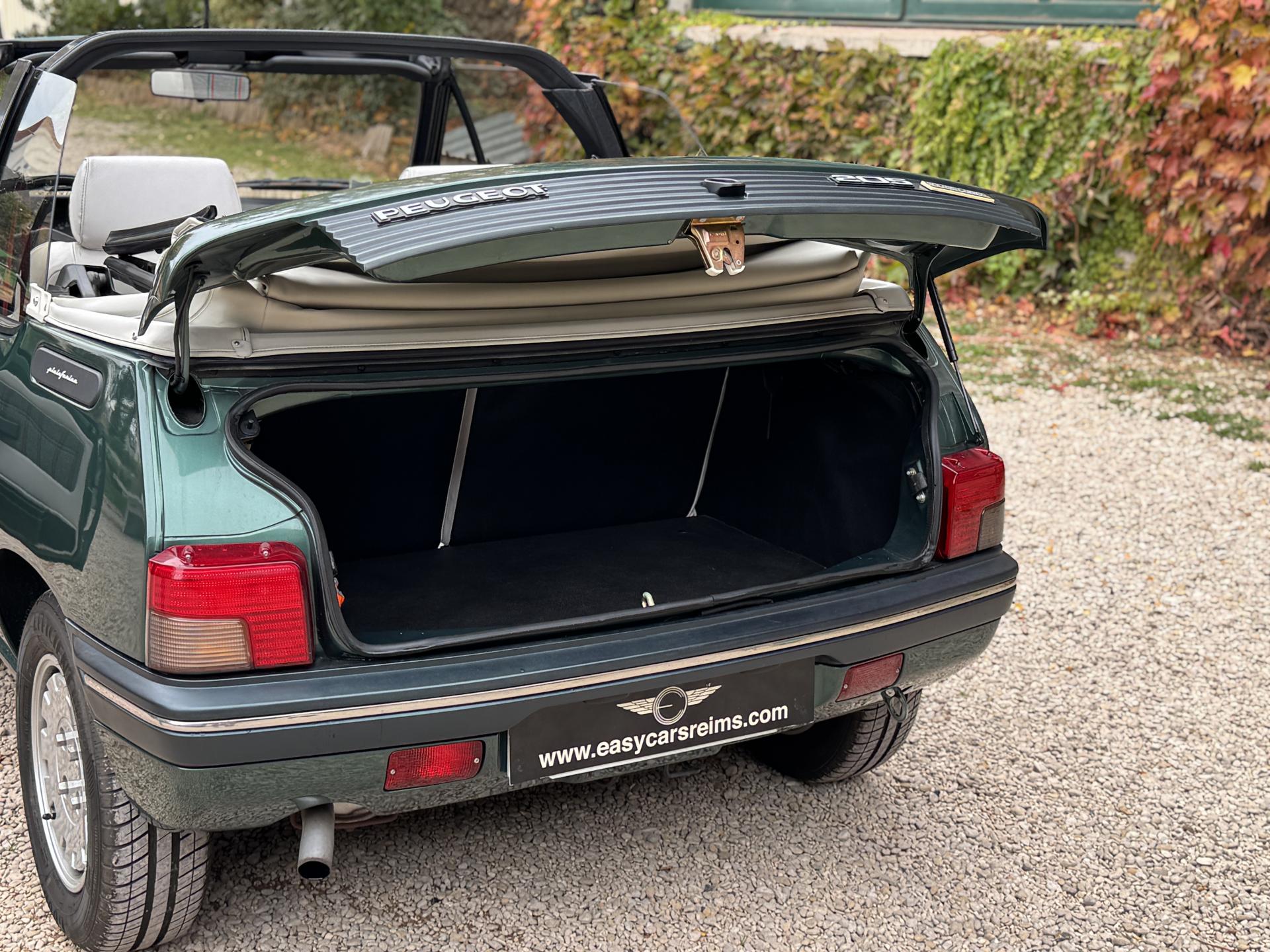L’exemplaire présenté ici se distingue par son état exceptionnel et son faible kilométrage : seulement 14 500 km d’origine pour deux propriétaires depuis sa mise en circulation. Le moteur offre un agrément de conduite remarquable typique de la 205.