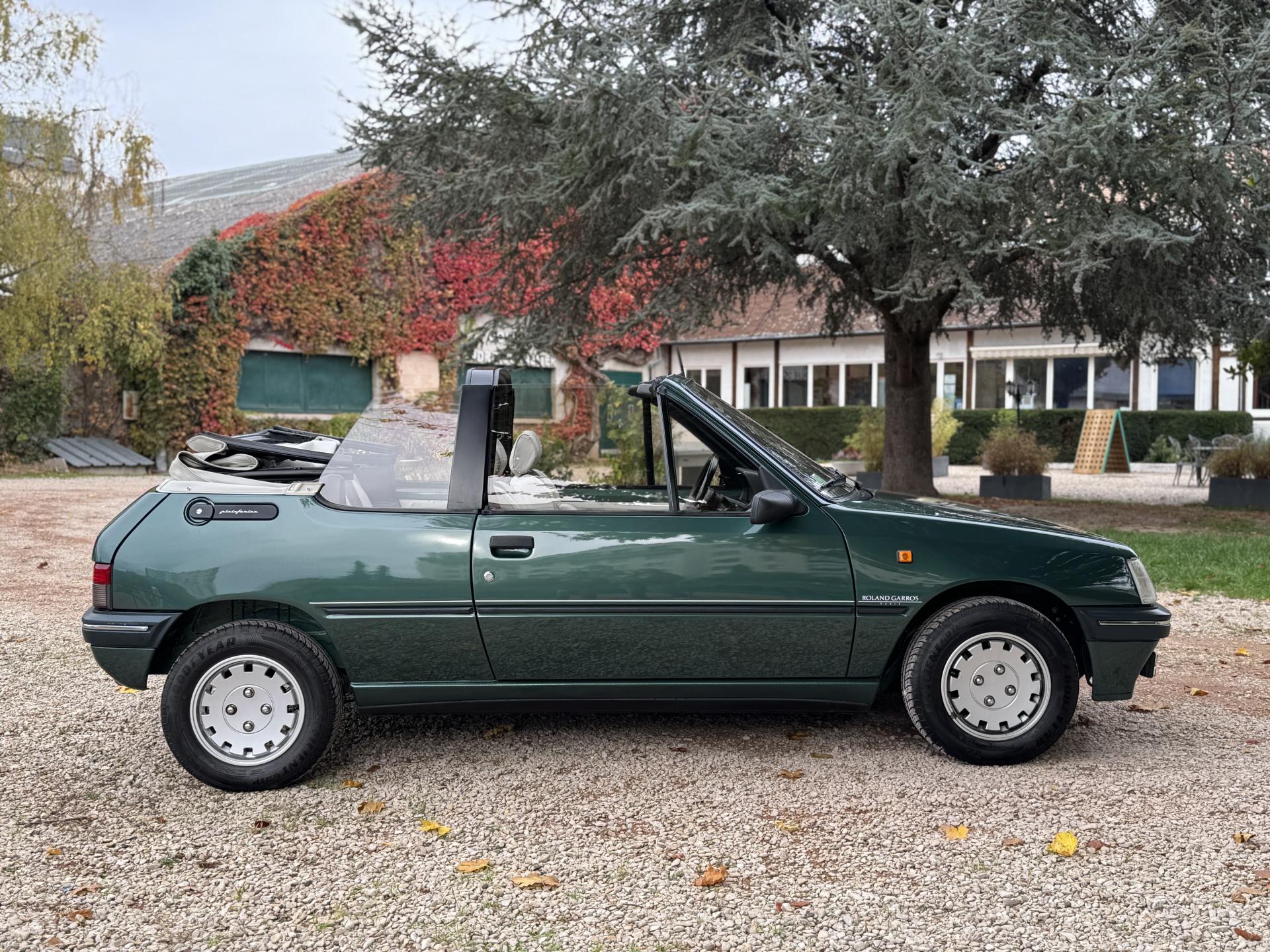 Symbole du raffinement à la française, la Peugeot 205 Cabriolet Roland Garros incarne la rencontre entre sportivité et élégance. Produite en série limitée à environ 1 000 exemplaires pour cette Phase 2, elle rend hommage au prestigieux tournoi parisien à travers sa teinte vert foncé métallisée, sa capote blanche électrique et sa sellerie en cuir blanc et tissu spécifique Roland Garros.