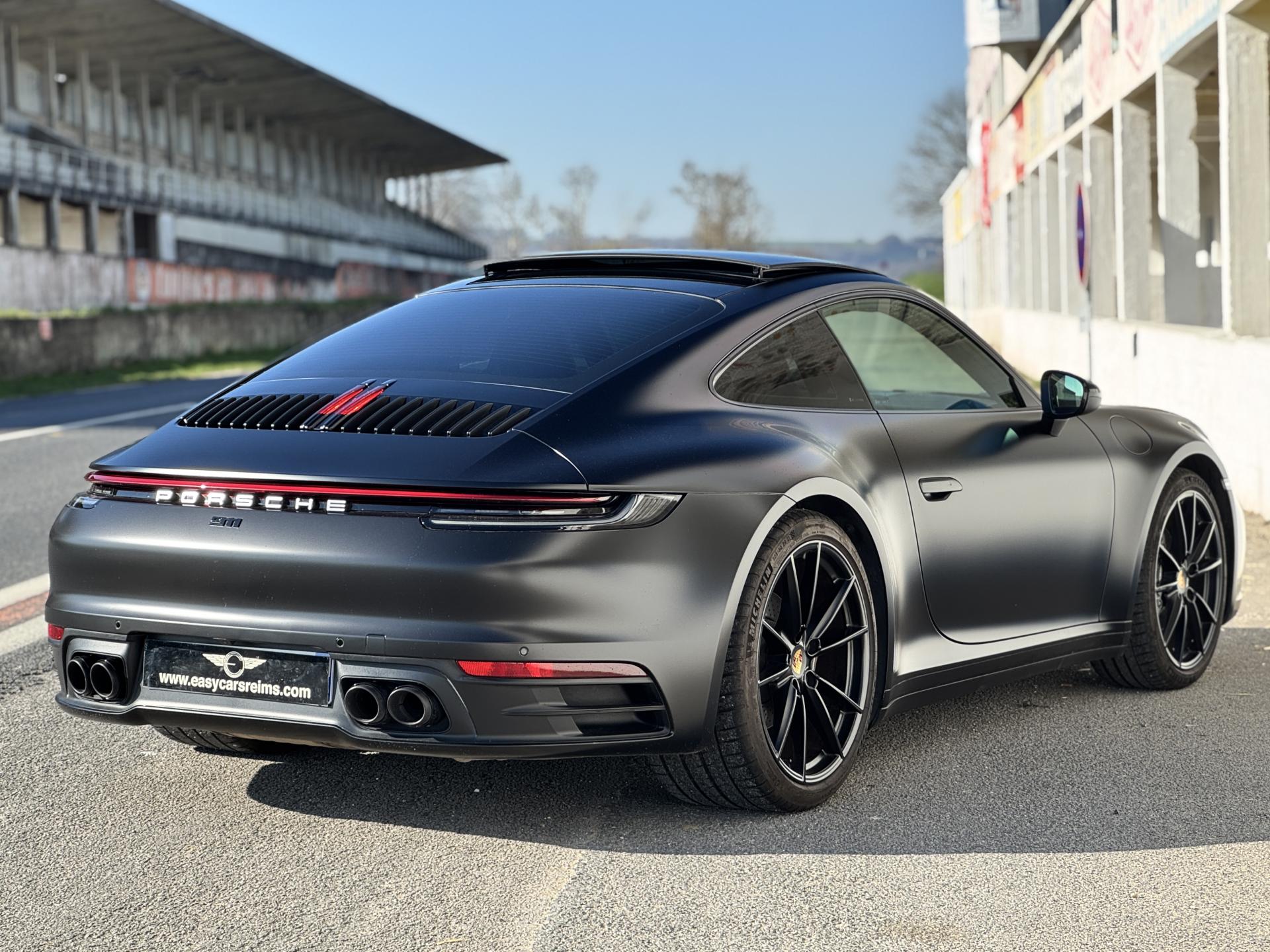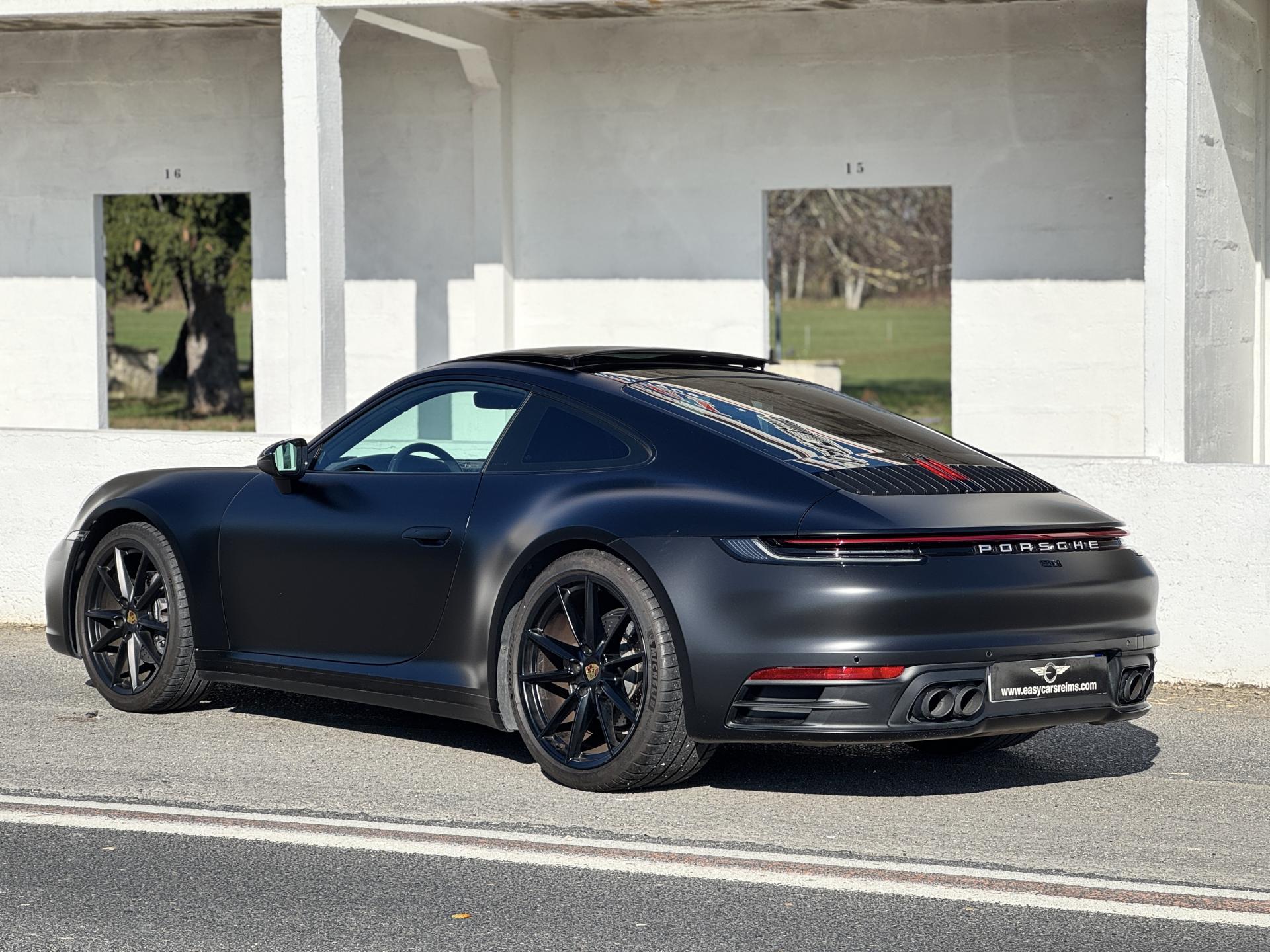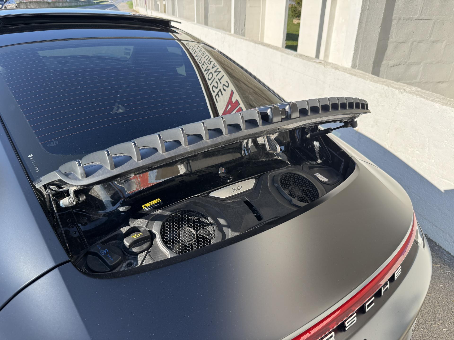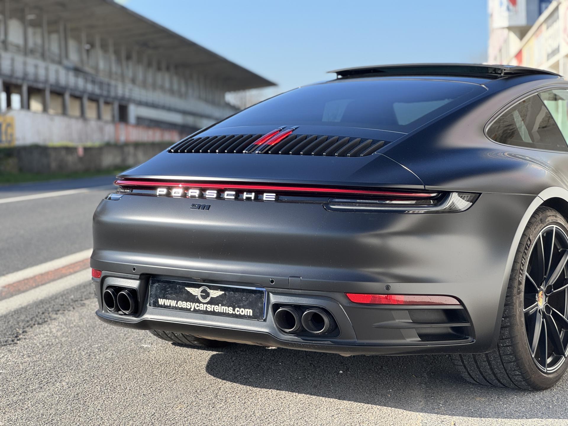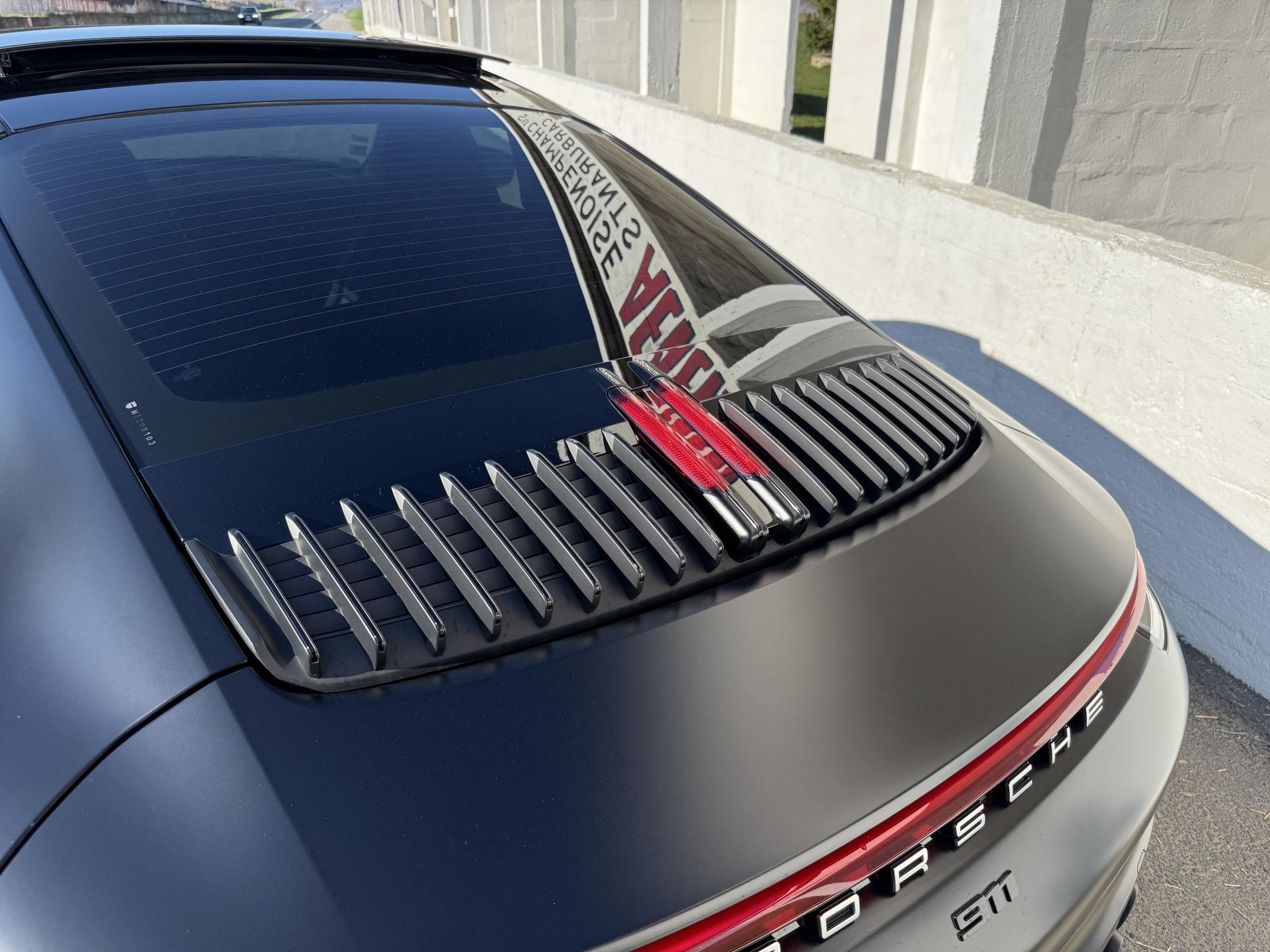 Livrée neuve à Stuttgart, cette Carrera a été protégée intégralement par un film de protection à effet mat qui préserve chaque centimètre de carrosserie tout en lui conférant une esthétique unique et raffinée. Une attention rare qui témoigne du soin apporté à ce véhicule d'exception.