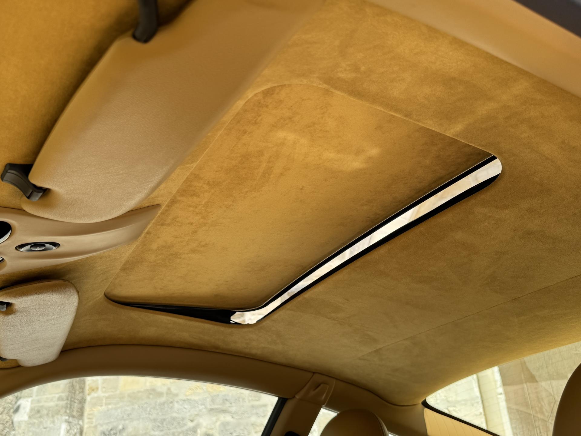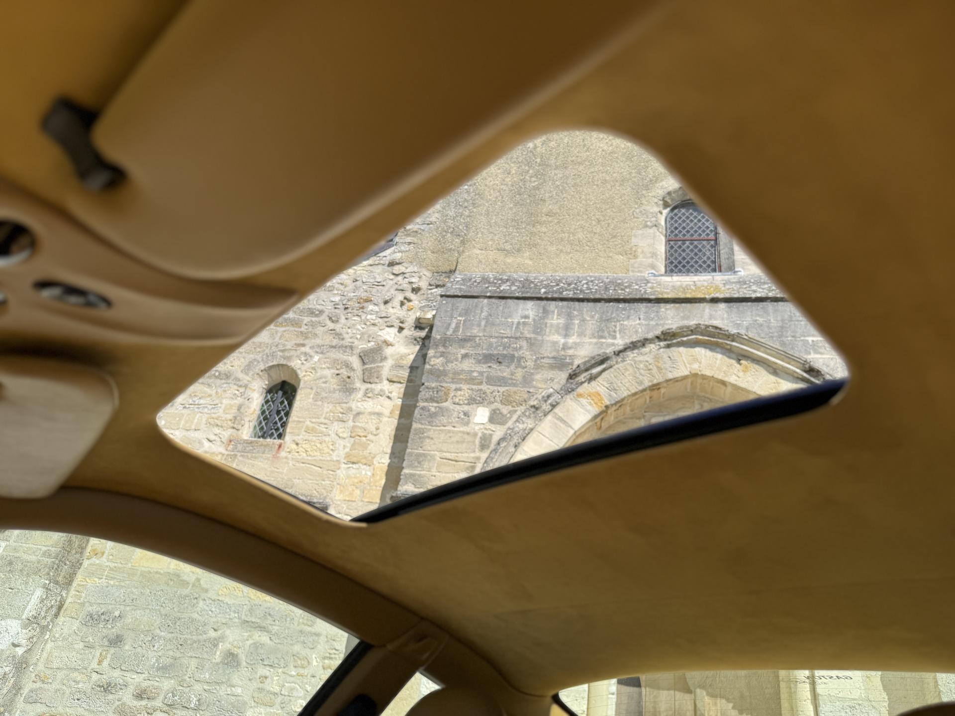 Présentée en Bleu avec un intérieur cuir Beige, elle reçoit un ciel de toit en Alcantara, un échappement Sport Scart, un Pack Audio BOSE, des sièges entièrement électriques et un toit ouvrant électrique relevable. Une dotation soignée, pour une voiture qui l'est tout autant.