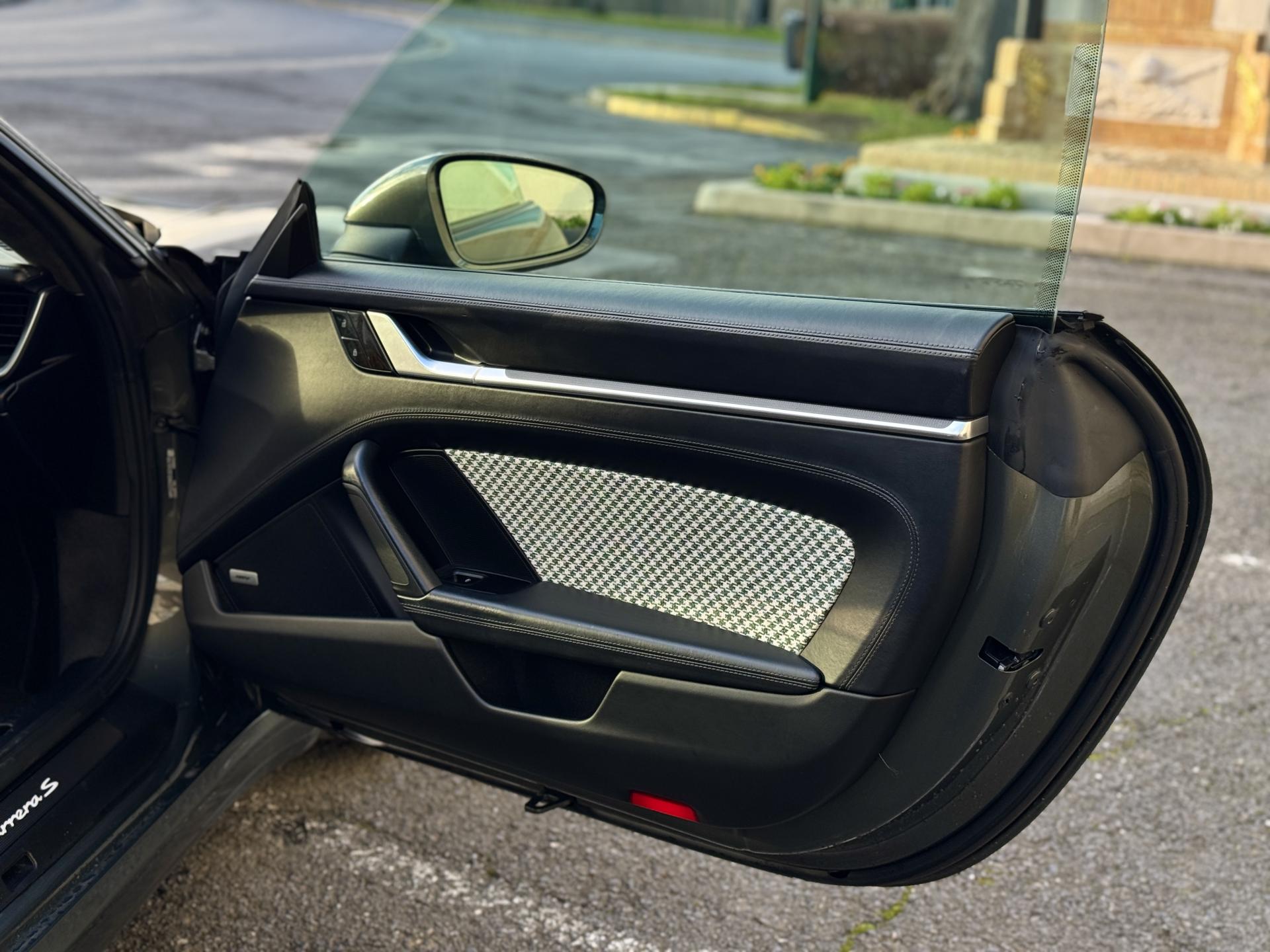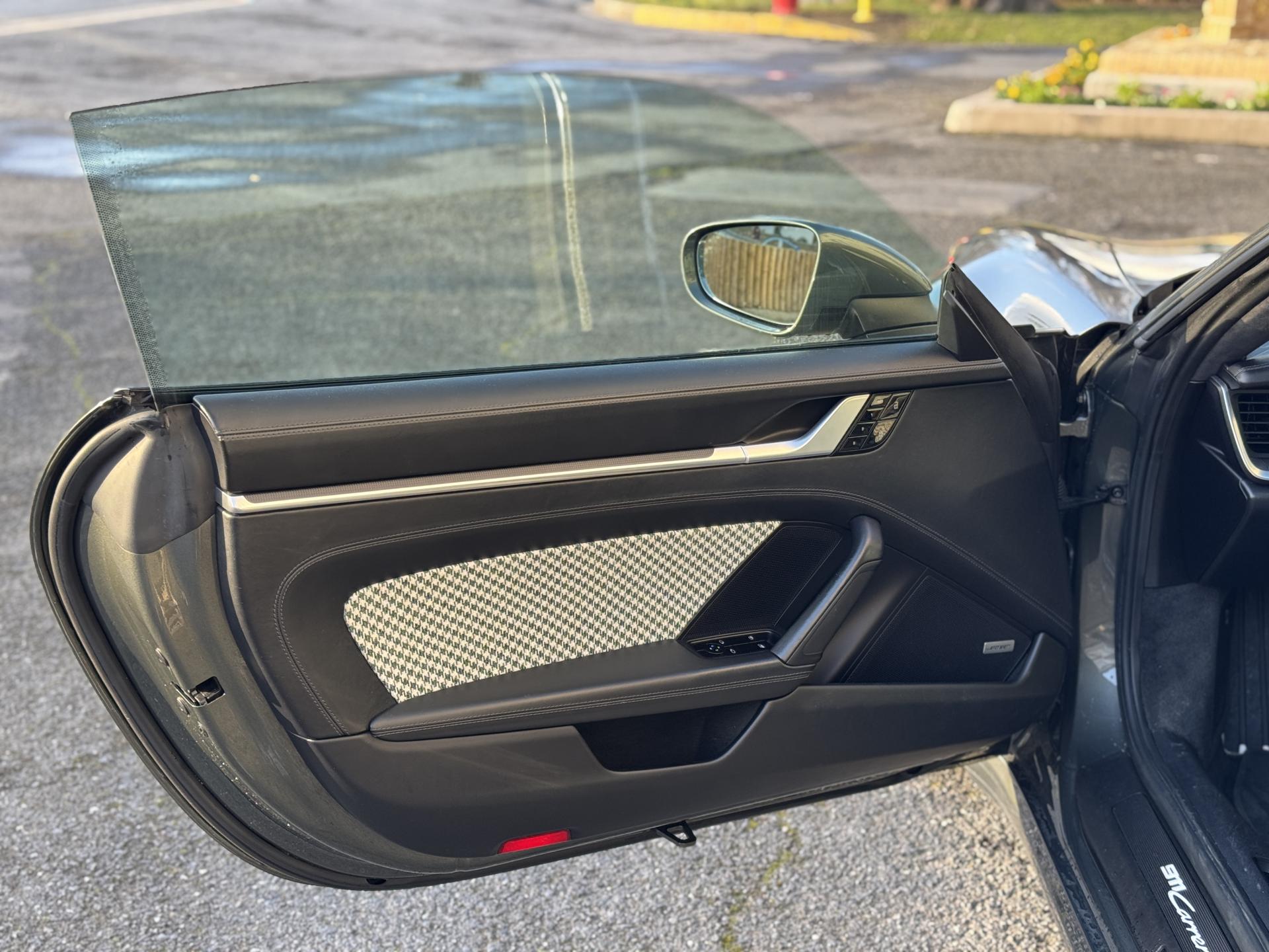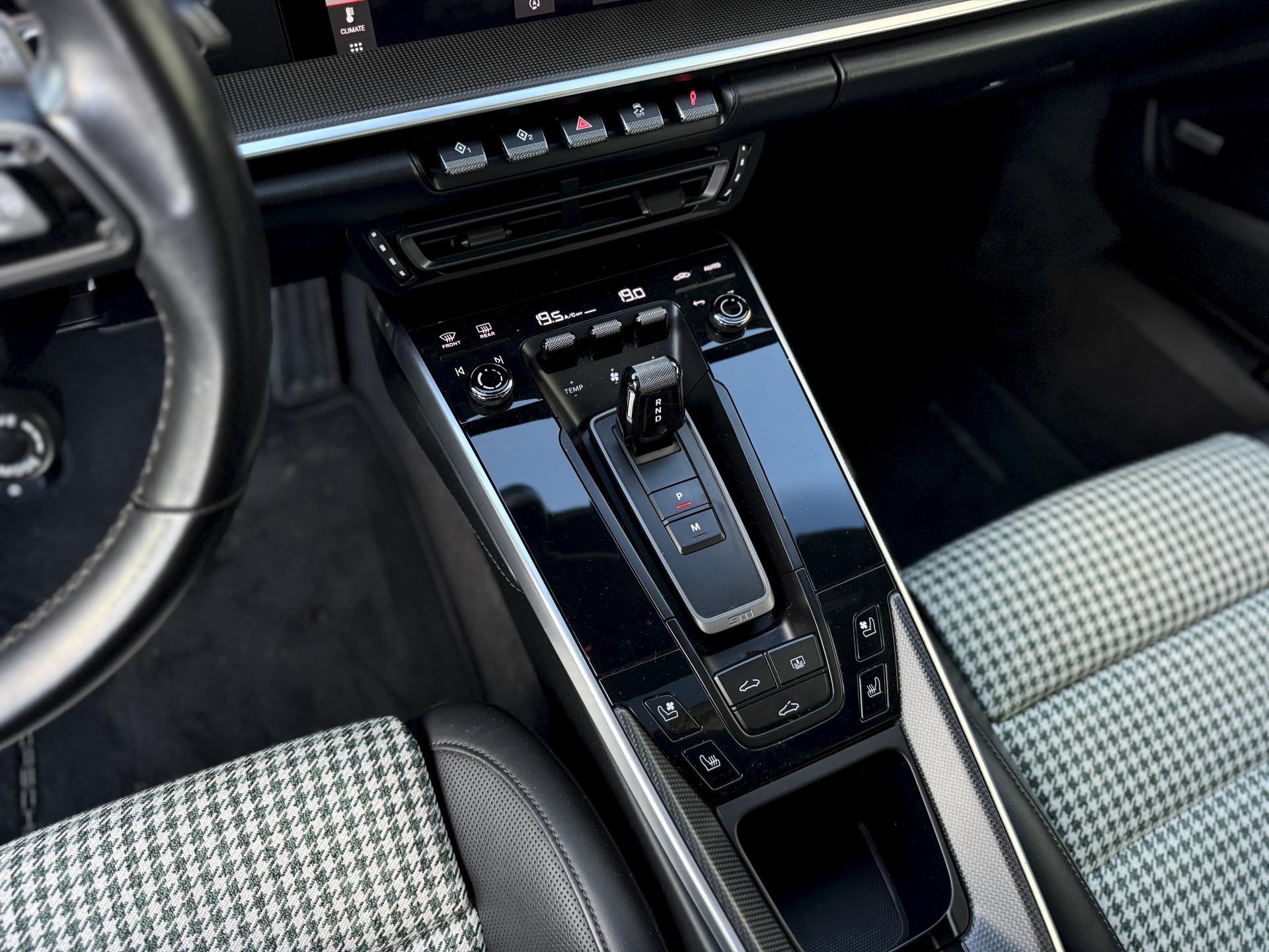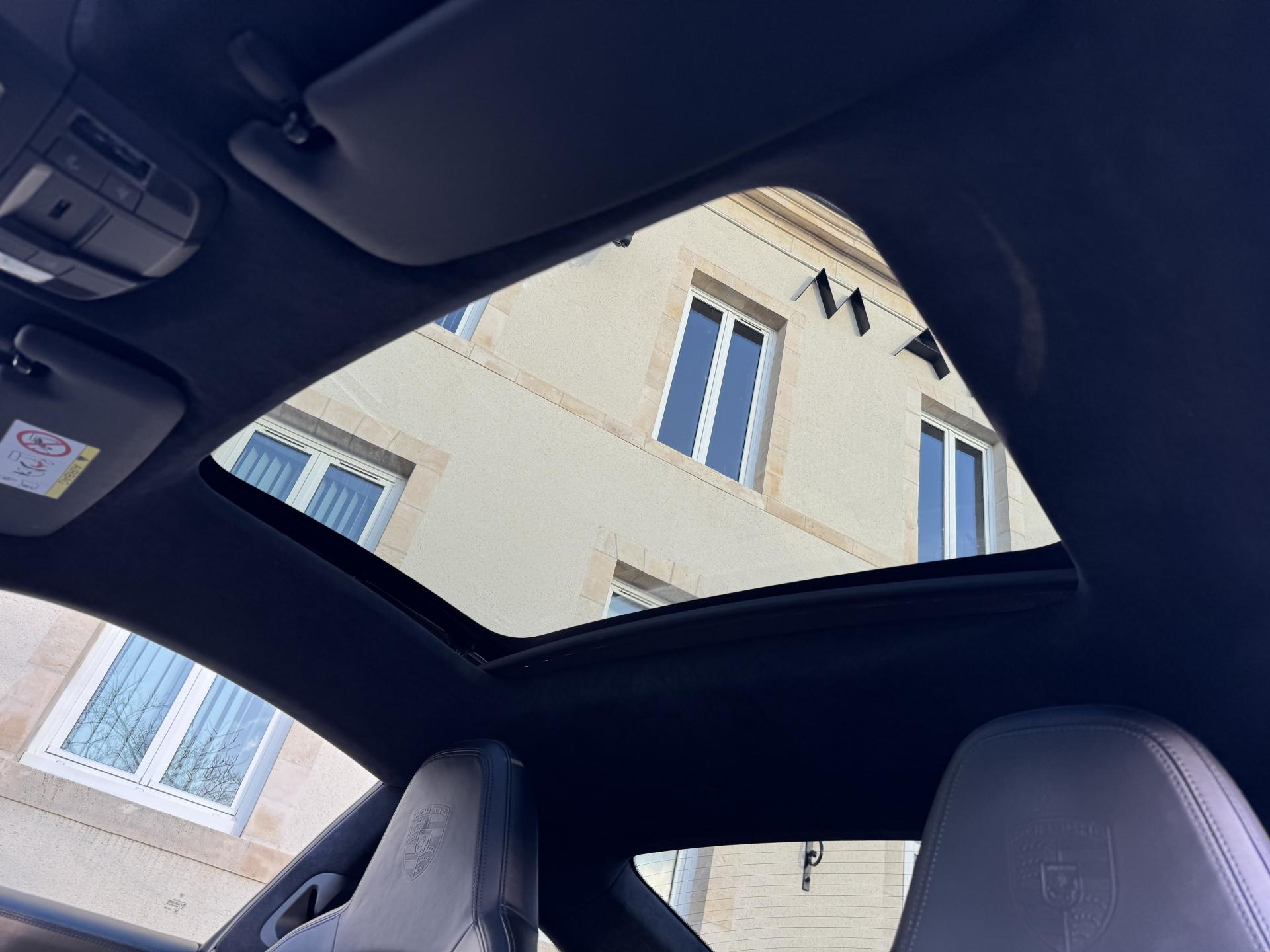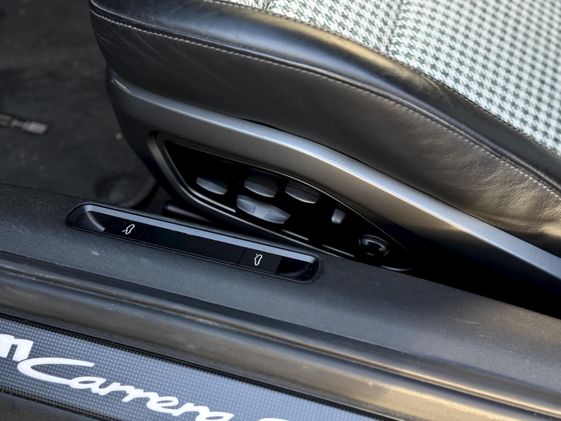 L'habitacle sur mesure en pied de poule vert est une véritable œuvre d'art qui rend hommage aux 911 légendaires. Les sièges sport électriques avec pack mémoire et cuir chauffant offrent un maintien parfait. Le volant sport multifonctions cuir chauffant, le ciel de pavillon en alcantara et le toit coulissant électrique en verre complètent une ambiance raffinée.
