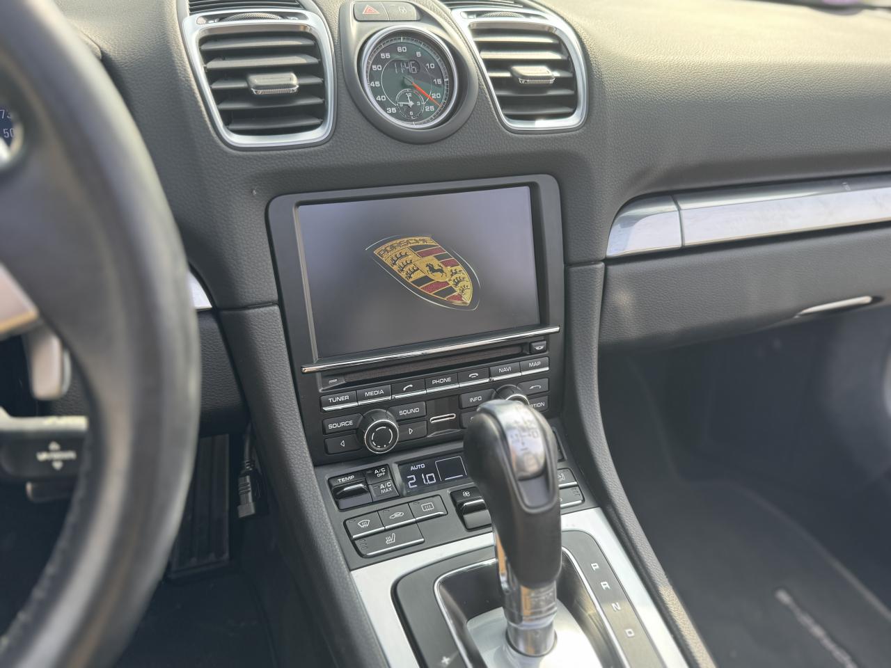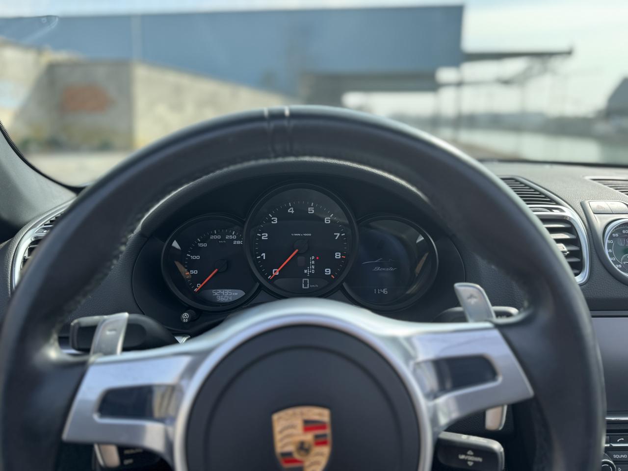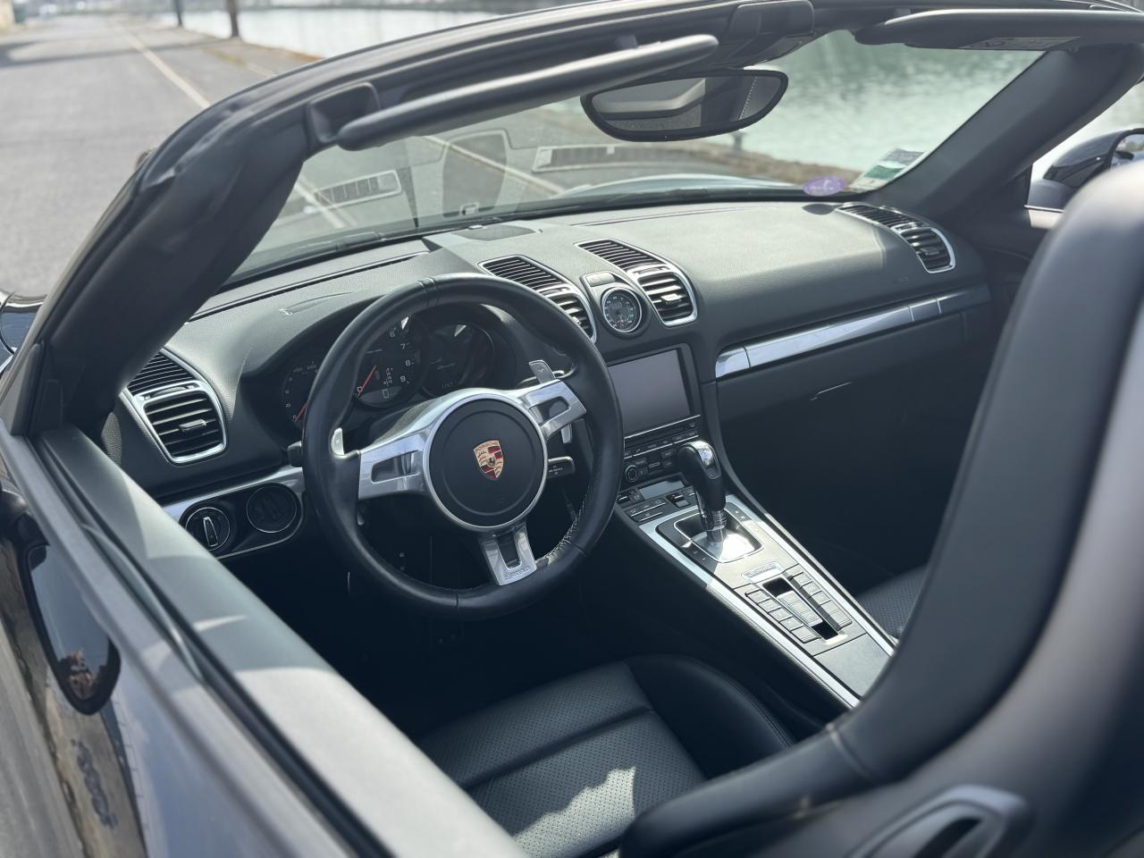 Côté options, ce Boxster est loin d'être en reste car il s’agit là de la version Black Edition et à l’intérieur vous retrouverez le mythique Pack Chrono Sport Plus qui orne fièrement le centre du tableau de bord et qui ravit les passionnés depuis des années.