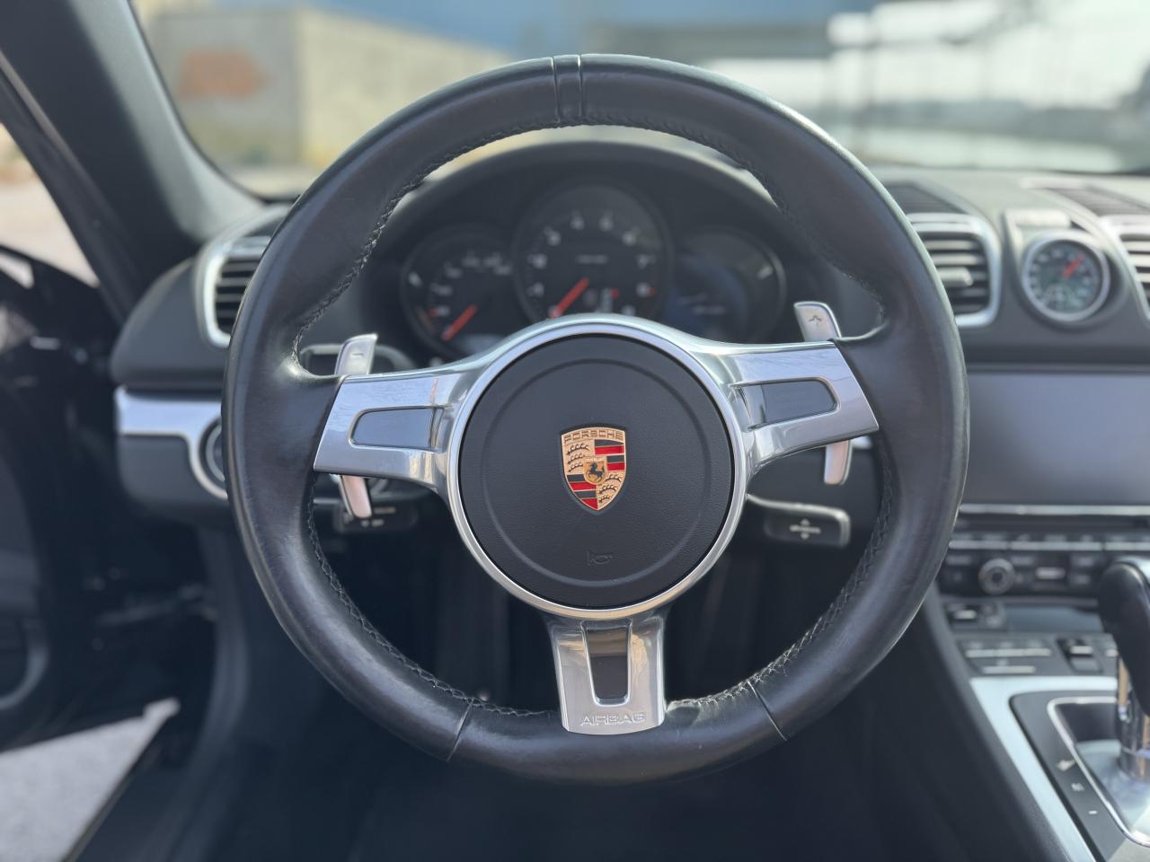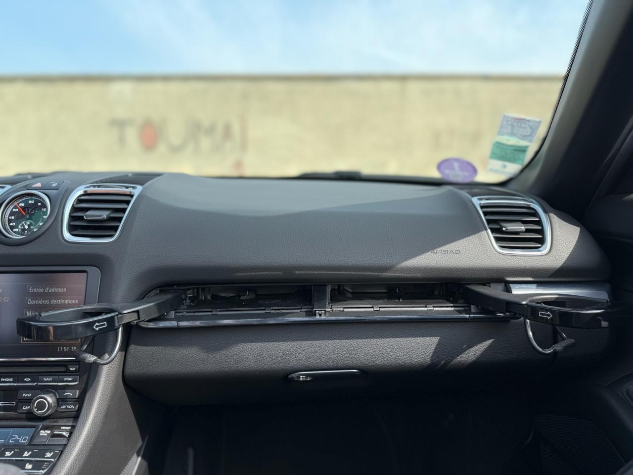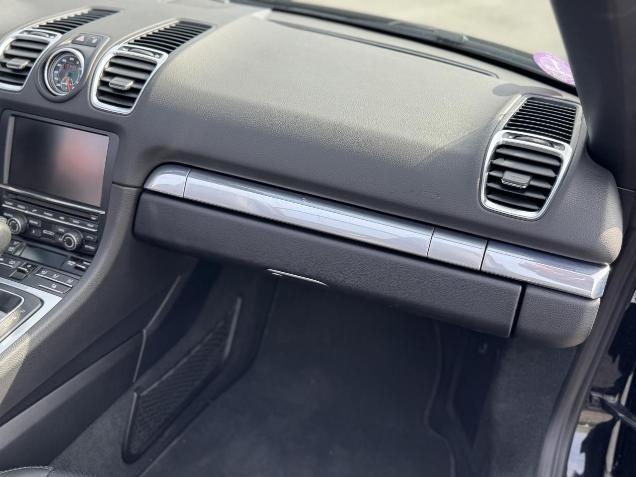 Côté options, ce Boxster est loin d'être en reste car il s’agit là de la version Black Edition et à l’intérieur vous retrouverez le mythique Pack Chrono Sport Plus qui orne fièrement le centre du tableau de bord et qui ravit les passionnés depuis des années.