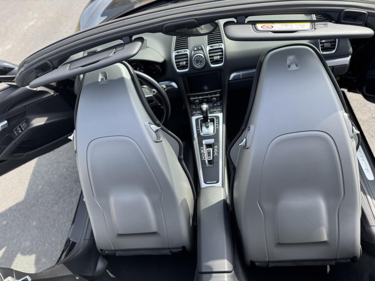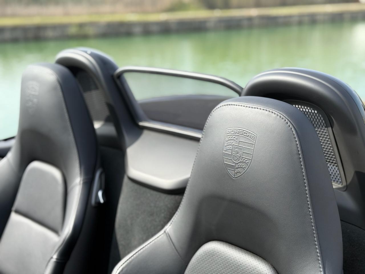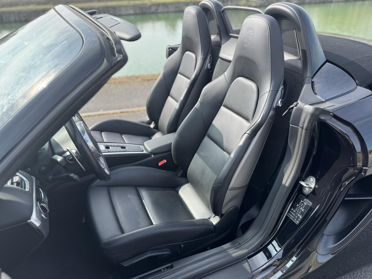 Sous le capot de ce Boxster, on retrouve un moteur 6 cylindres à plat 2.7 litres développant 265 chevaux couplé à la boîte de vitesses PDK à double embrayage, qui permet un changement de rapport instantané, afin de profiter pleinement des capacités de la voiture. Son look sportif et son toit décapotable noir sont sublimés par des jantes Carrera Classic (II) 20 pouces, un volant sport design, des étriers de freins noirs et un système d’échappement Sport.