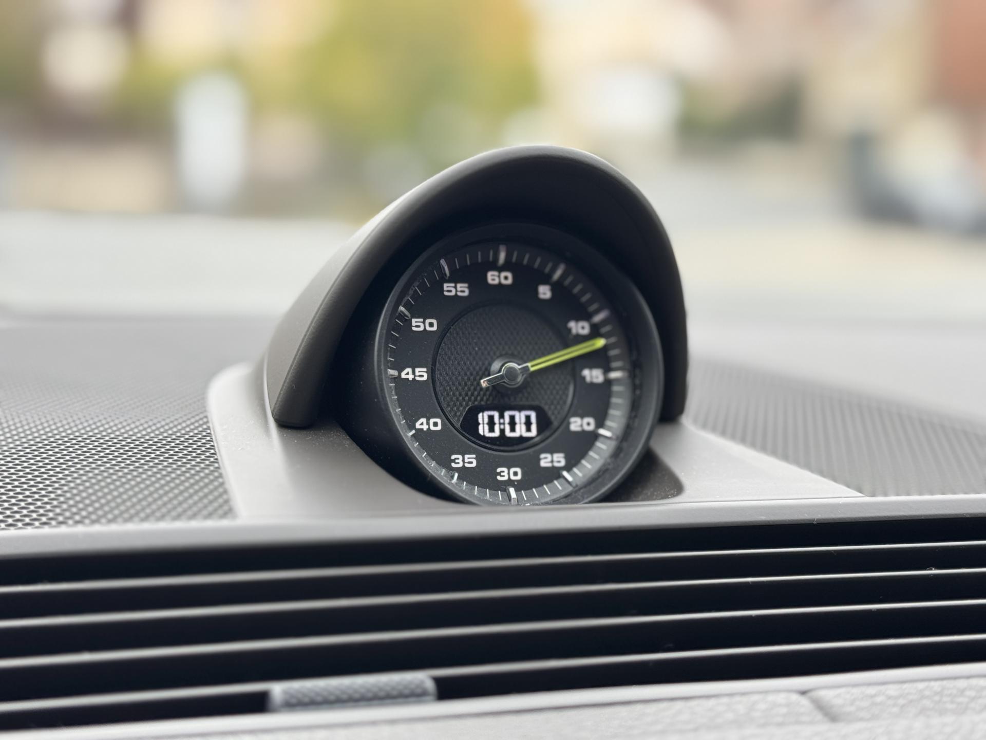 À l'intérieur, on retrouve une sellerie cuir et des fauteuils chauffants. Le toît panoramique ouvrant vient sublimer son habitacle déjà spacieux et lumineux. Son écran tactile permet de contrôler les réglages du véhicule, de l'éclairage aux paramètres mécaniques. Son pack Bose offre une excellente immersion sonore. Enfin, le tableau de bord est orné du mythique chronomètre Porsche qui ravit tous les passionnés.