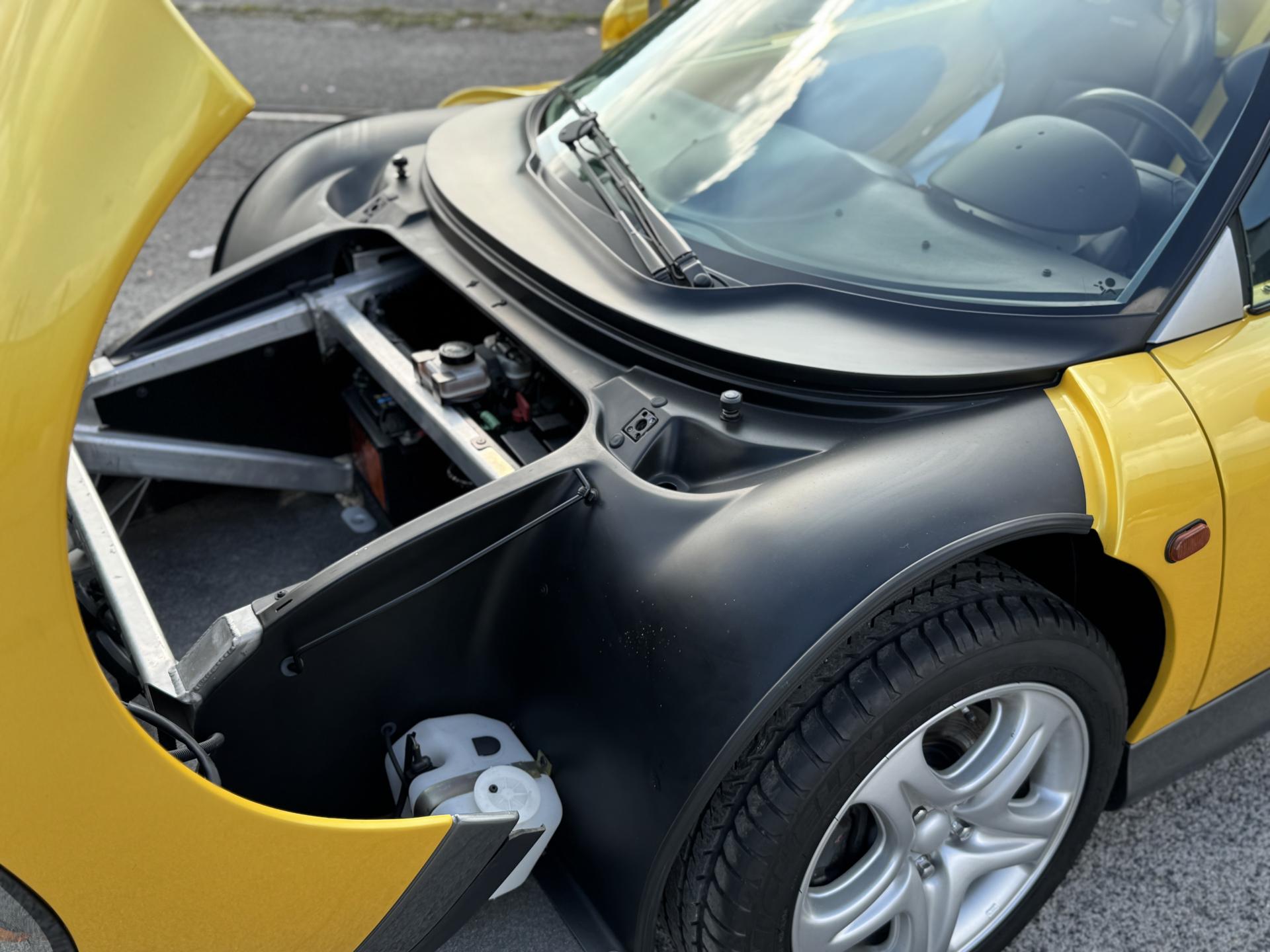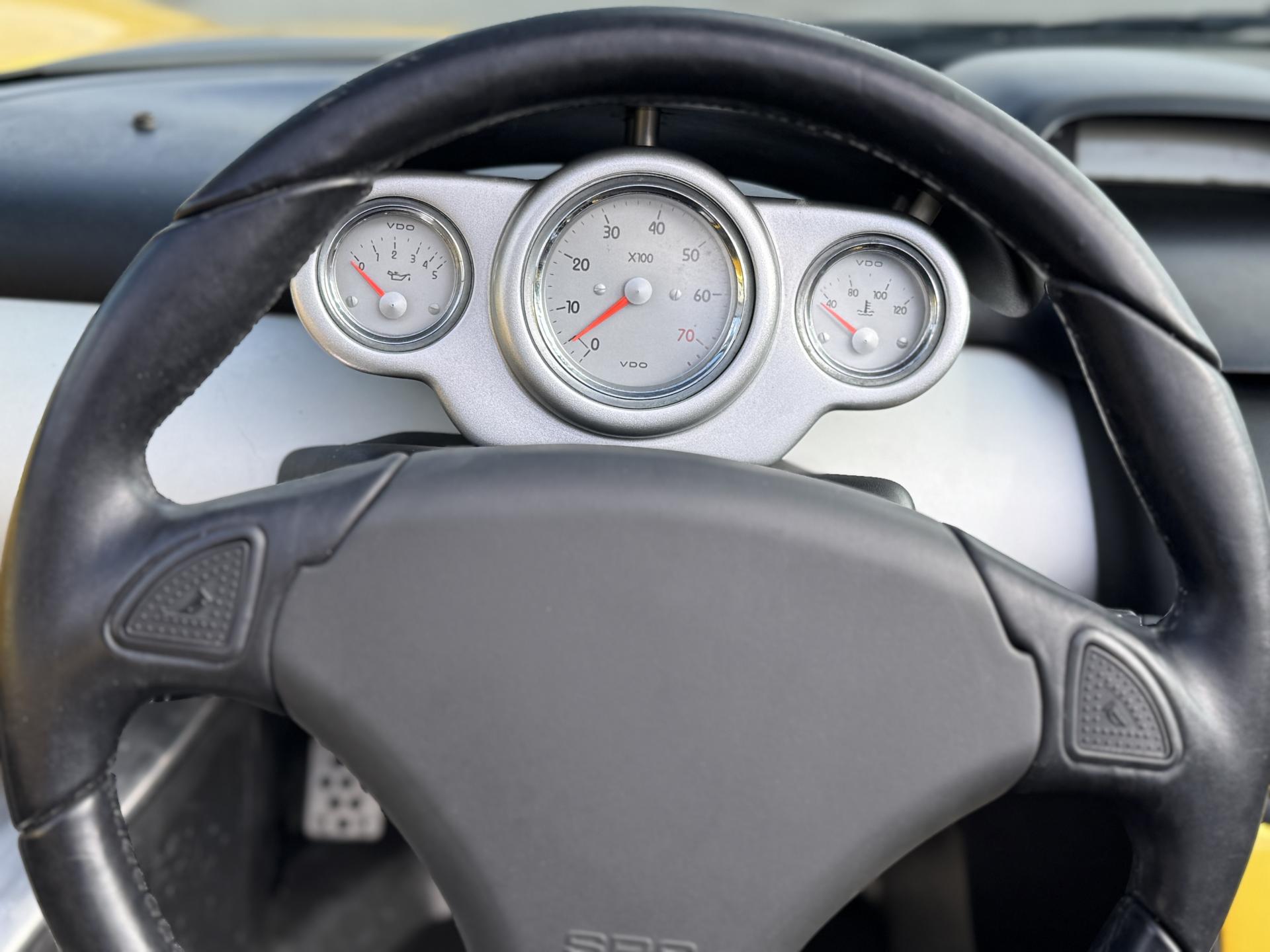 Véritable collector affichant seulement 154 km, cette Renault Spider représente l’une des pièces les plus exclusives de l’histoire de Renault Sport. Produite à seulement 904 exemplaires dans cette teinte Jaune Sport, elle incarne à la perfection l’esprit des années 90 : audace, légèreté et pure passion automobile.