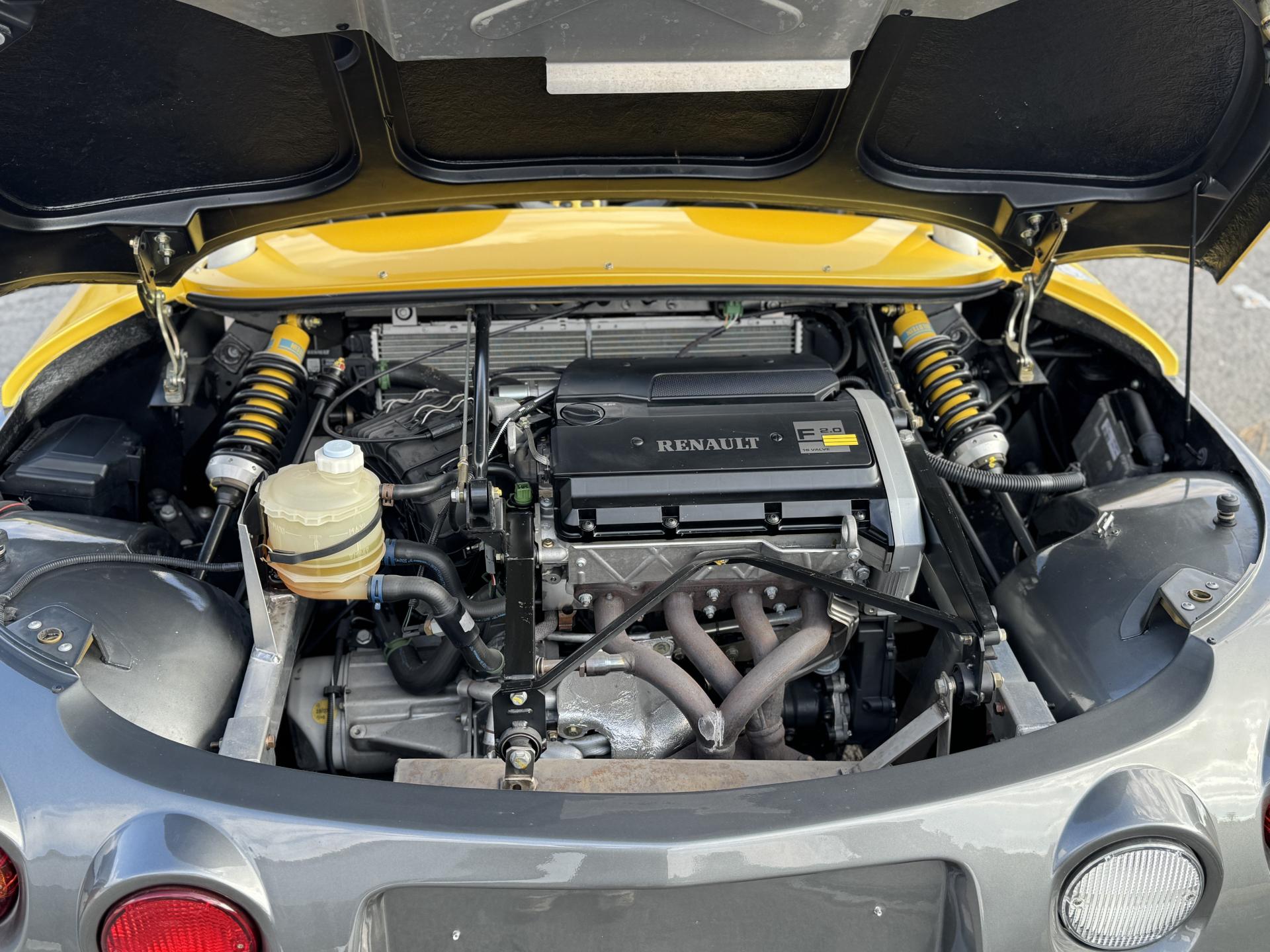 Sous son capot se cache le célèbre moteur F7R, un 4 cylindres 2.0 16 soupapes de 150 chevaux, directement issu de la mythique Clio Williams. Reconnu pour sa vigueur et sa sonorité typique, il anime un châssis aluminium de seulement 965 kg, offrant des sensations de conduite brutes, précises et totalement authentiques. Le moteur central arrière et la propulsion garantissent un équilibre parfait et une connexion directe avec la route.
